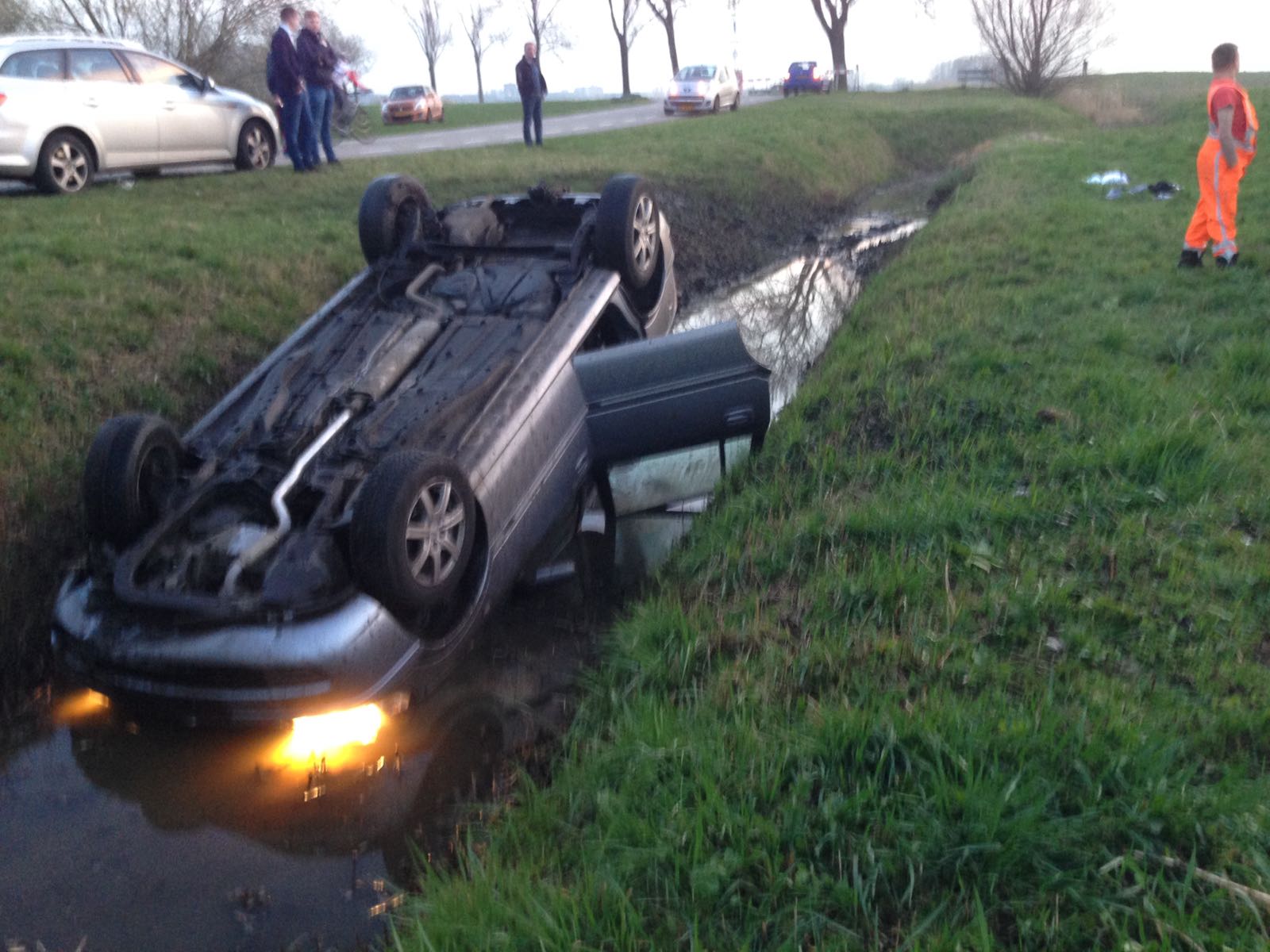 Twee heren kwamen terug van een schoolopdracht, onderweg naar huis (vermoedelijk Genemuiden), raakte de jonge bestuurder op de Werkerlaan de macht over ’t stuur kwijt in een bocht. De auto schoot rechtdoor, kantelde op kop en kwam tot stilstand. De berger heeft de auto uit de sloot getakeld. Beide heren waren doorweekt en wat onderkoeld.