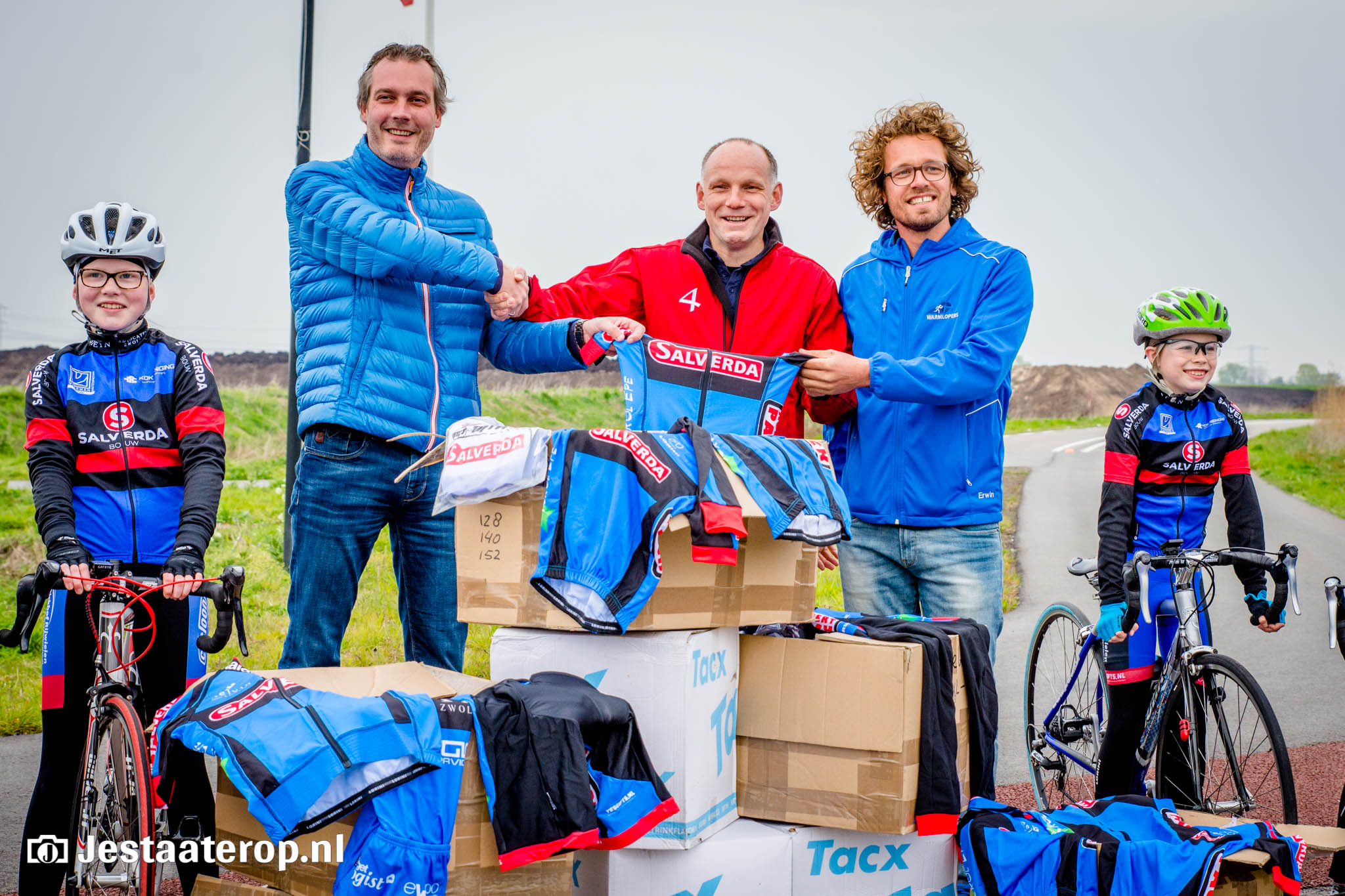Acht dozen met oude wielerkleding van de Hanzerenners werden dinsdagavond overhandigd aan hardloopgroep Warmlopers. Volgende week gaat een deel daarvan naar Rwanda en het andere deel gaat binnenkort naar Roemenië.