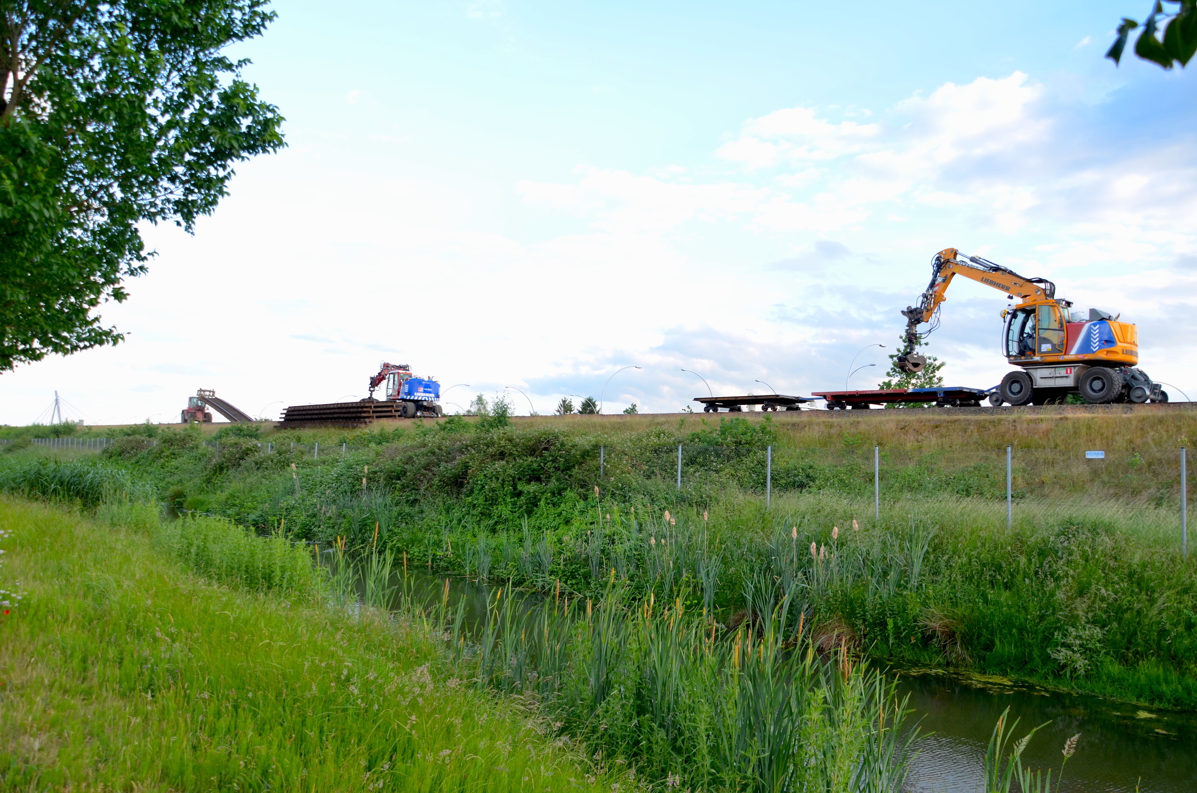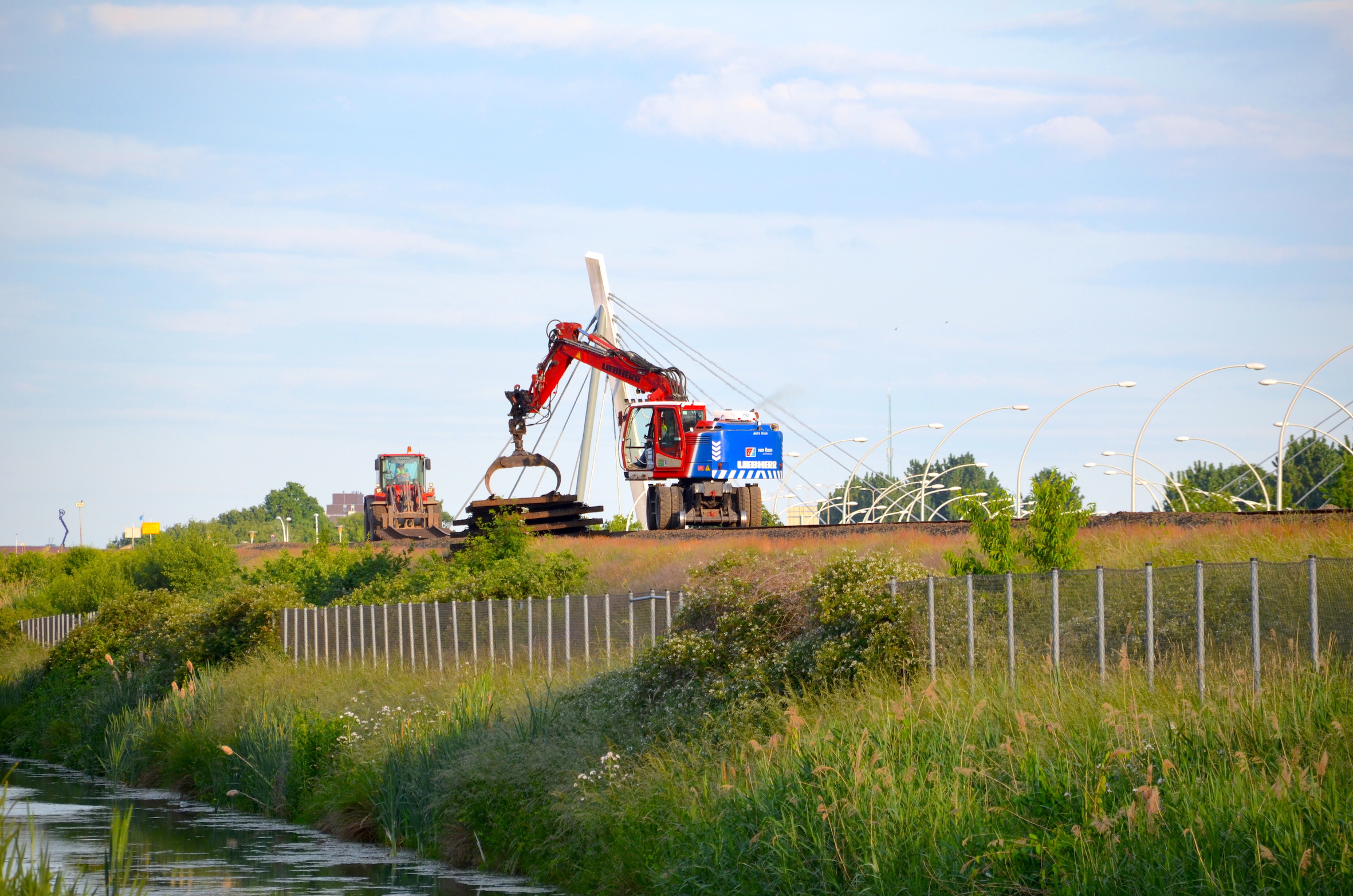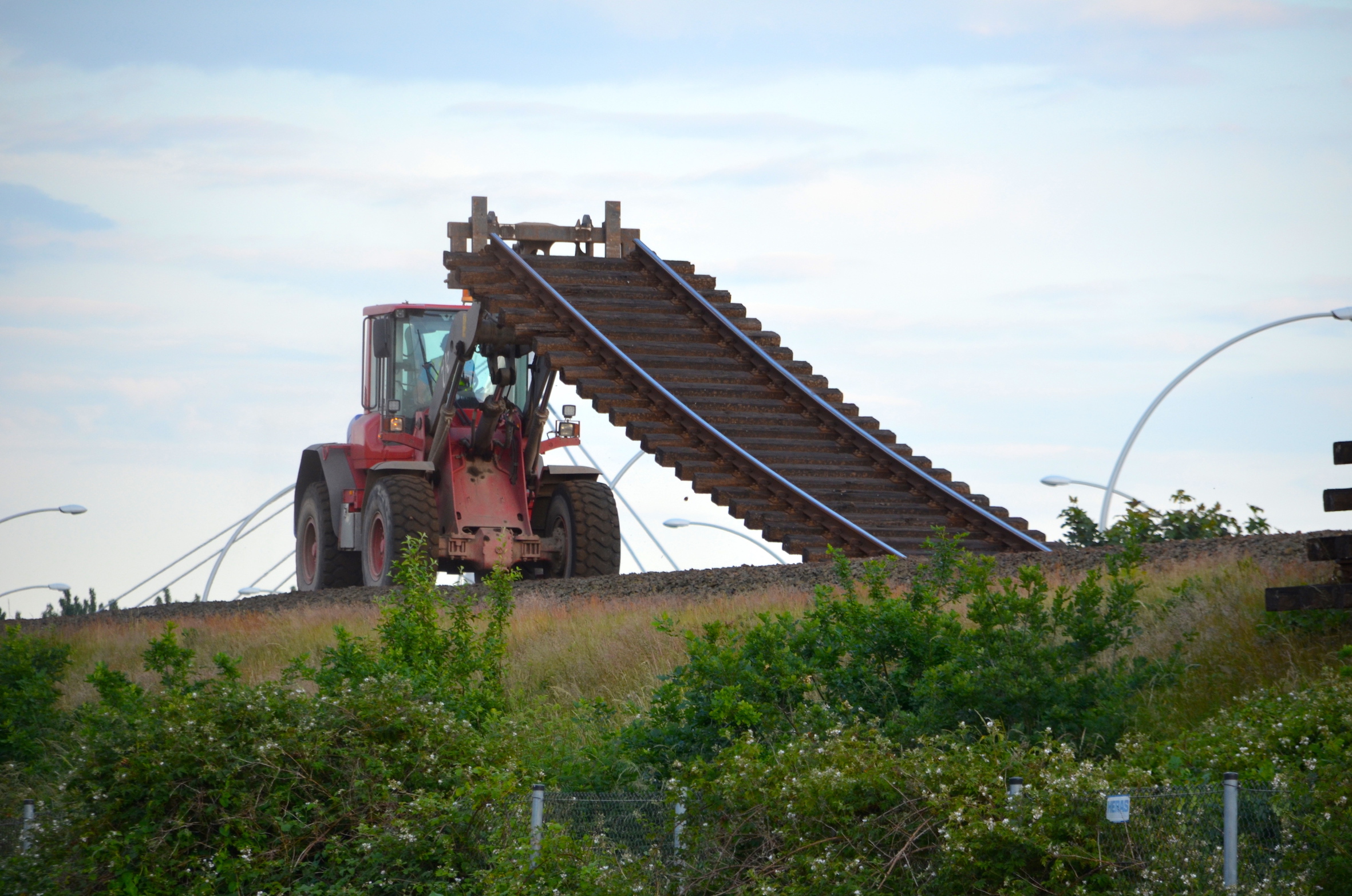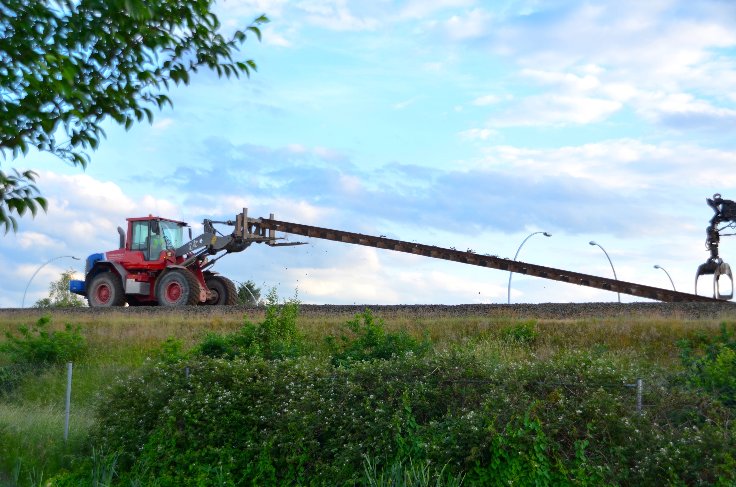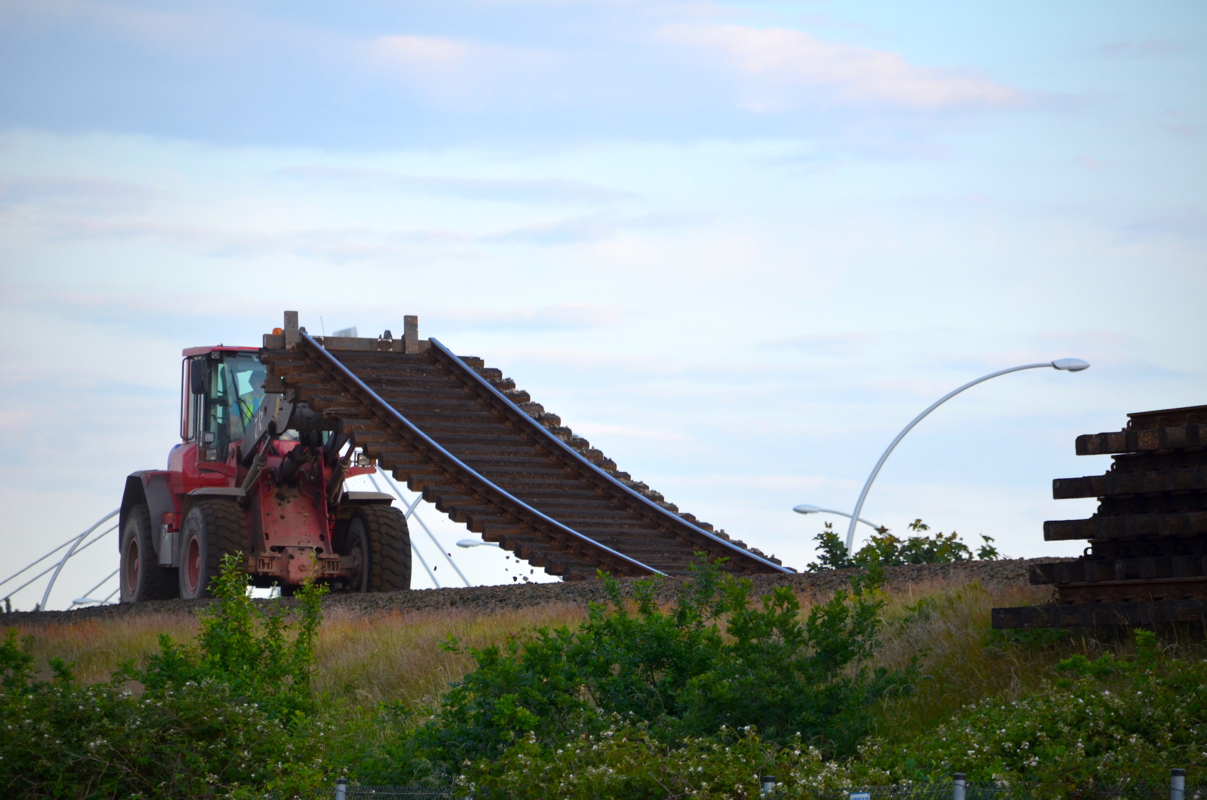 In het gebiedĀ achter het nog te bouwen station van Stadshagen liggen de rails in grote rijen opgestapeld. Ā Op het spoor lopen mannen met lasapparaten voorop om de rails alvast los te snijden, zodat voertuigen iets terug op het spoor de stukken rails ƩƩn voor ƩƩn kunnen lostrekken en wegrijden. Bewoners kijken het proces rustig gade. Het loopt – zoals het spreekwoord zegt – als een trein.