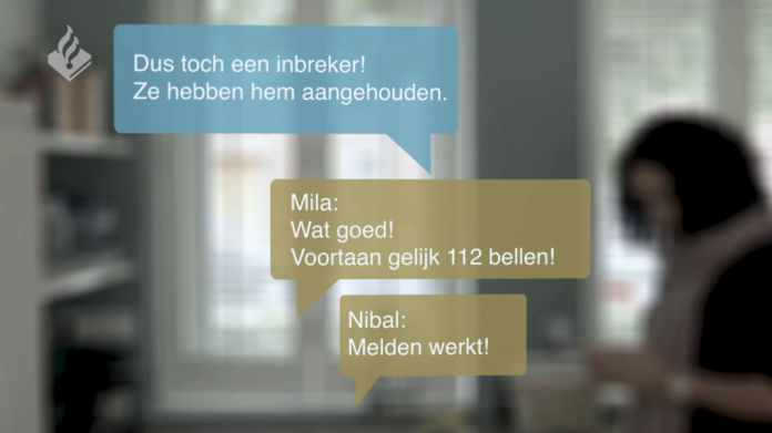 In het filmpje ziet een buurtbewoner iemand aan deuren rammelen en door ramen gluren en vraagt zich in een buurt-app af wat ze moet doen. Ze belt uiteindelijk de politie en terwijl deze ter plaatse komt, komt er ook een melding van een woninginbraak binnen. De agenten zien de verdachte persoon lopen en zetten rennend de achtervolging in en weten hem uiteraard in te rekenen.