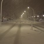 In de straten is het door de sneeuwval stil. Deels omdat mensen gehoor geven aan de oproep om thuis te blijven, maar ook omdat de sneeuw het geluid absorbeert. Wandelen door de sneeuwbuien levert een prachtig stilleven op, waar auto’s traag over de wegen bewegen.