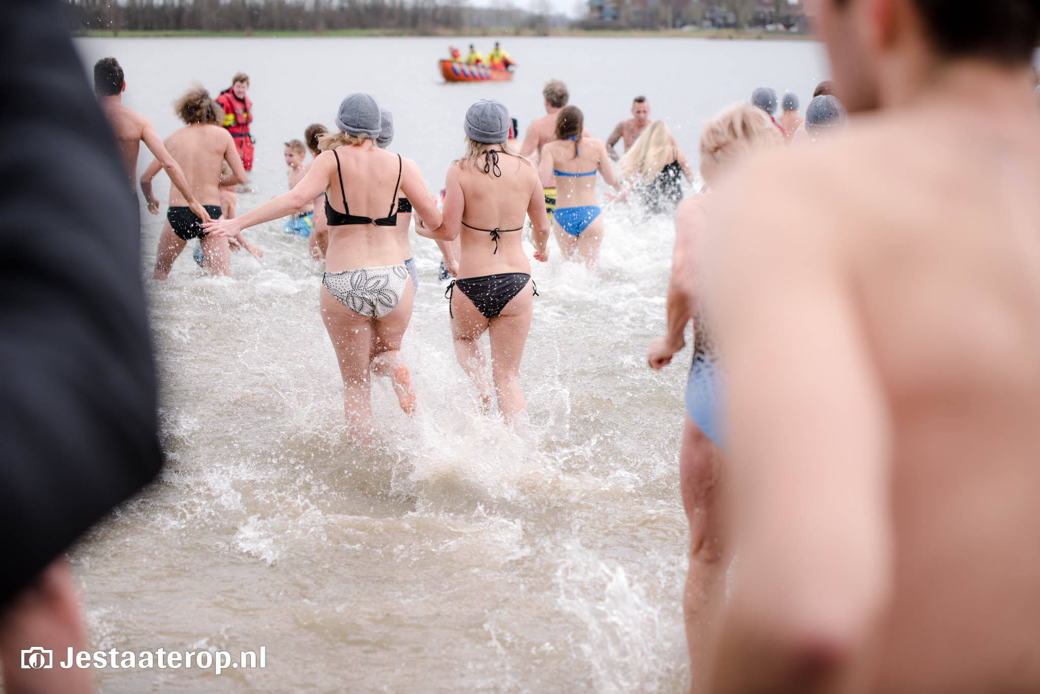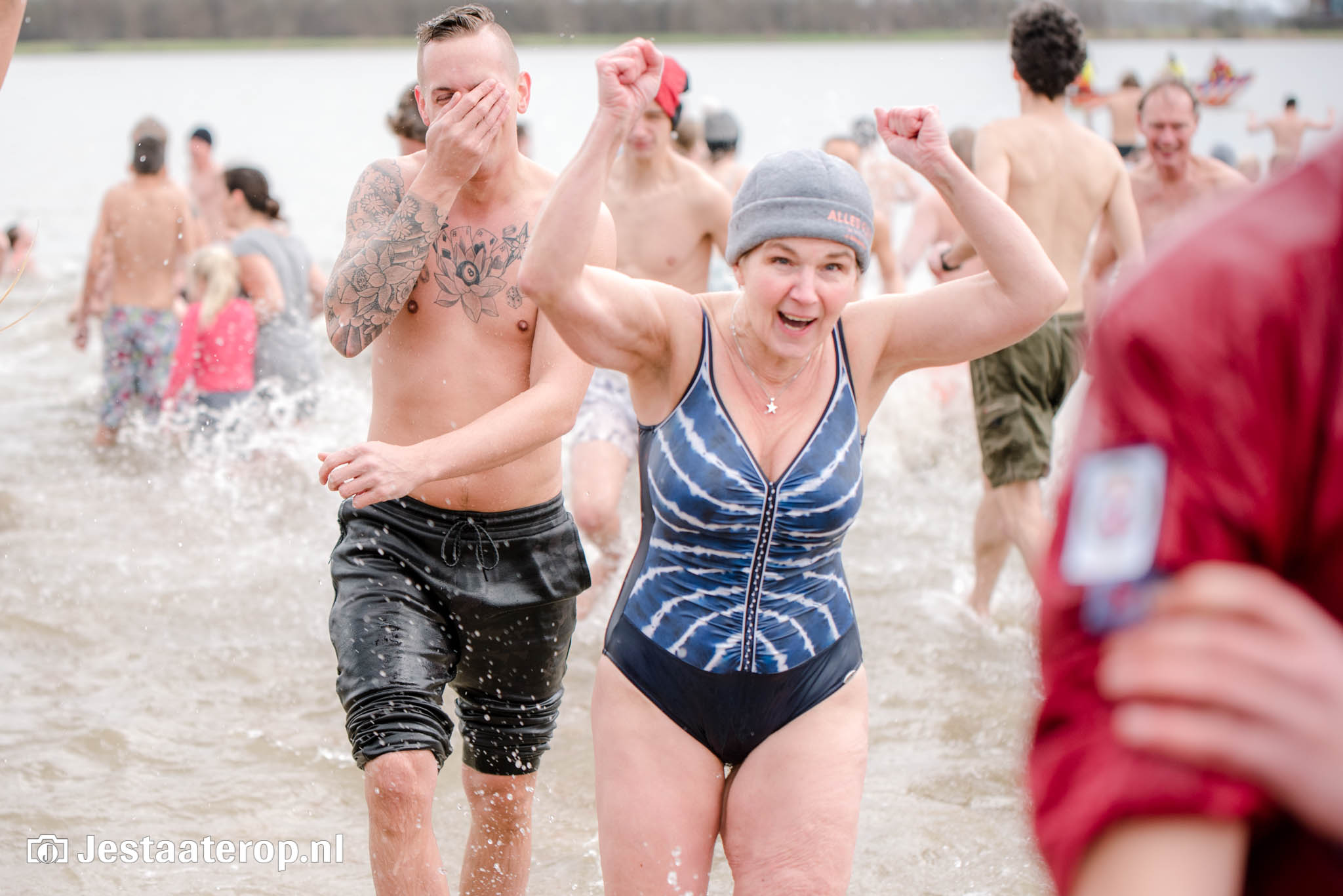 Een paar honderd enthousiastelingen deden mee aan de traditionele nieuwjaarsduik in Stadshagen. Om 12.00 uur namen ze een duik in het koude water van de Milligerplas. De meeste deelnemers hielden het na een paar seconden weer voor gezien, terwijl anderen het een paar minuten vol hielden in het koude water.