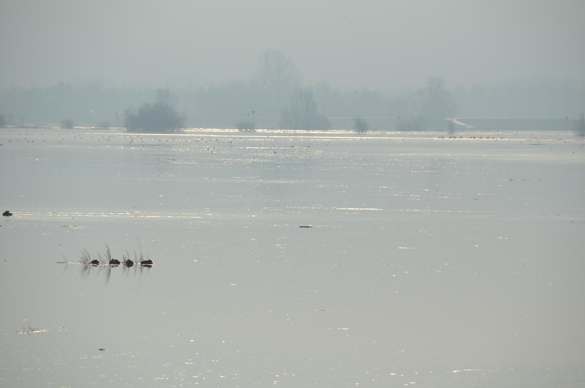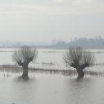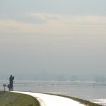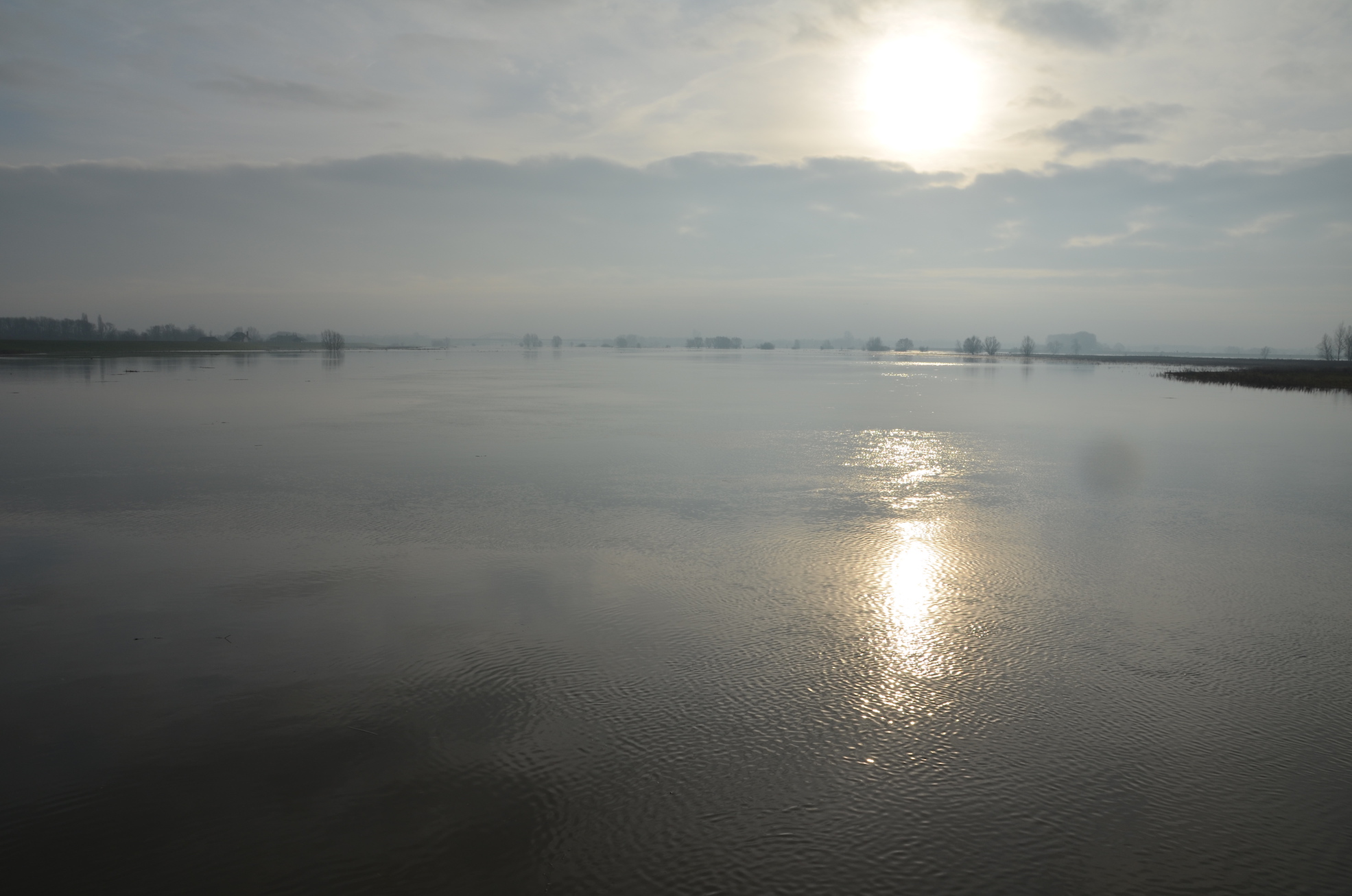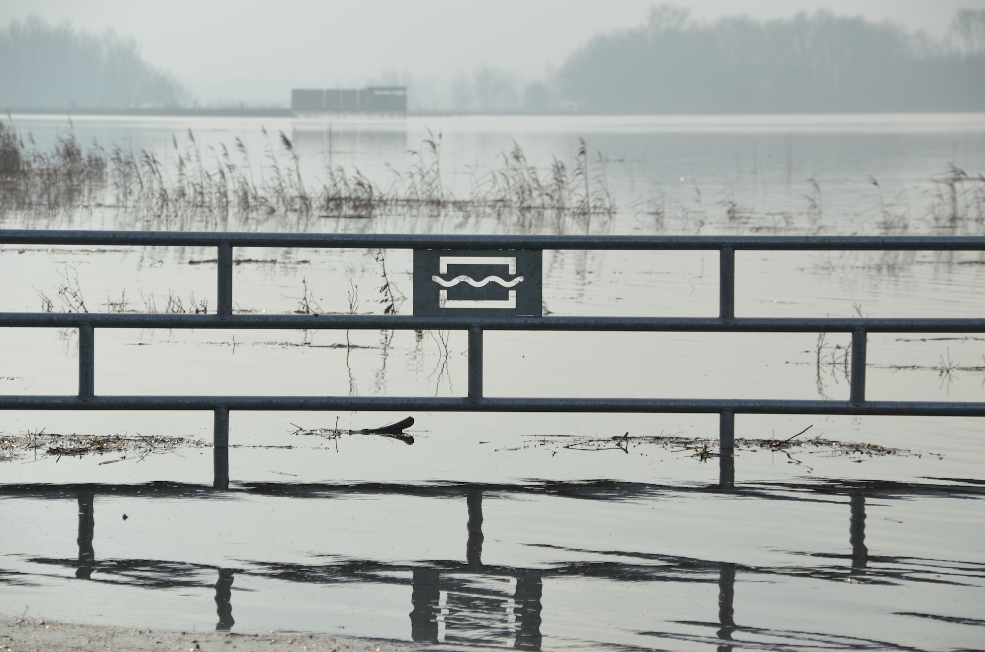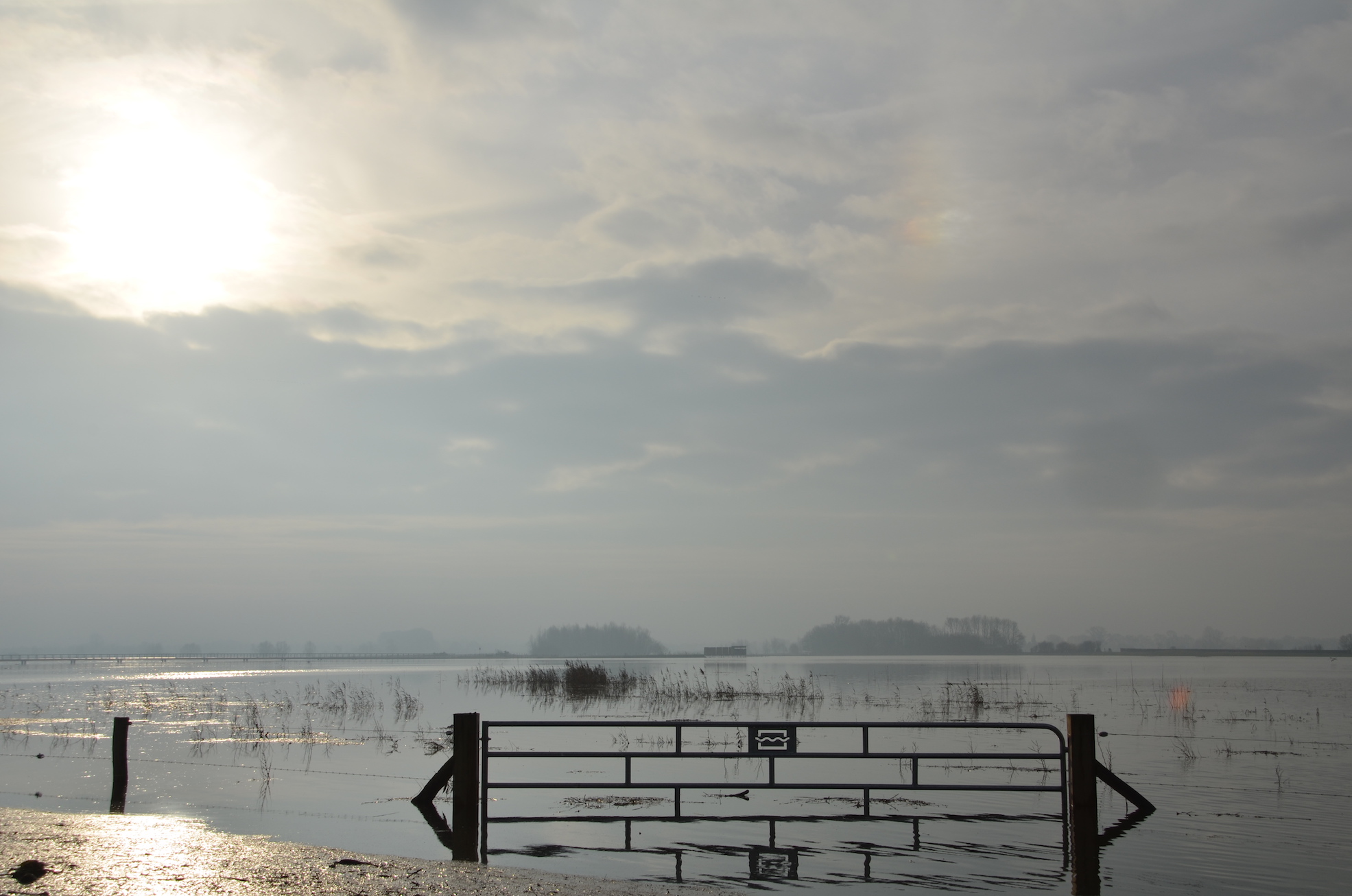 Over het fietspad op de dijk die het wassende water moet tegenhouden staan mensen even stil naast hun fiets. Turend over de immense vlakte van water, af en toe onderbroken door de kruin van een knotwilg. Een reiger staat op een paaltje, op de achtergrond prijkt de kerktoren van Zalk. Ondanks het geweld van het opzwellende water overheerst de stilte in het prachtige rivierengebied.
