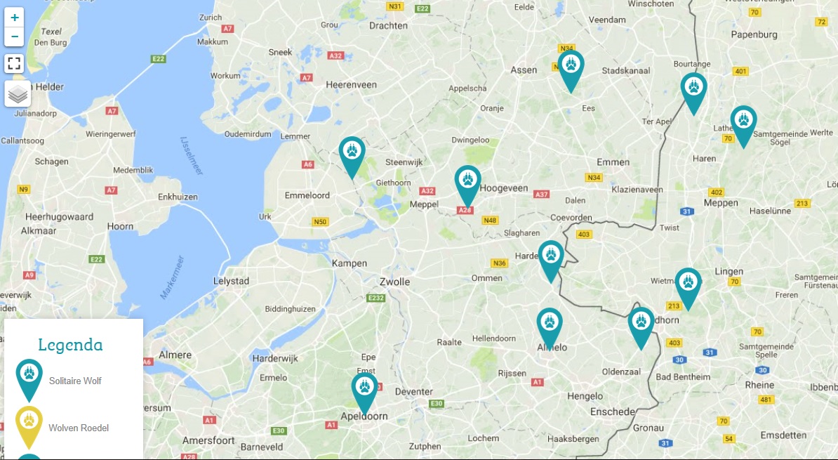 Er komen steeds meer meldingen dat wolven gezien worden in Nederland. Op de site van ‘Wolven in Nederland’ is een kaart gemaakt waar de wolf de afgelopen jaren in Nederland gespot is. De verwachting is dat de wolf steeds meer te vinden is in Nederland. De wolf is in Nederland een beschermde diersoort.