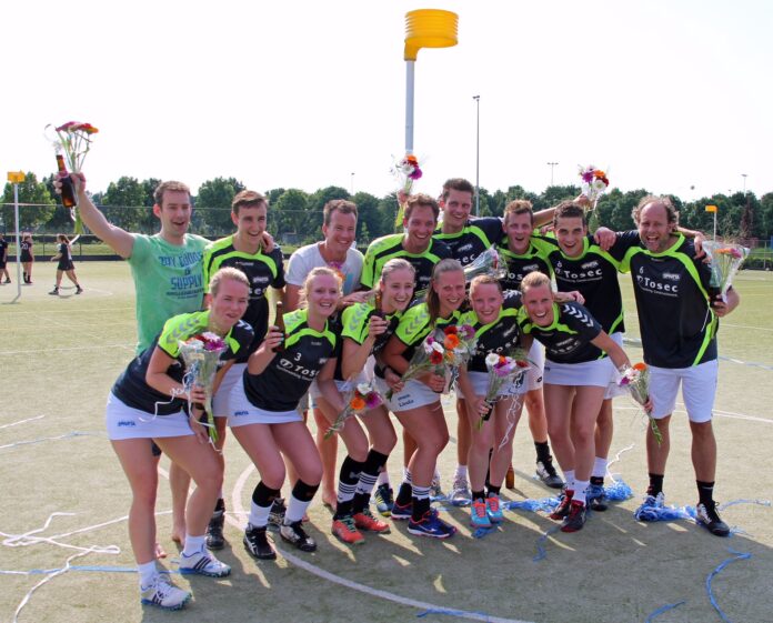 Ook EKVA dacht net als veel concurrenten na de zaal in de beginfase kans te maken op een goed resultaat. Na een stroef begin en een 7-4 achterstand schoot Linda Elgersma met twee mooie knallen de ploegen weer naast elkaar. Daarna bewees René Compayen nog maar eens waarom hij al die jaren onmisbaar is geweest in de Zwolse aanval. Met acht doelpunten zette hij nadrukkelijk zijn handtekening onder de kampioenswedstrijd. Alleskunner Pim Steenbergen heeft echter alweer snel het vizier op de toekomst: “Het is gelukt. Natuurlijk zijn we blij, maar ook een beetje opgelucht dat we volgend jaar beter kunnen worden op een hoger niveau. Daar zijn we wel aan toe, vind ik. In de zaal hebben we ook gezien wat voor spetterende wedstrijden dat kan opleveren. Elke week je helemaal focussen op een wedstrijd. Dan zijn we op ons sterkst.”