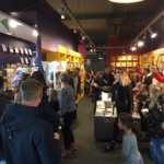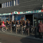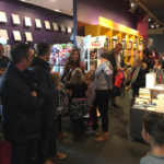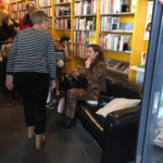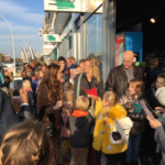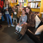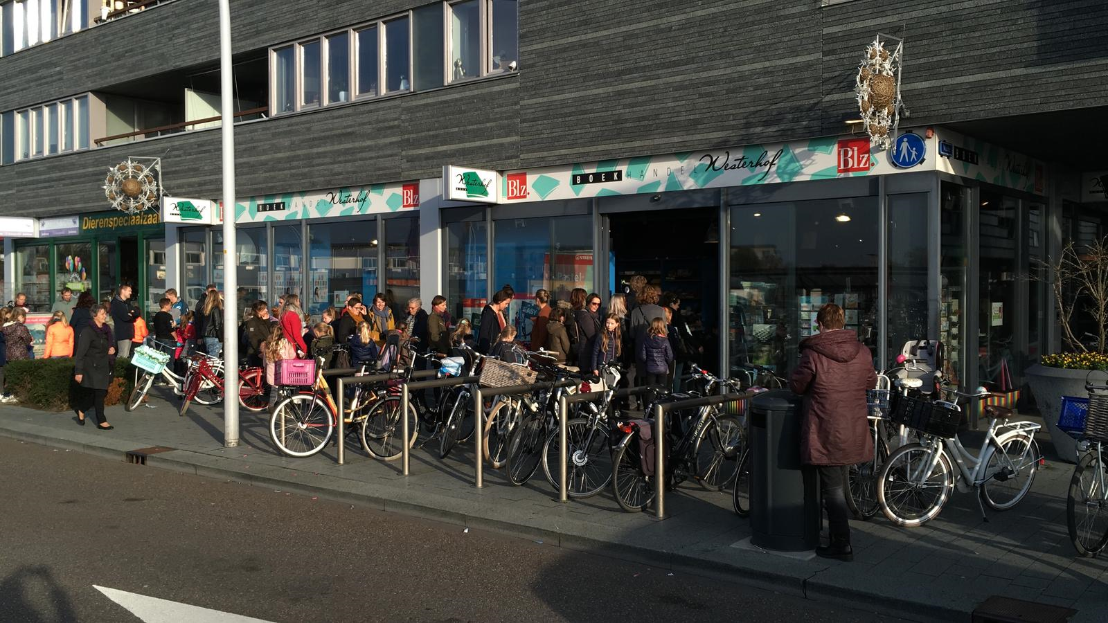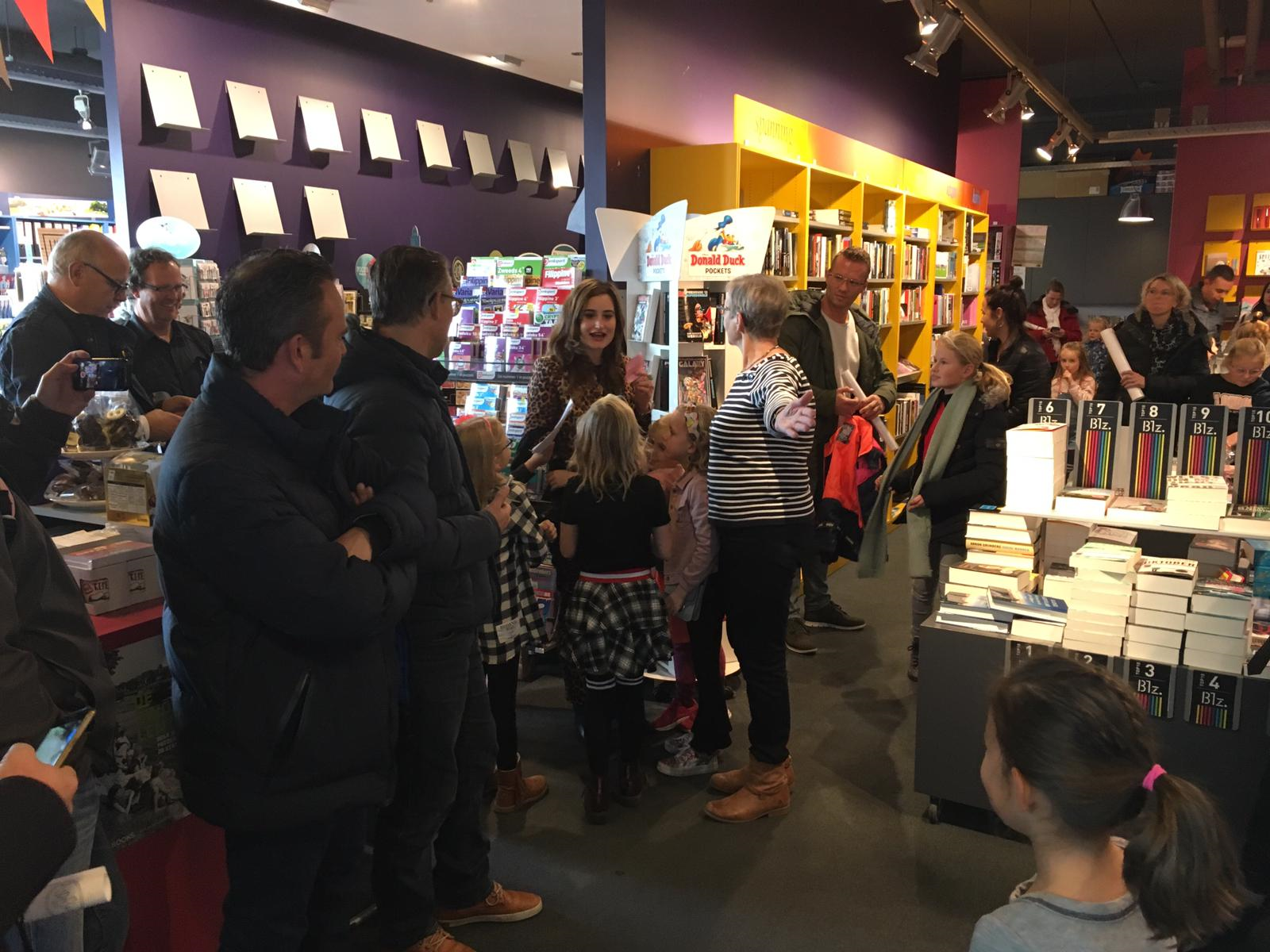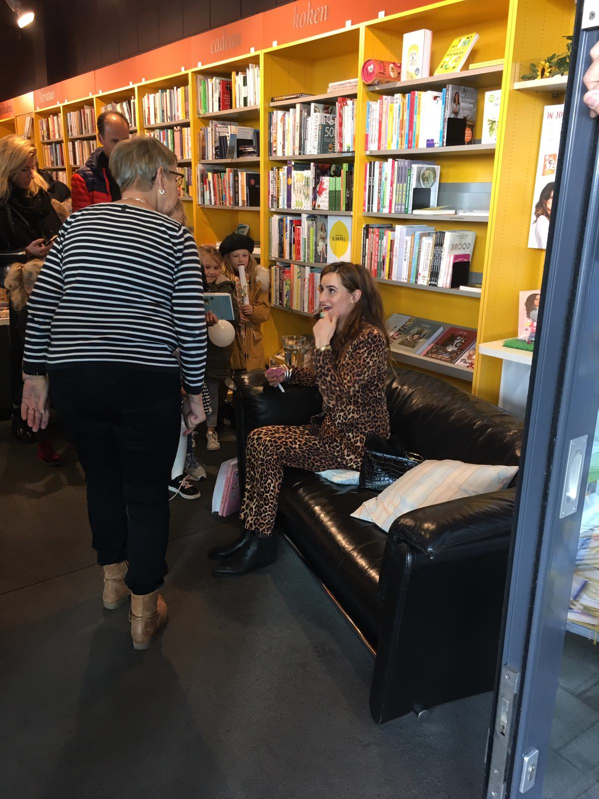De rij stond tot ver buiten de boekwinkel, door de winkel heen. Iedereen kom zo een handtekening krijgen van Jill en met haar op de foto.