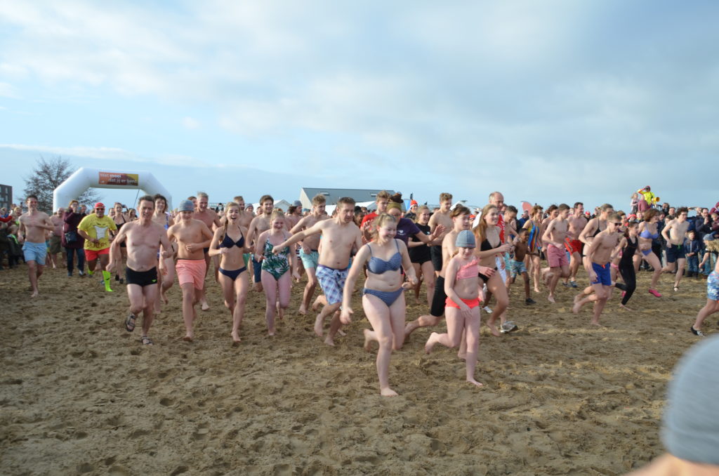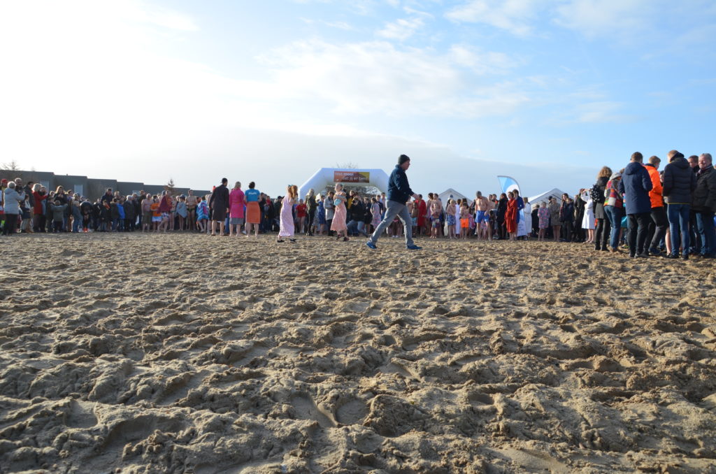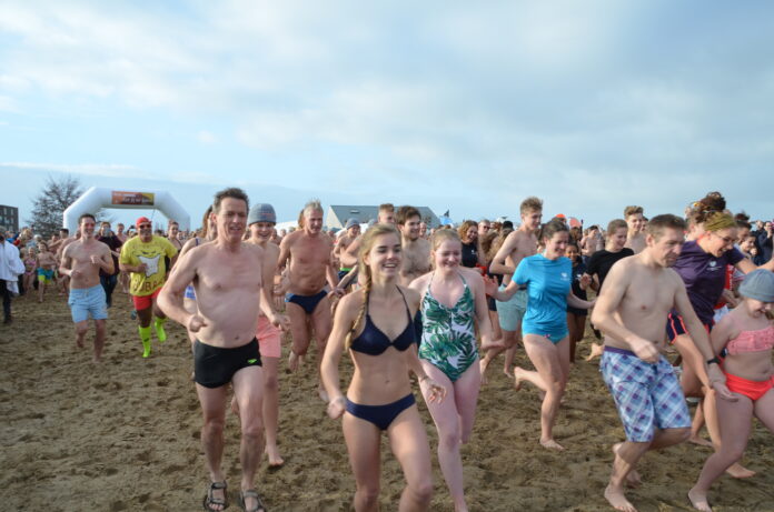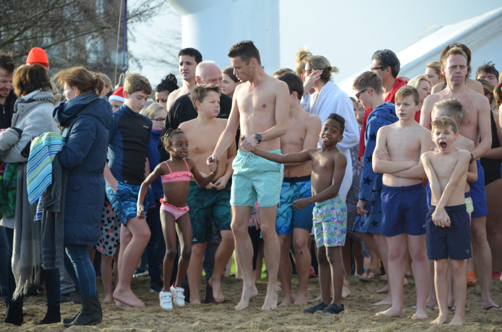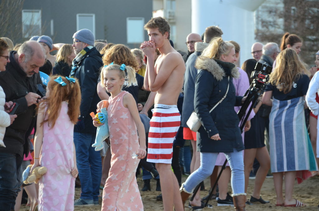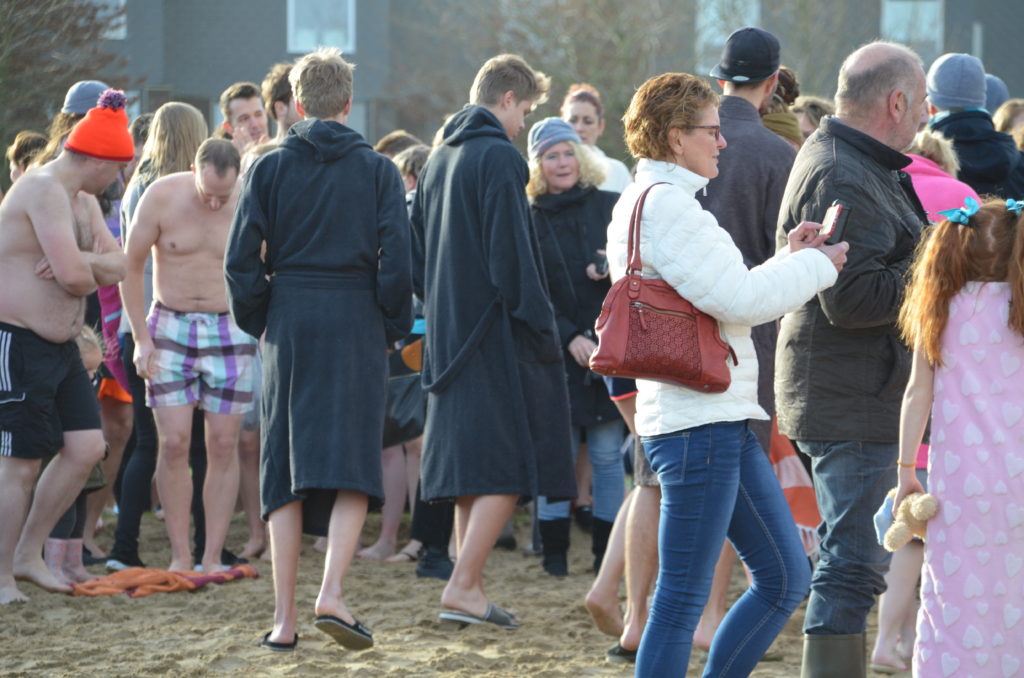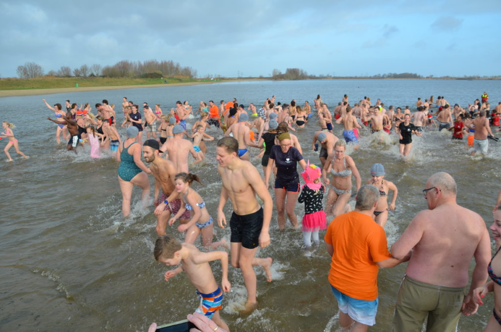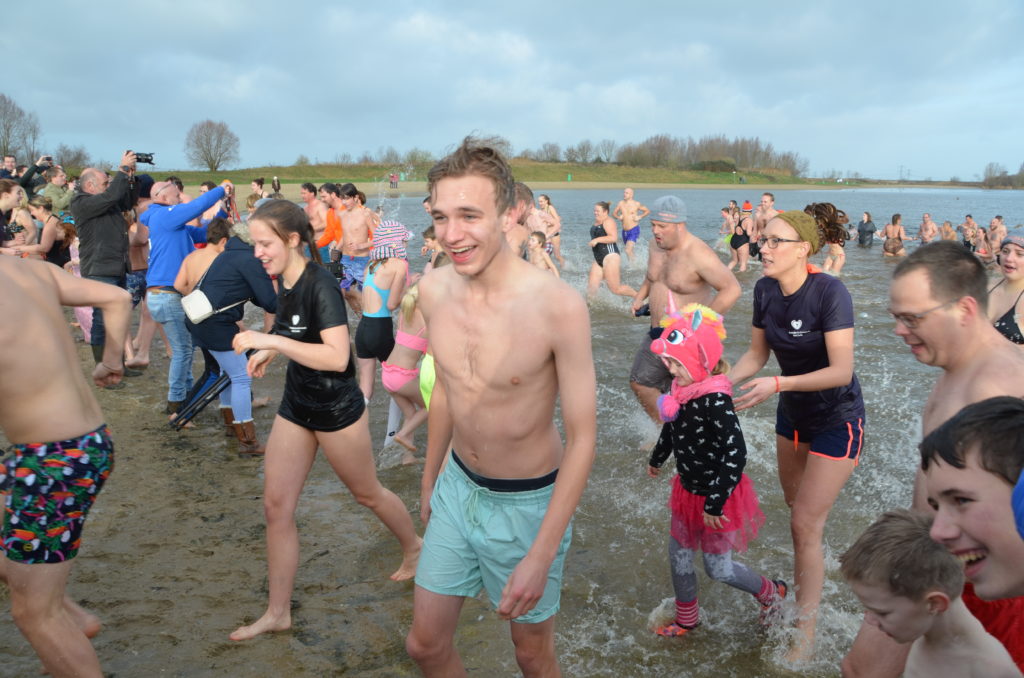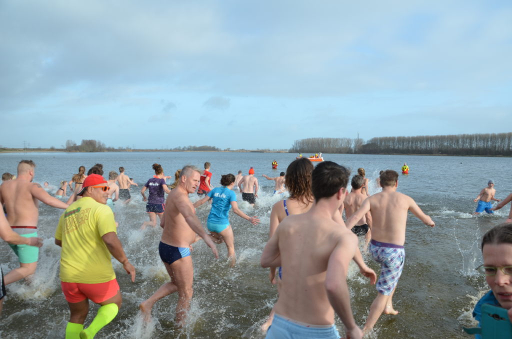 Het was het eerste moment in dagen dat de zon weer even doorbrak in Stadshagen. En dat kwam voor de vele honderden deelnemers van de nieuwjaarsduik in de Milligerplas wel heel goed uit. Want met een redelijke wind was de duik ditmaal toch iets koeler dan menigeen had verwacht.