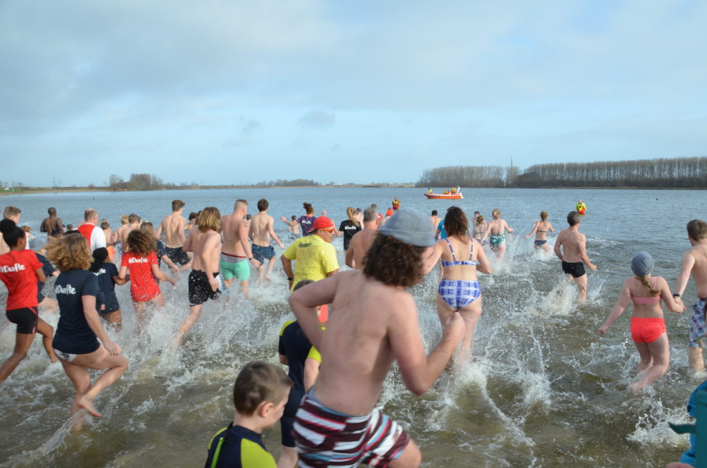 Koud of niet: ook deze editie van de duik in Stadshagen was er weer één die als geslaagd in de boeken kan gaan. Stipt om kwart voor twaalf doken de deelnemers na een hele korte warming up het water in, om als een speer weer naar de handdoek te rennen.