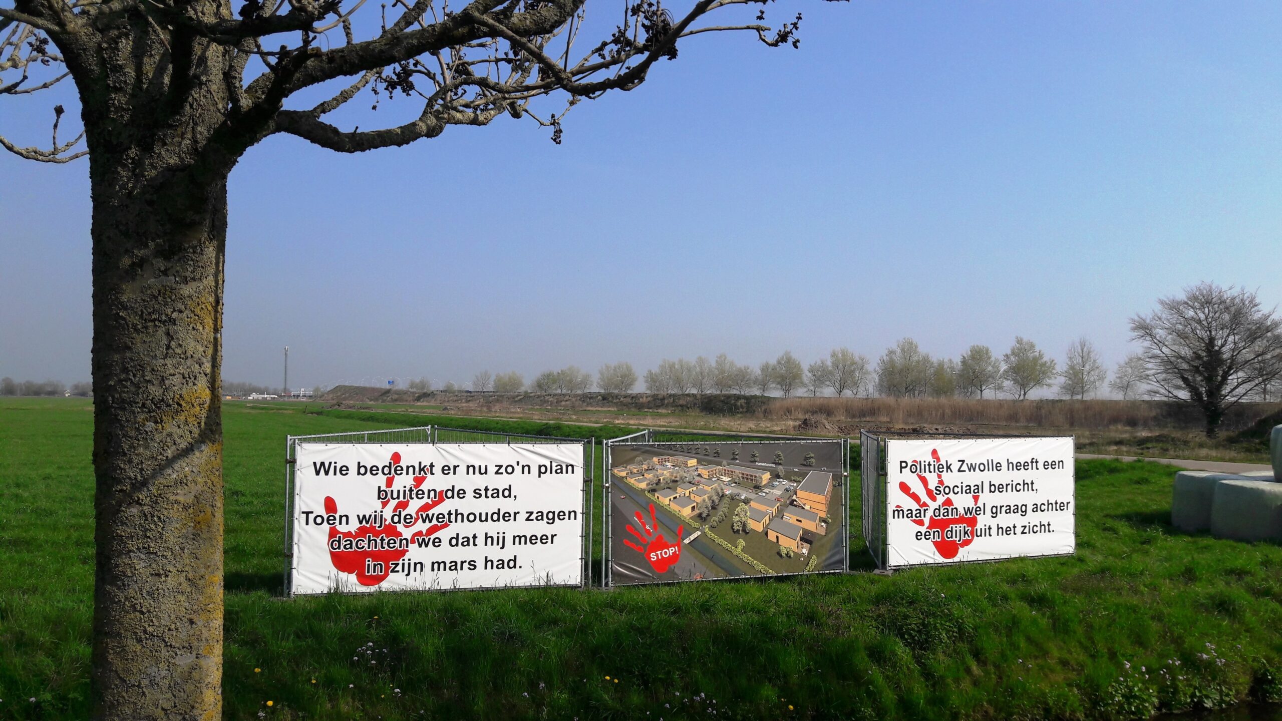 Zij voelen zich voor het blok gezet en vinden de plek niet geschikt om mensen te laten wonen. Zij plaatsten protestborden tegen de voornemens in de hoop dat politiek Zwolle nog tot inkeer komt.