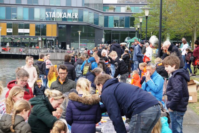 Wie Koningsdag op tv volgde wist ongeveer hoe laat het tijd werd om de volgepropte dozen van pitloze druiven en perssinaasappelen naar het Twistvlietpark te verplaatsen. Want na een druilerige ochtend werd het tegen het middaguur droog en vulden het park en het winkelcentrum zich met oranje, waardevolle spullen en overtollige prullaria. De Kleedjesmarkt werd weer gezellig druk, een Koningsfeest als vanouds. Ons Koningsfeest. In onze wijk.