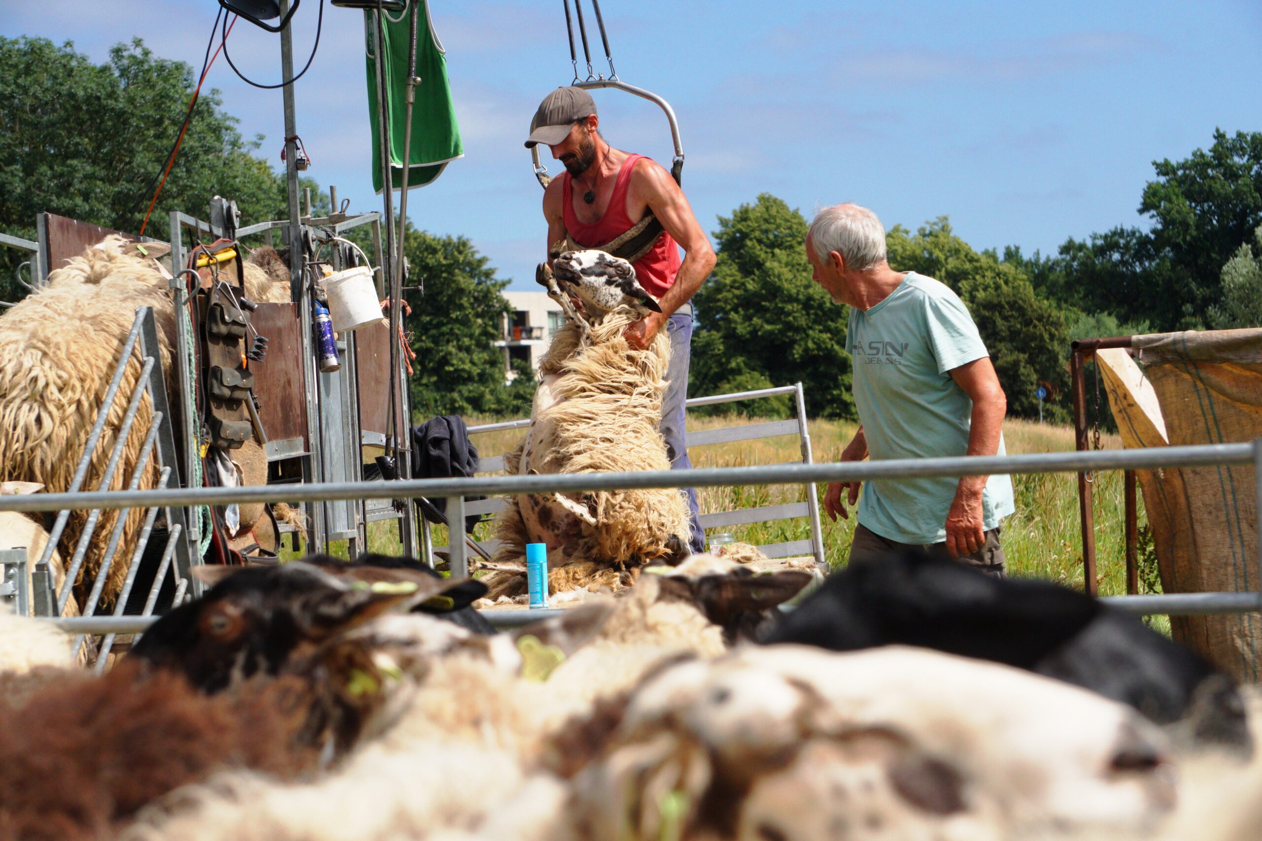 Een deel van de kudde van herder Tjitse Stelpstra is enkele weken geleden al geschoren. Donderdag was de rest van de schapen aan de beurt, want mei en juni zijn de jaarlijkse scheerdersmaanden. Schaapherder is een vak apart, maar het scheren laat Stelpstra aan een vakbekwame schapenscheerder over. Eén voor één lopen de beesten in de fuik, als het luik open gaat ben je aan de beurt om tenslotte kaal, onherkenbaar maar opgelucht de wei in te rennen.