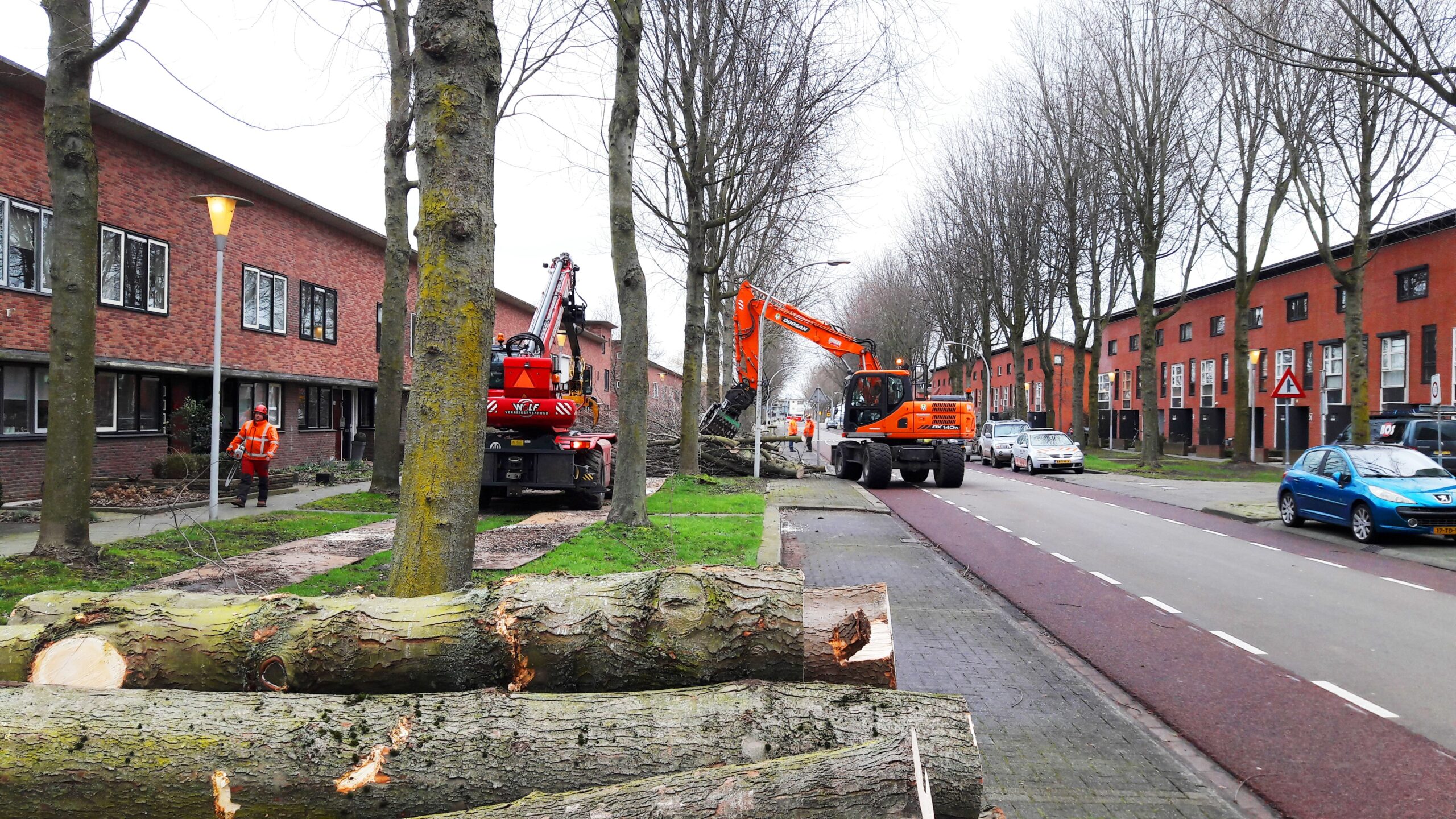 Het is alsof storm Ciara in de Klokkengieterlaan flink heeft huisgehouden: de straat mist sinds vanochtend ruim 50 bomen. Elders in ons land trok de storm afgelopen zondag met grof geweld veel bomen met wortel en al uit de grond. Dit in tegenstelling tot de wijze waarop de gemeente de kap van de zilveresdoorns in de Klokkengieterlaan aanpakt. Met veel precisie, tak voor tak en stam voor stam, werd de straat binnen twee uur twee bomenrijen armer. Het rooien is nodig omdat de bomen elkaar in de groeimogelijkheden gingen concurreren. Bewoners waren verdeeld over behoud of kap, maar groeimotieven gaven uiteindelijk de doorslag voor het rooien van de helft ervan.