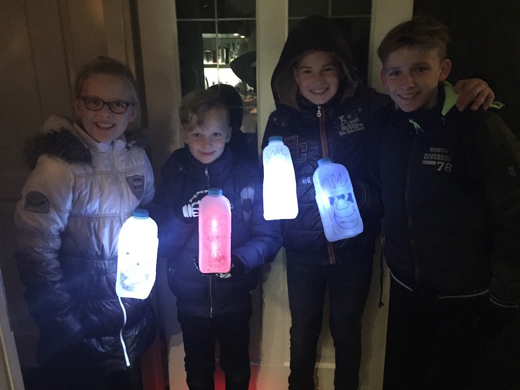 De kinderen brachten dit jaar ook veel zelfgemaakte lampionnen mee. De weersverwachtingen waren nog even spannend: rond zes uur haastten de eerste ouders zich met hun kroost door de straten met een schuine blik op de buitenradar. Toch bleef striemende regen tijdens het lampionnenspitsuur gelukkig uit.
