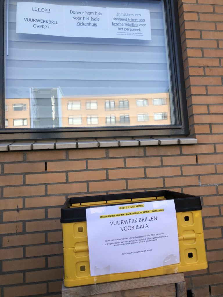 Door het toenemende aantal Corvid19 patiƫnten dat moeten worden opgenomen in ziekenhuis Isala, ontstaat een dreigend tekort aan beschermbrillen voor het personeel. Er is daarom een inzamelingsactie gestart om vuurwerkbrillen in te zamelen. Deze kunnen worden gesteriliseerd en hergebruikt worden als beschermbril. Inzamelen kan tot en met zaterdag 28 maart op verschillende inzamelpunten in Stadshagen.