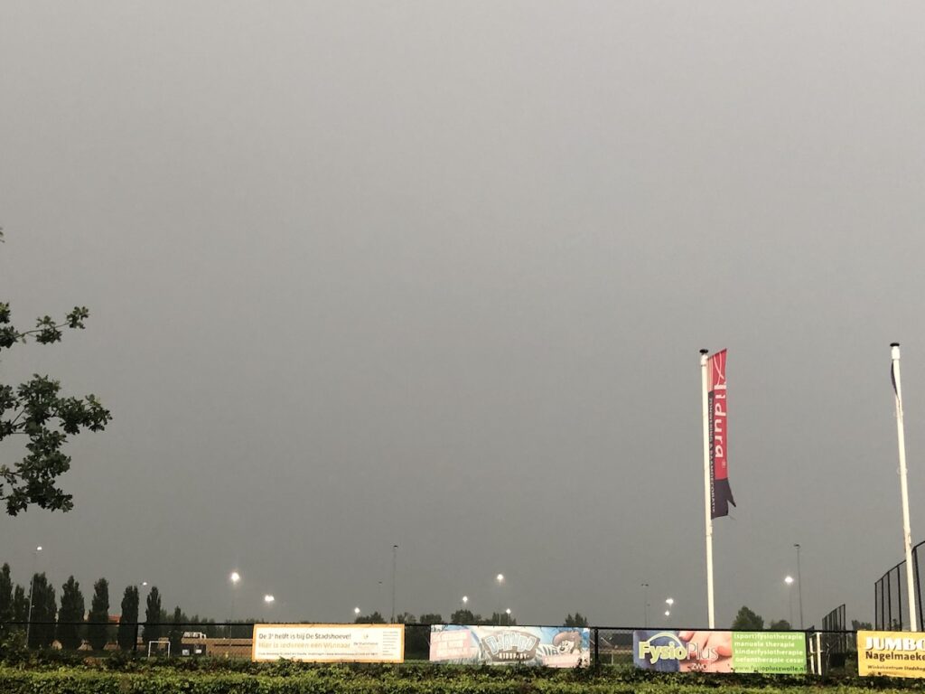 Bij CSV’28 werden de lampen zelfs ontstoken, zo donker werd het ten tijde van de regenbui. Automobilisten ploegden zich langzaam voort over onder meer de Stadshagenallee, waar het water ook centimeters hoog op de weg stond.