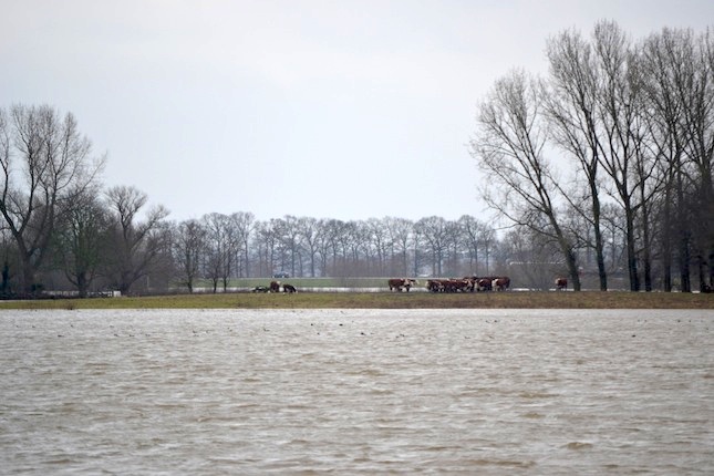 Wie weleens langs de IJssel wandelt en ook deze dagen een bezoekje brengt zal opvallen hoe spectaculair de rivier buiten zijn oevers is getreden. Zaterdag bereikte de IJssel bij Zwolle een hoogtepunt door de aanvoer van water uit de Rijn. Daardoor stroomden de uiterwaarden volledig vol. Bezoekers die de gigantische watermassa aanschouwden maakten zich zorgen om een kudde koeien die op een eilandje lijkt te staan. Hoe het daarmee afloopt is niet duidelijk, omdat de IJssel de komende week weer iets gaat stijgen. Bekijk de foto- en videoreportage.