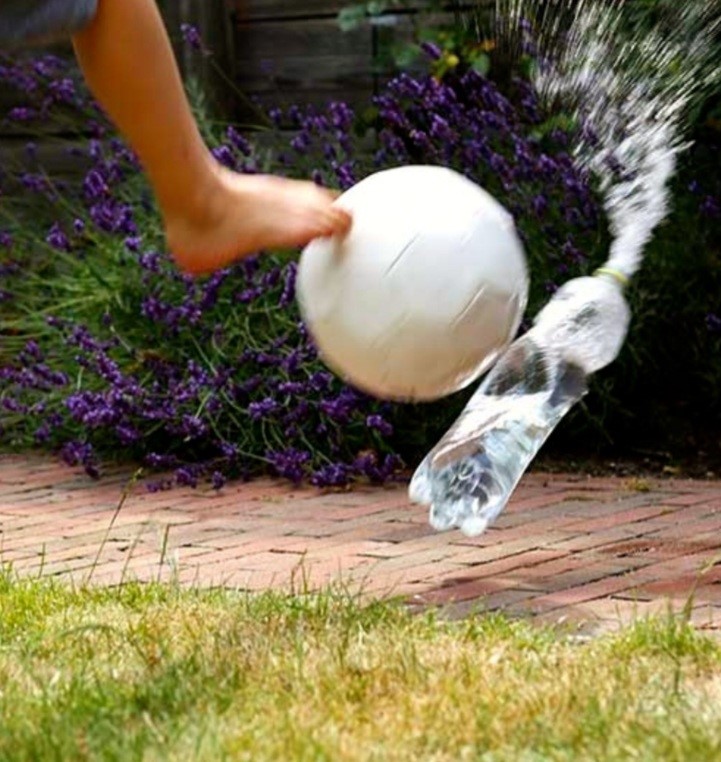 - Flessen voetbal of hockey. Samen met je broer/zus of buurkinderen vul je een grote fles met water. Het is de bedoeling dat jij de fles van de ander om krijgt met de bal en andersom. Als je fles is omgevallen moet je hem zo snel mogelijk weer neer zetten. Wie als eerste een lege fles heeft verliest..