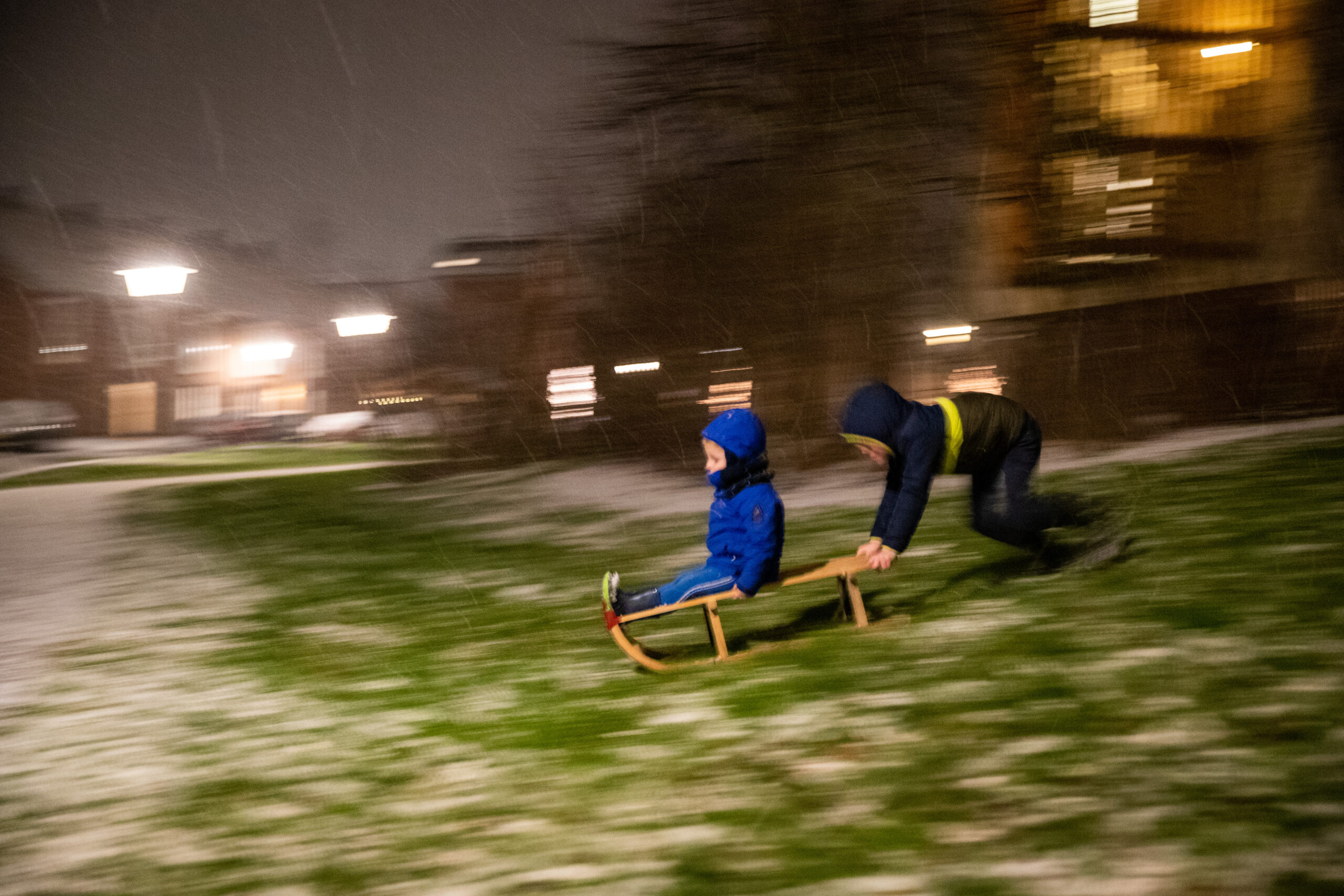 De eerste echte sneeuw van deze winter bereikte Stadshagen zaterdag tegen het einde van de middag. Er viel maar een klein laagje van 2 à 3 centimeter, maar dat was voldoende voor wet sneeuwpret.