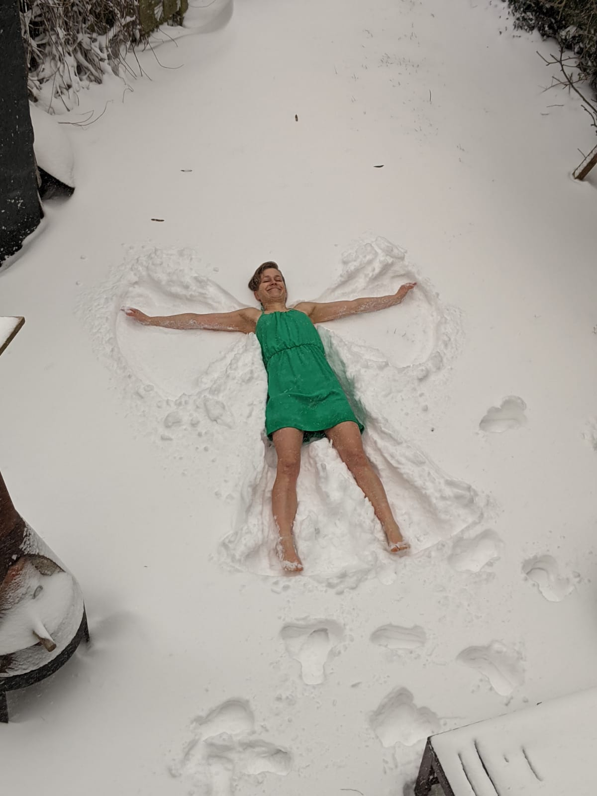 Vandaag maakte Kim Veldwijk een sneeuwengel in haar zomerjurk. Ze is initiatiefnemer van de actie ‘Sneeuwengel in Zomerjurk’. Ze wil met deze actie geld in zamelen voor KWF kankerbestrijding. Zelf is ze 7 jaar geleden volledig genezen van kanker. Samen met nog een aantal vrouwen uit Stadshagen duikt Kim de sneeuw in voor een sneeuwengel in een zomerse outfit.