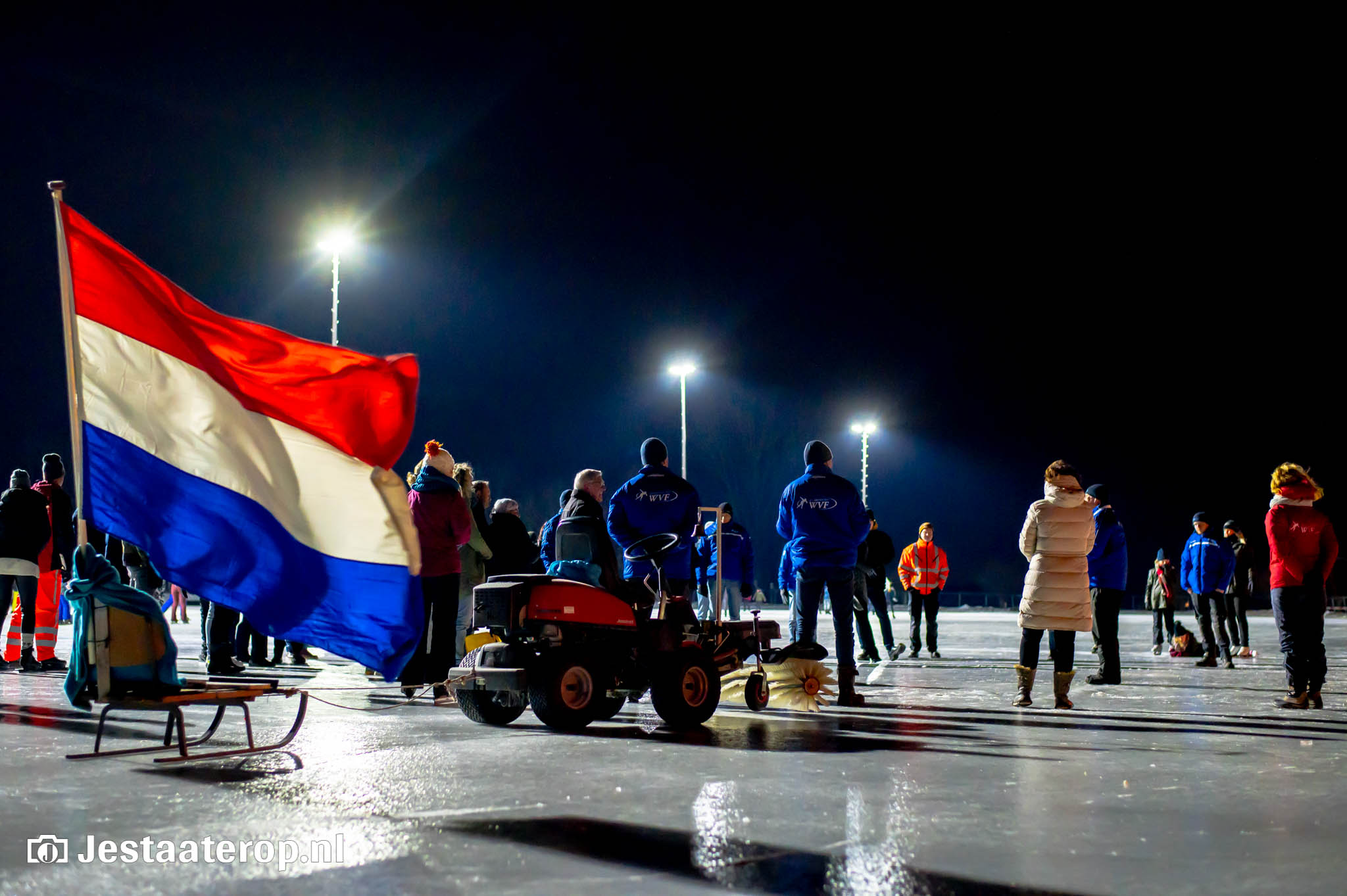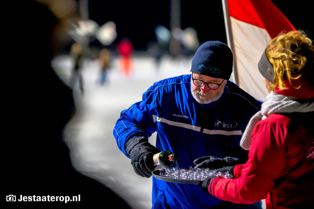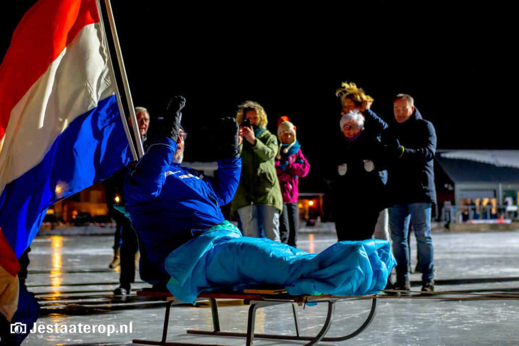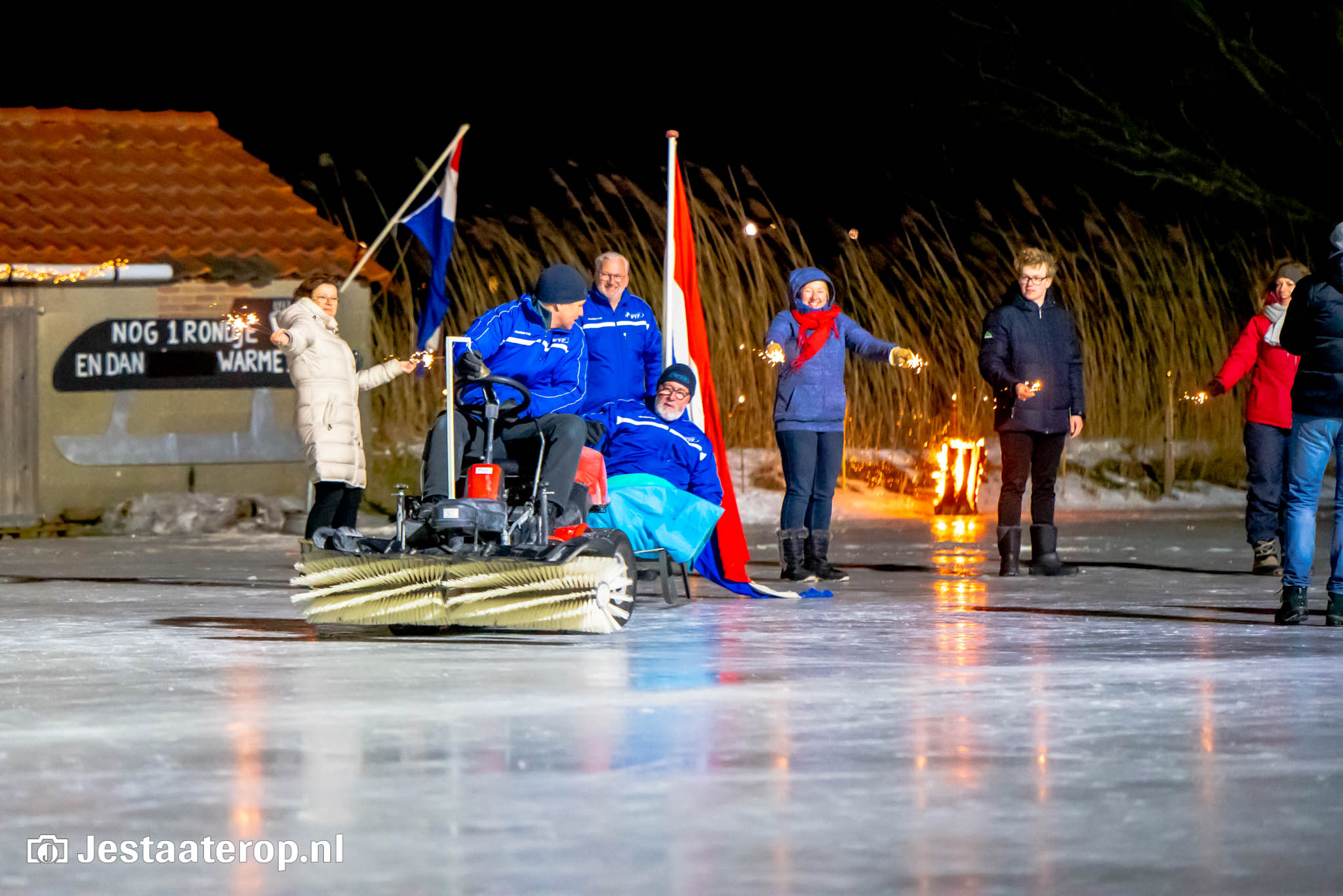 Na deze huldiging maakte Klaas een ereronde over de ijsbaan – op een slee, getrokken door de borstelwagen. Onder het genot van een borrel, en na het wegpinken van een traantje, sprak Klaas een dankwoord en was het tijd voor anekdotes. Één van de mooiste was misschien wel de ijstransplantatie die in 2018 landelijk nieuws werd: de ijsbaan lag nog voor een deel open, terwijl een naastgelegen plas mooi dichtgevroren was. Met man en macht is toen ijs uit de plas naar de ijsbaan gebracht en kon er even later genoten worden van een mooie ijsbaan.
