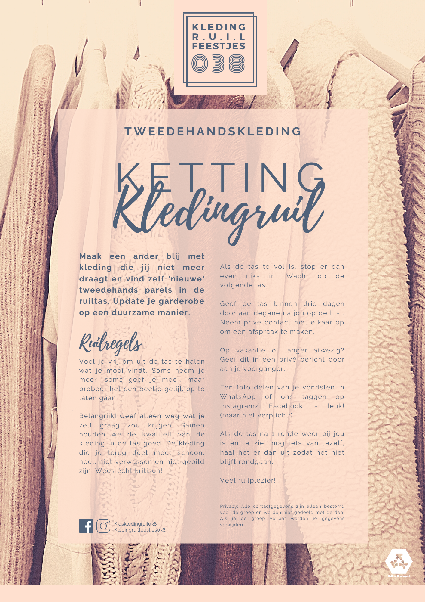 Tijdens de eerste lockdown begon een Ketting Kledingruil in Amsterdam Noord als alternatief voor live kleding ruilen. Inmiddels is het initiatief uitgegroeid tot een landelijk succes. In Zwolle hebben Anke Aberson en Lisette Fraanje van Kledingruilfeestjes038 twee kettingen met ruilers opgezet. 1/3 van deze ruilers komt uit Stadshagen.