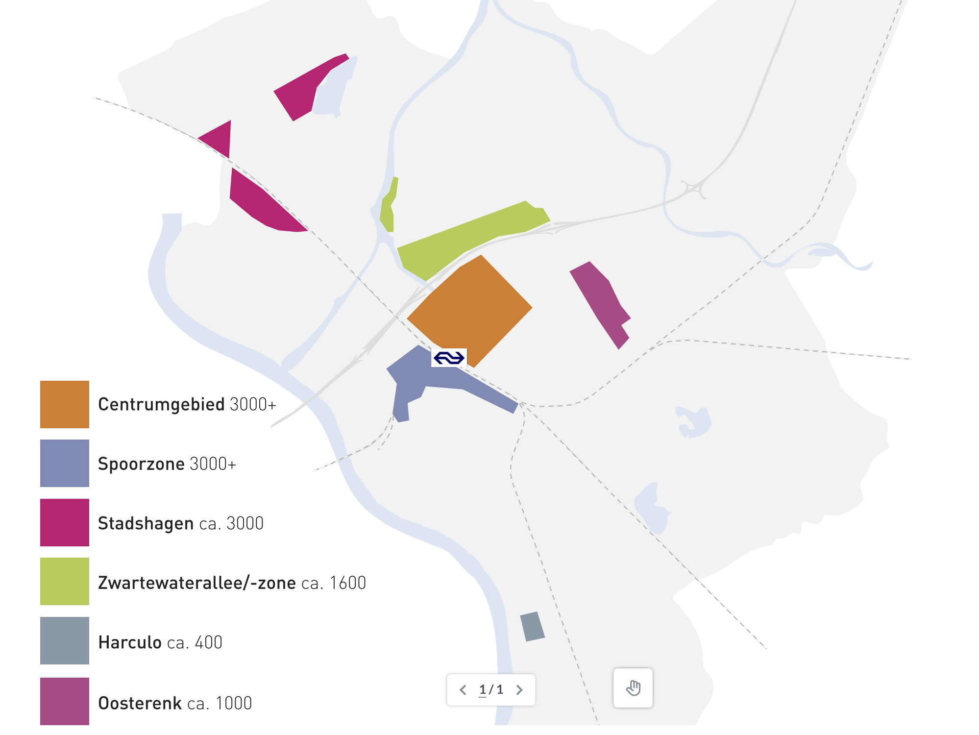 Nu nog levert Stadshagen een fors aantal woningen. Maar het tempo waarmee nieuwe woningen wordt gebouwd gaat in Zwolle fors omhoog. De ambitie is om duizend woningen per jaar te bouwen, vierhonderd meer dan de Zwolse organisatie tot dusver gewend is. Veel van die woningen komen in de spoorzone, Harculo en andere plekken in de stad.