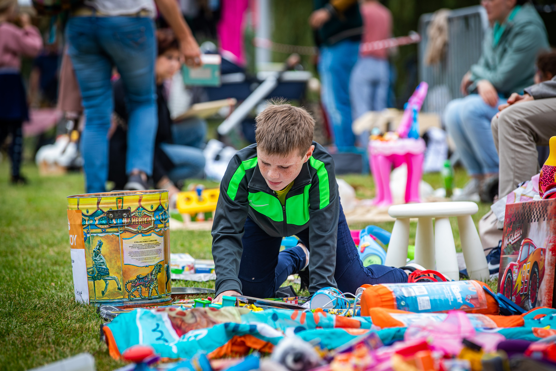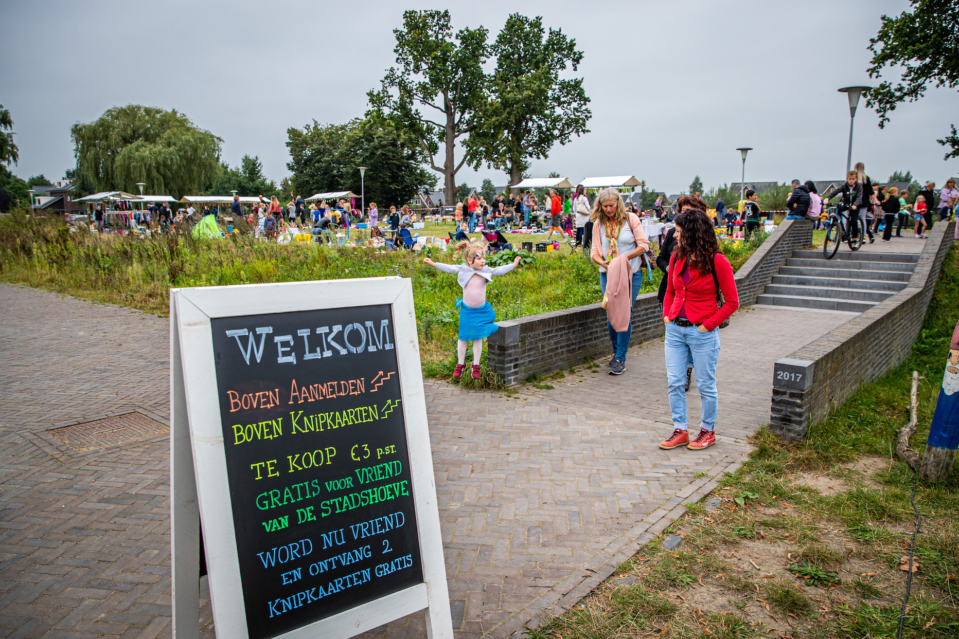 De burendag kende een bewolkte start, maar later probeerde de zon er een beetje doorheen te breken. Het kon de bezoekers niet deren, het was gezellig druk. Kinderen werden geschminkt, er werd zo nu en dan gehandeld bij de vele kleedjes maar de grootste rij stond uiteindelijk bij de pannenkoeken.