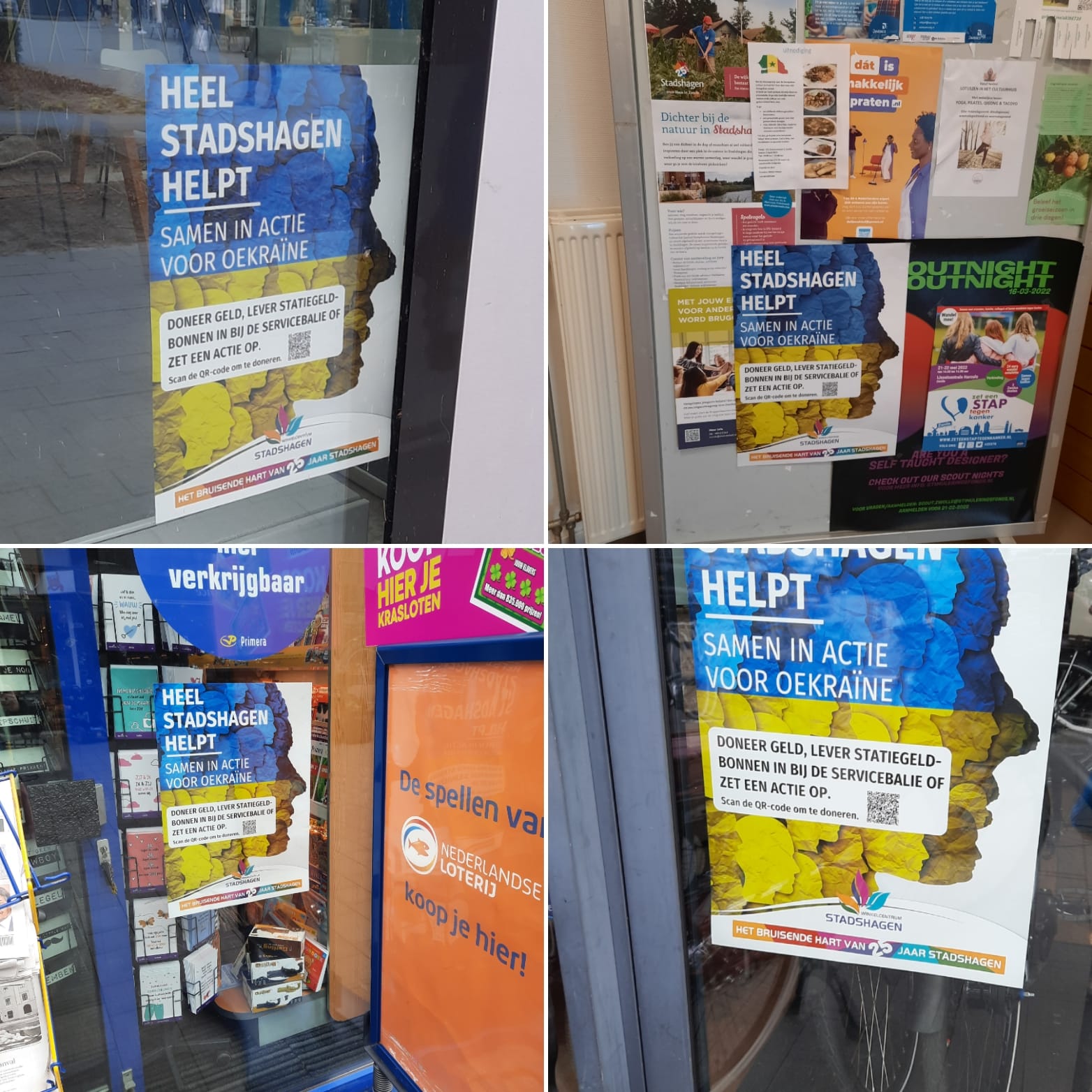 ‘Heel Stadshagen helpt’. Heeft u de posters in het winkelcentrum al gezien? Ook Stadshagen komt in actie voor de mensen in Oekraïne. Naast de grote landelijke actie voor giro 555 zijn er overal kleine en grotere initiatieven om geld op te halen voor de mensen die Oekraïne ontvlucht zijn, maar ook voor de mensen die nog in het land midden in de oorlog zitten. De actie in Stadshagen heeft als doel om 10.000 euro op te halen voor de samenwerkende hulporganisaties.