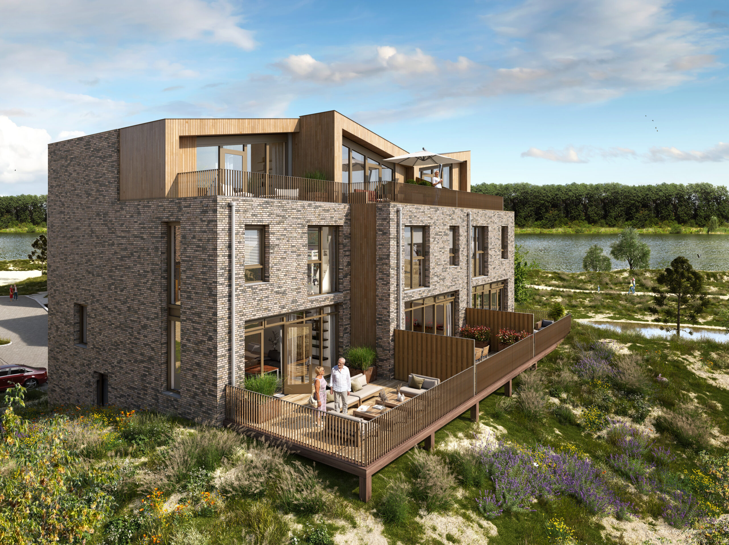 Door de ligging in de duinen ontstaat door het hoogteverschil in de omgeving een bijzonder project waar niet één woning gelijk is. Iedere woning heeft een unieke zichtlijn en uitzicht. In plaats van een eigen tuin heeft elke woning twee terrassen waarvan het terras op de eerste verdieping vrijwel altijd overloopt in het duingebied. Iedere woning is door de vier ruime woonlagen voor een groot deel naar eigen wens in te delen.