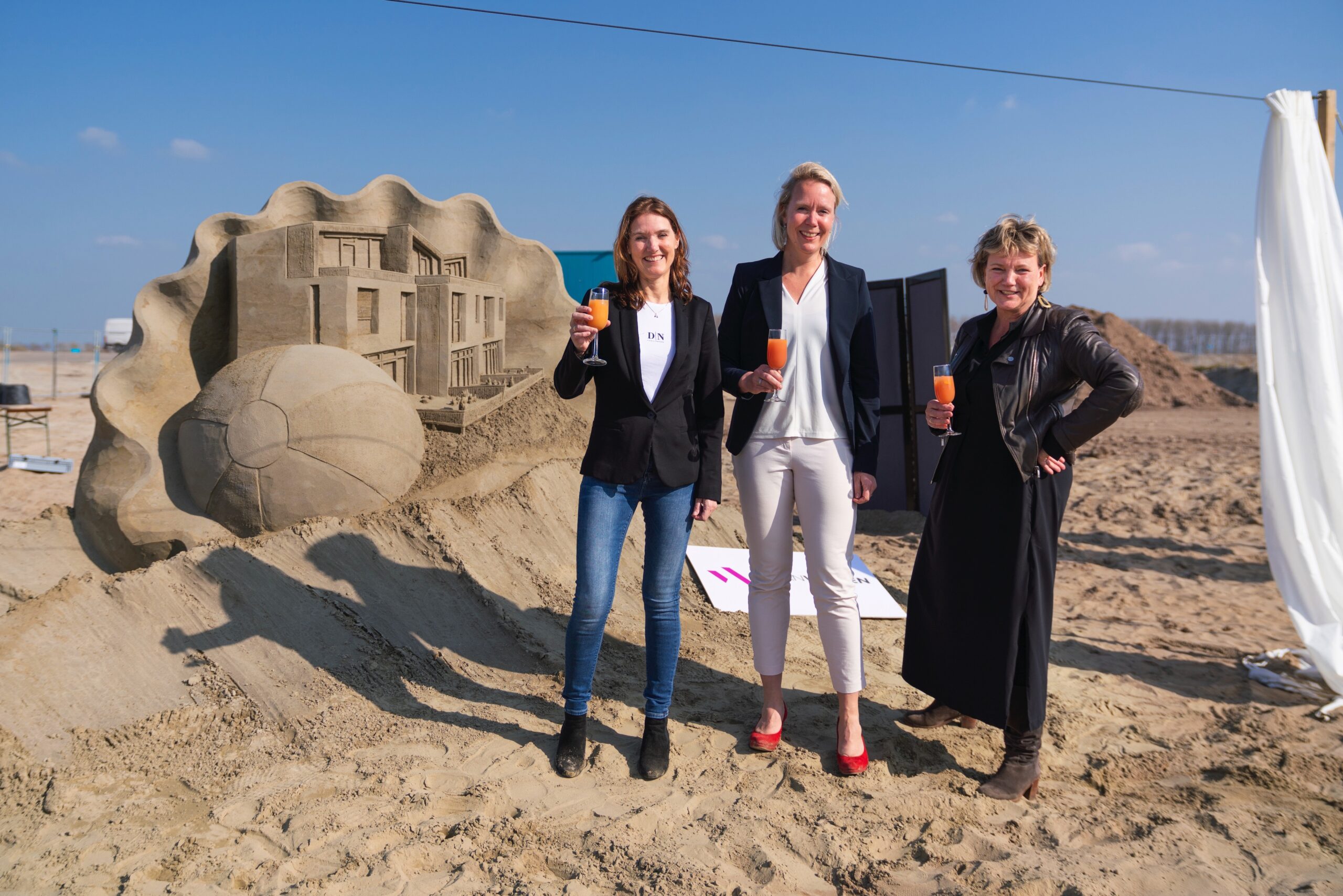 De toekomstige bewoners van Duinzicht waren uitgenodigd voor de start van de bouw. Na ontvangst en enkele korte speeches was het tijd voor de onthulling van de zandsculptuur. Deze werd uitgevoerd door wethouder Monique Schuttenbeld, samen met Mireille Jeurnink namens VanWonen en Antoinette Wilmot van Reinbouw.