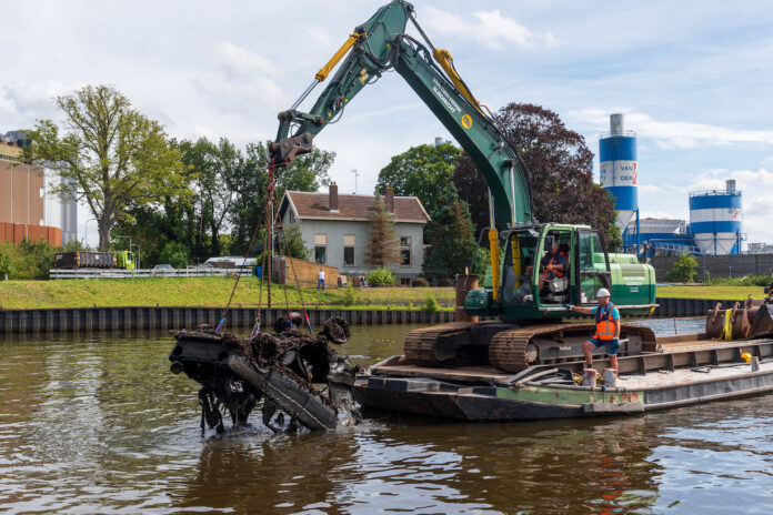 Een meer dan vijftig jaar oude Simca is maandag uit het Zwolle-IJsselkanaal getakeld. Afgelopen donderdag ontdekte de bemanning van een sonarboot van Johan ten Have uit Wijhe het wrak op de kanaalbodem. Het is standaardbeleid van Rijkswaterstaat om auto’s te bergen. Dit om de vaarwegen veilig te houden voor de scheepvaart.