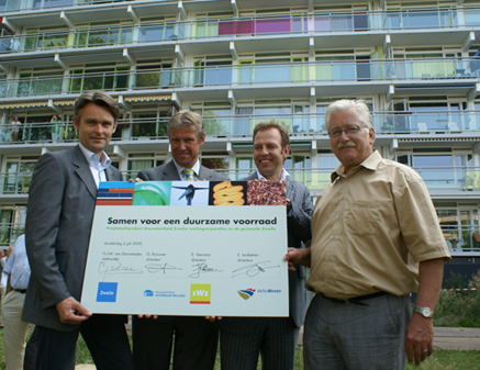 Volgens de gemeente Zwolle is het voor het eerst dat een gemeente duurzaamheidsafspraken maakt met woningcorporaties. Donderdag deden de gemeente en de woningcorporaties de aftrap door de Rembrandtflat in Holtenbroek opnieuw te ‘dopen’: de flat is door aanpassingen van energieklasse E naar A gegaan. Ook nieuwbouw moet door de duurzaamheidsafspraken dus milieu- en energievriendelijker worden. Momenteel bouwen de corporaties in onder meer Werkeren huurwoningen en staat de bouw van meer gepland in Breecamp-Oost.