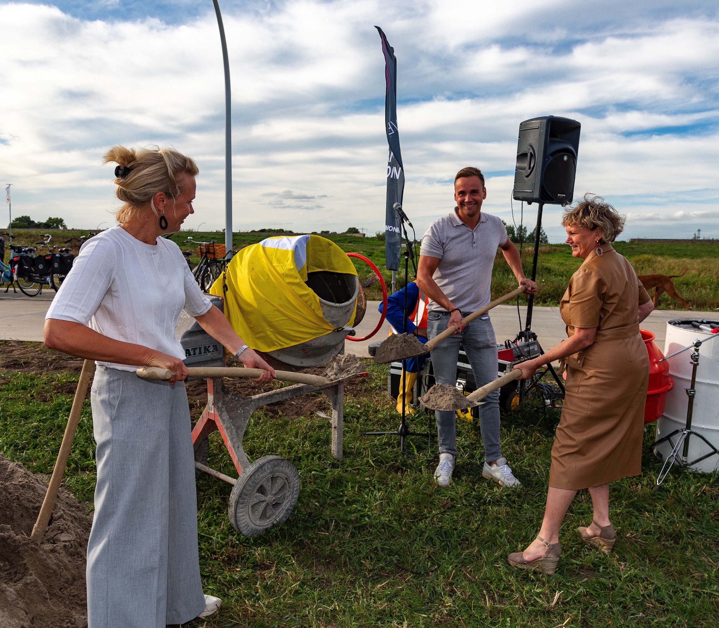 Onder het toeziend oog van levende zandsculpturen en begeleid door een live percussie act werden symbolisch de eerste scheppen zand in de cementmolen gedaan door de Zwolse wethouder Monique Schuttenbeld, VanWonen Directeur Mireille Jeurnink en Berend Jan van der Steeg, Directeur Van der Steeg Ontwikkelen en Bouwen. Na deze officiële start van de bouw was er gelegenheid voor de toekomstig bewoners om met elkaar kennis te maken en de eerste ervaringen te delen. De wethouder feliciteerde de bewoners met hun nieuwbouwwoning: “Als gemeente zijn we blij dat weer veel mensen in Breezicht Noord een mooie en duurzame woning hebben gevonden, in een groene omgeving. Het duurt nog even maar ik wens alle bewoners alvast heel veel woongeluk.”