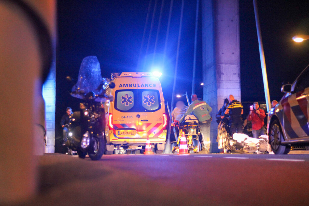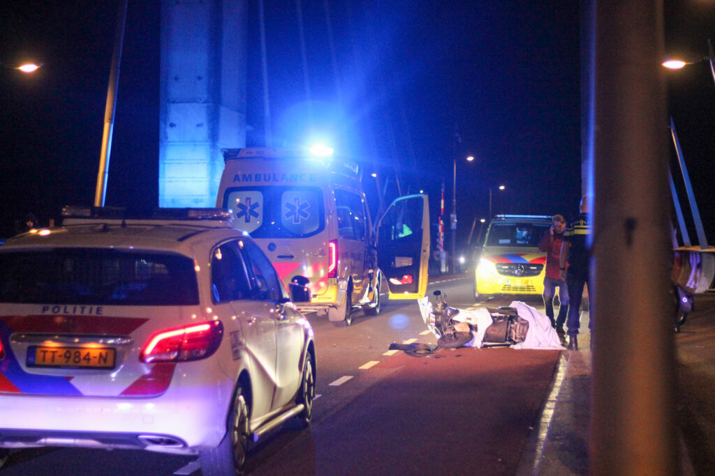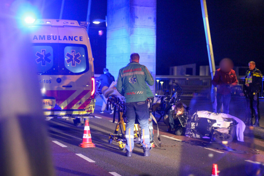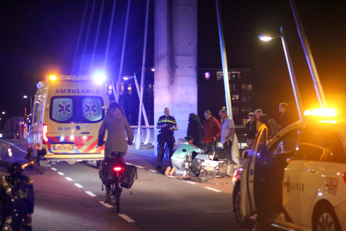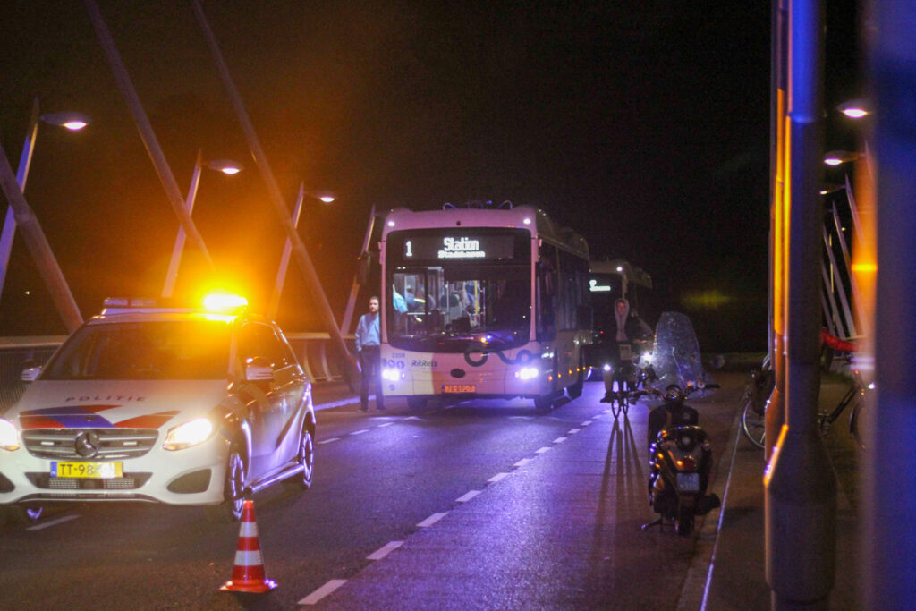 De twee scooterrijders kwamen rond kwart voor zeven met elkaar in botsing nadat een van hen moest uitwijken voor een fietser. De fietser kwam met de schrik vrij. Doordat het midden op de brug was gebeurd, heeft het busverkeer er enige hinder van ondervonden. Omstreeks acht uur was de brug weer vrij.