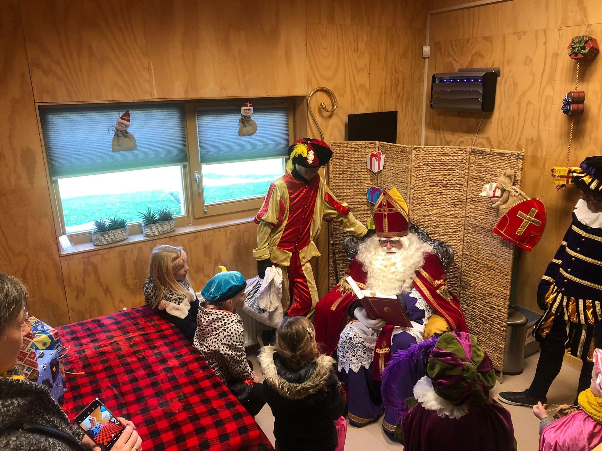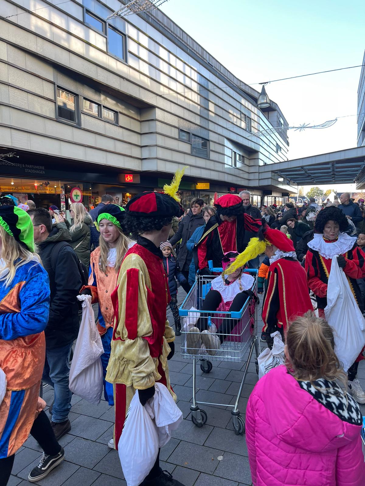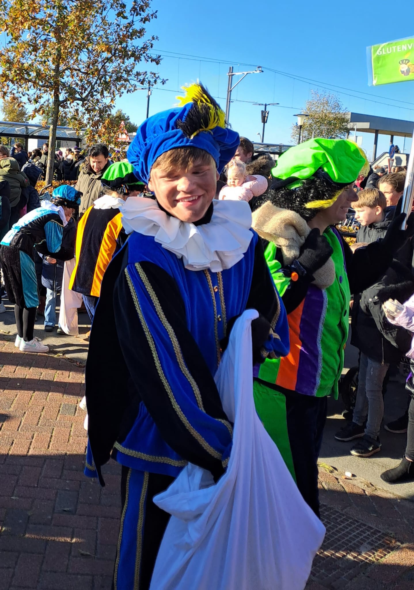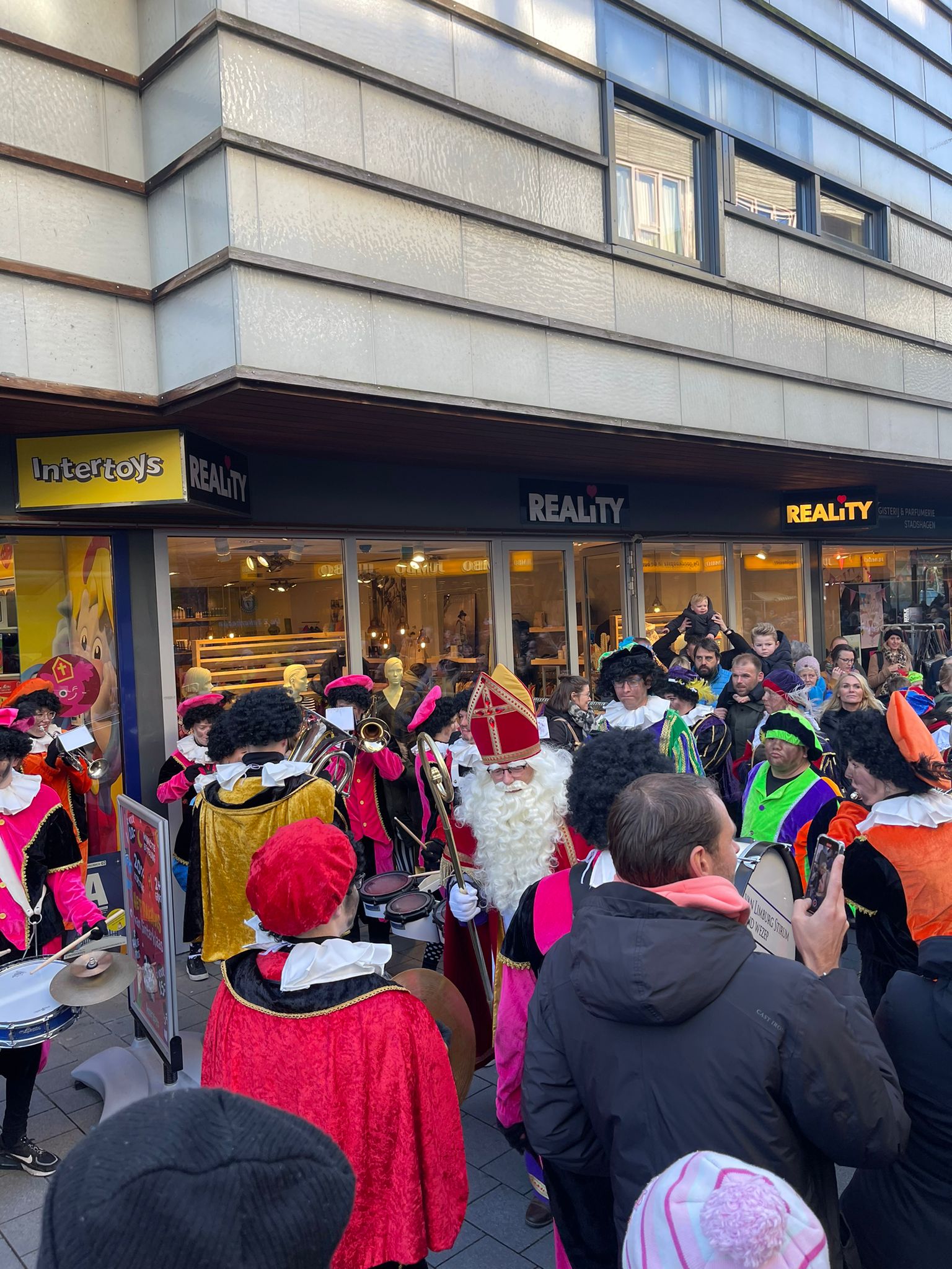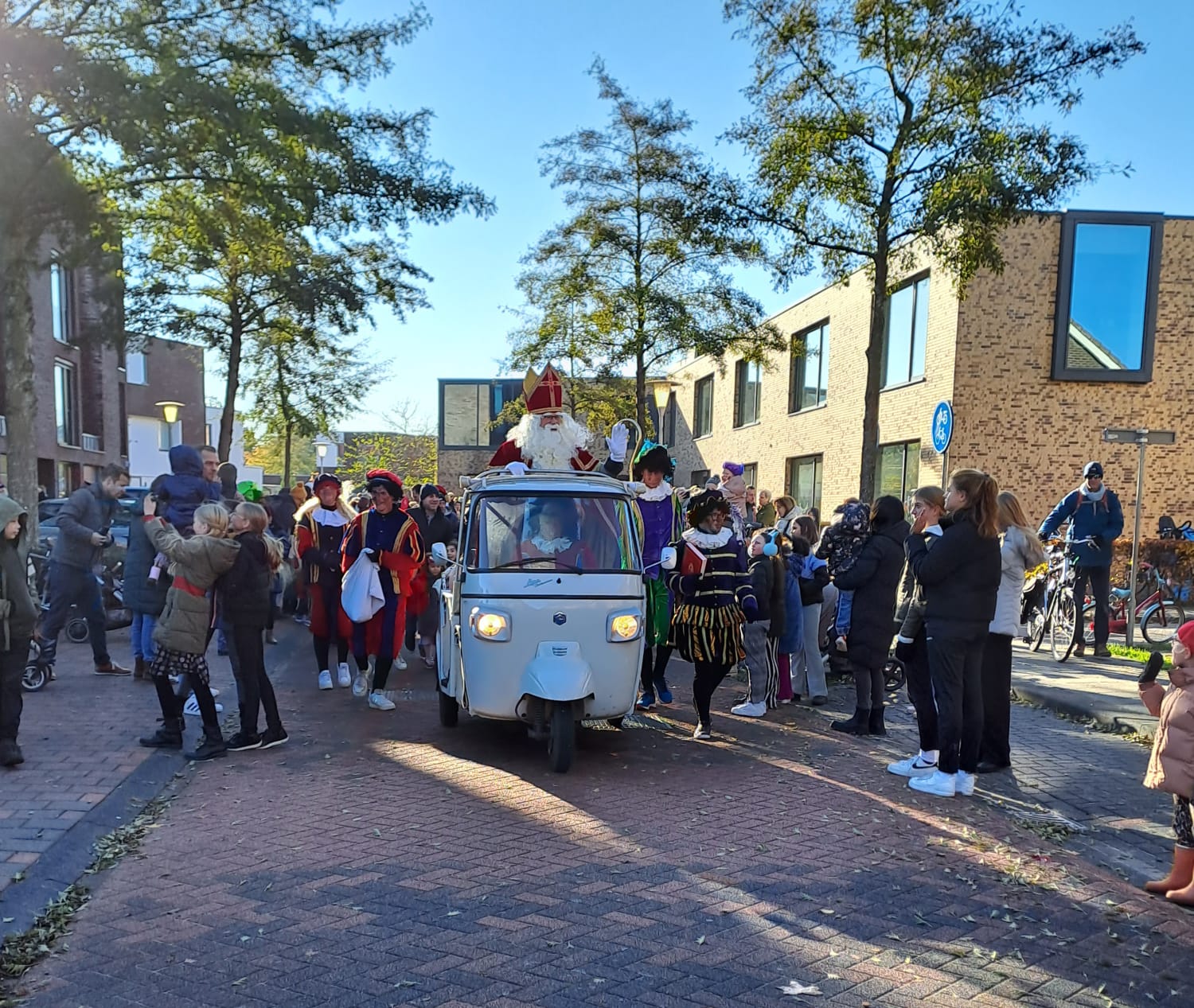 Een aantal pieten waren alvast vooruit gekomen, en zorgen voor een gezellige sfeer met volop pepernoten. Tegen het middaguur arriveerde de Goedheiligman per trein. Een feestelijk onthaal volgde, met een rondrit per tuktuk langs Park de Stadshoeve naar het winkelcentrum.