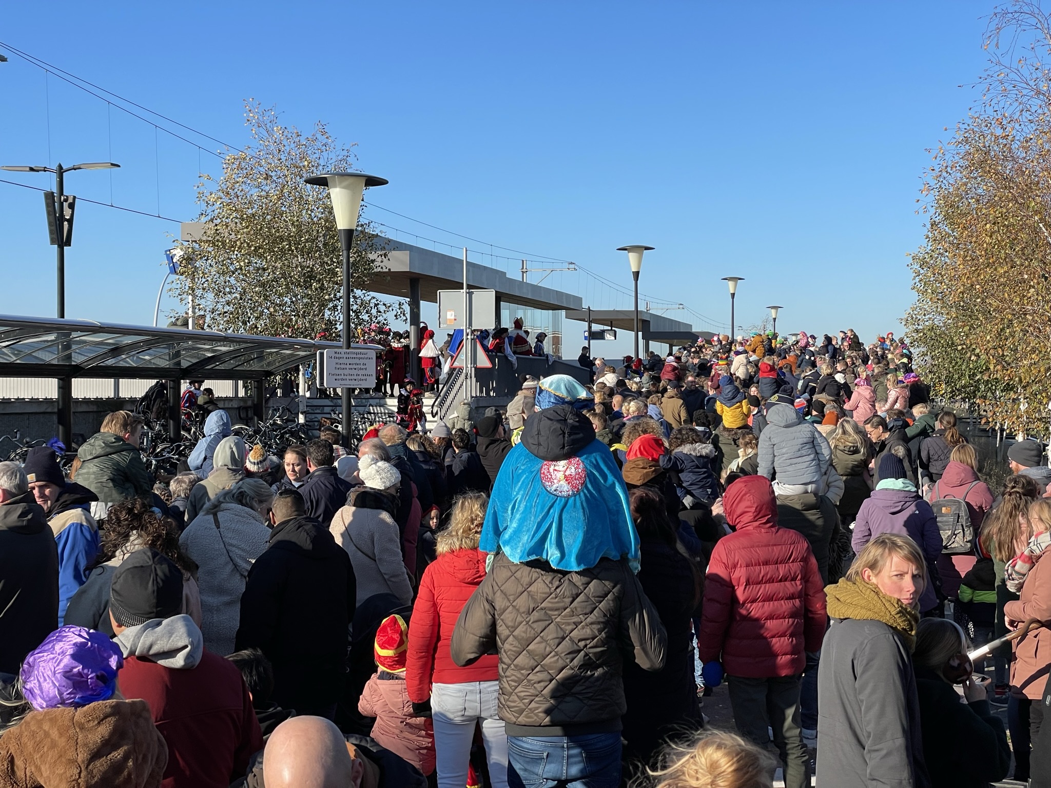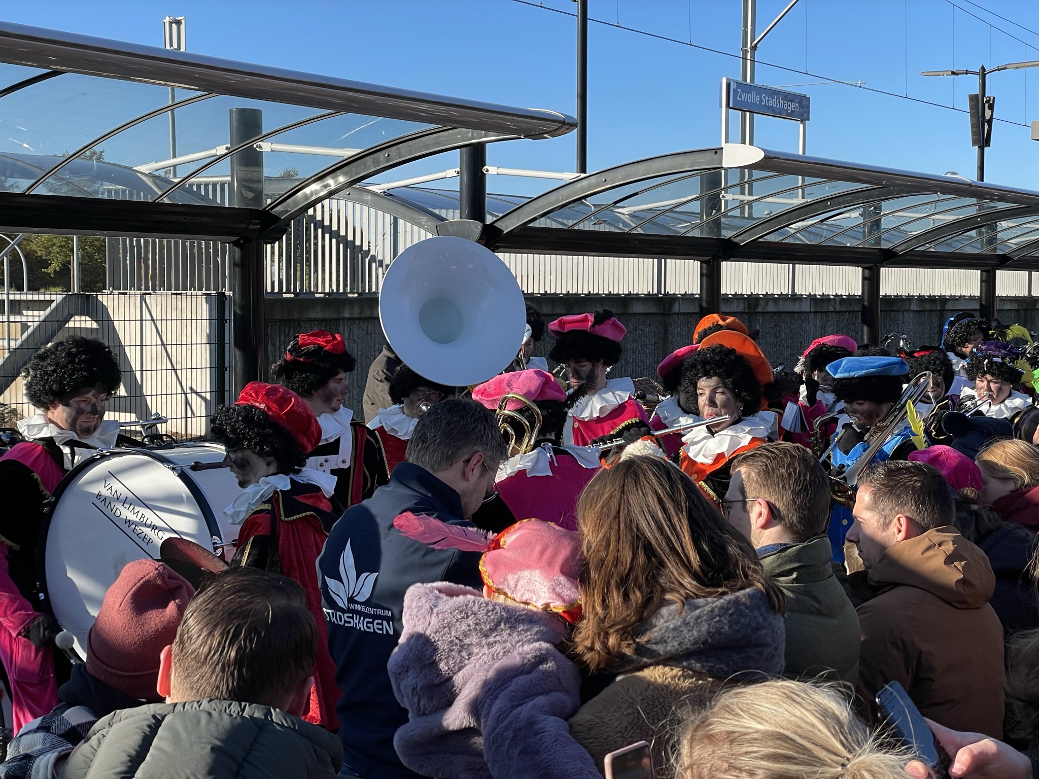 Na twee jaar zonder intocht, genoot Stadshagen zaterdag zichtbaar van de aankomst van Sinterklaas! Onder een strak blauwe hemel, flink koud maar in het zonnetje, stonden honderden kinderen te wachten bij het treinstation in de wijk.