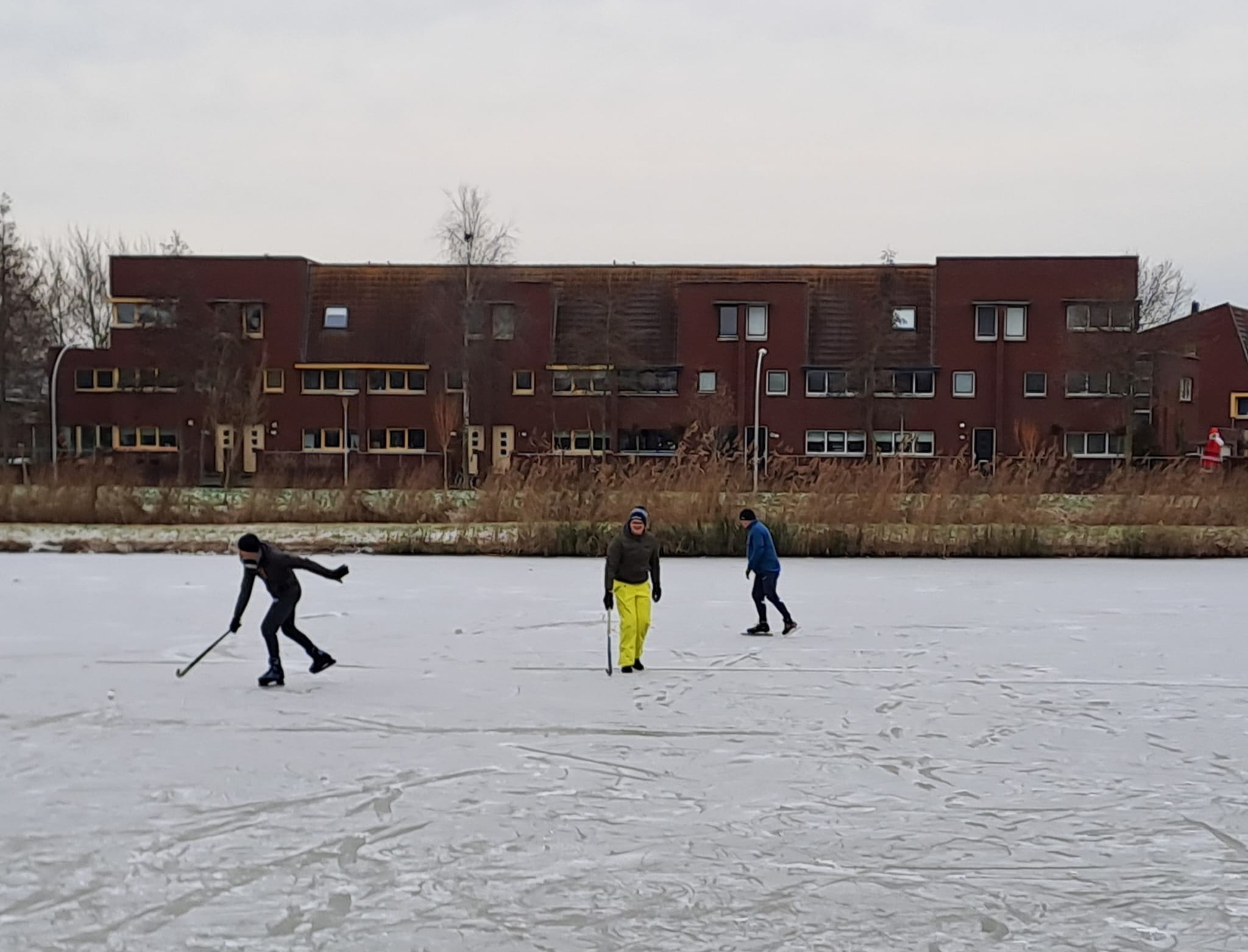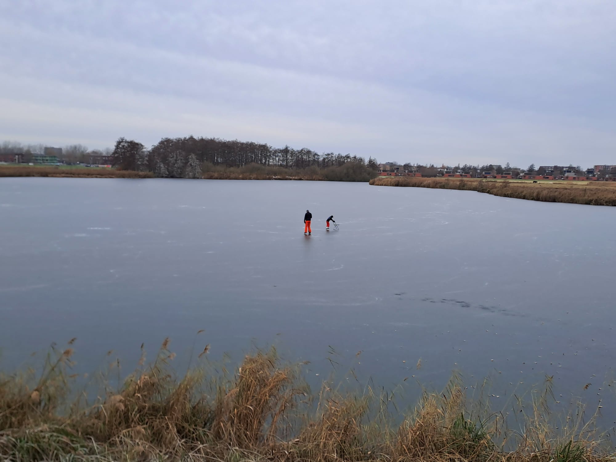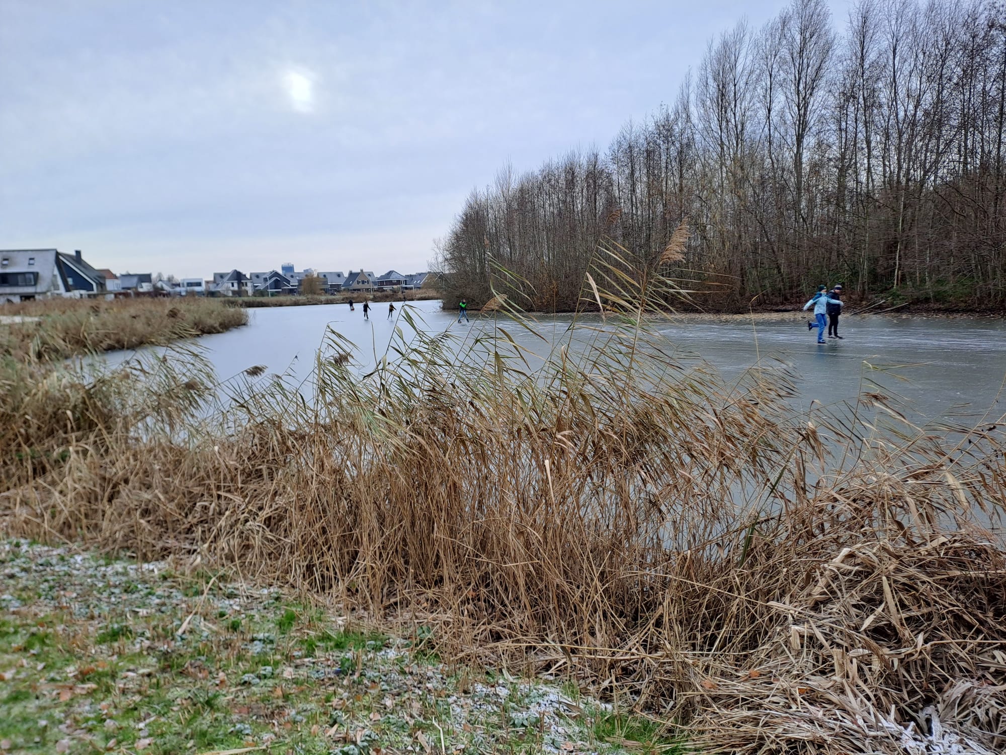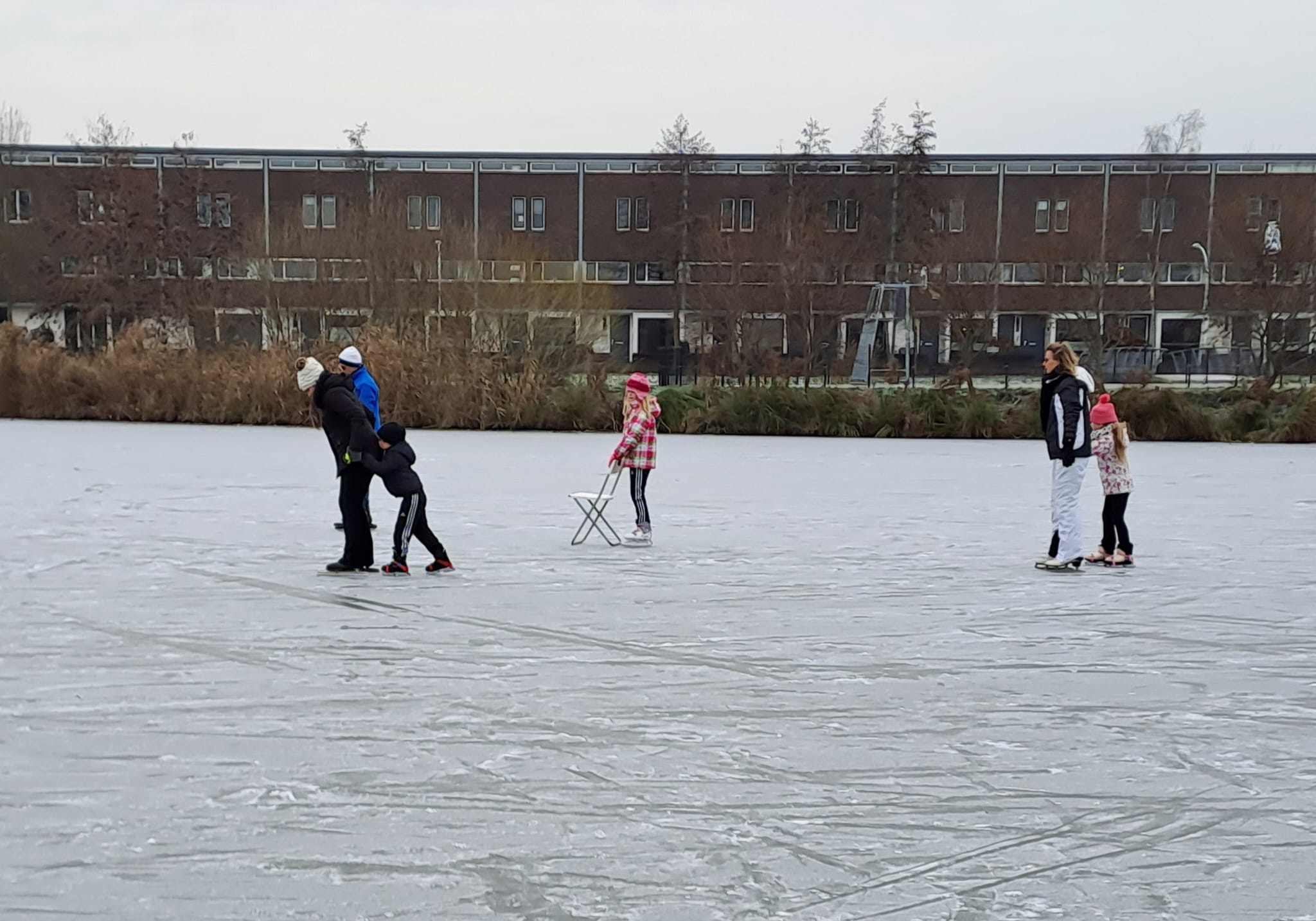 Met name op plekken als de plas bij het winkelcentrum en slootjes door de wijk zelf waren veel schaatsers en kinderen te zien. Het was overigens nog niet overal vertrouwd, want het ijs kraakte soms flink en bij bruggen en duikers was nog wel open water te zien.