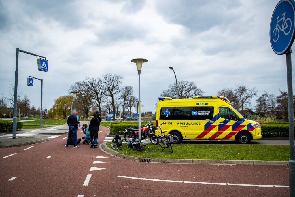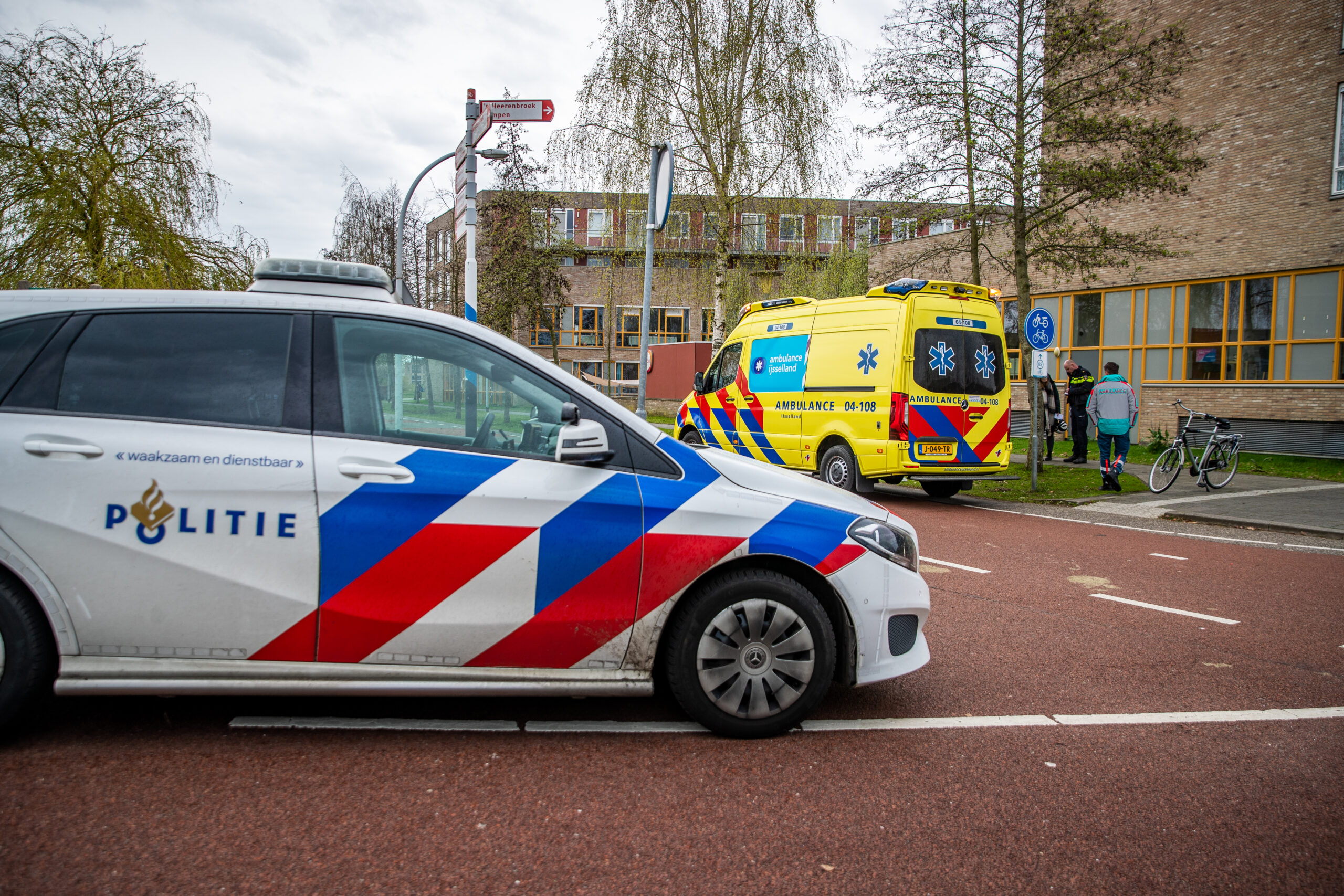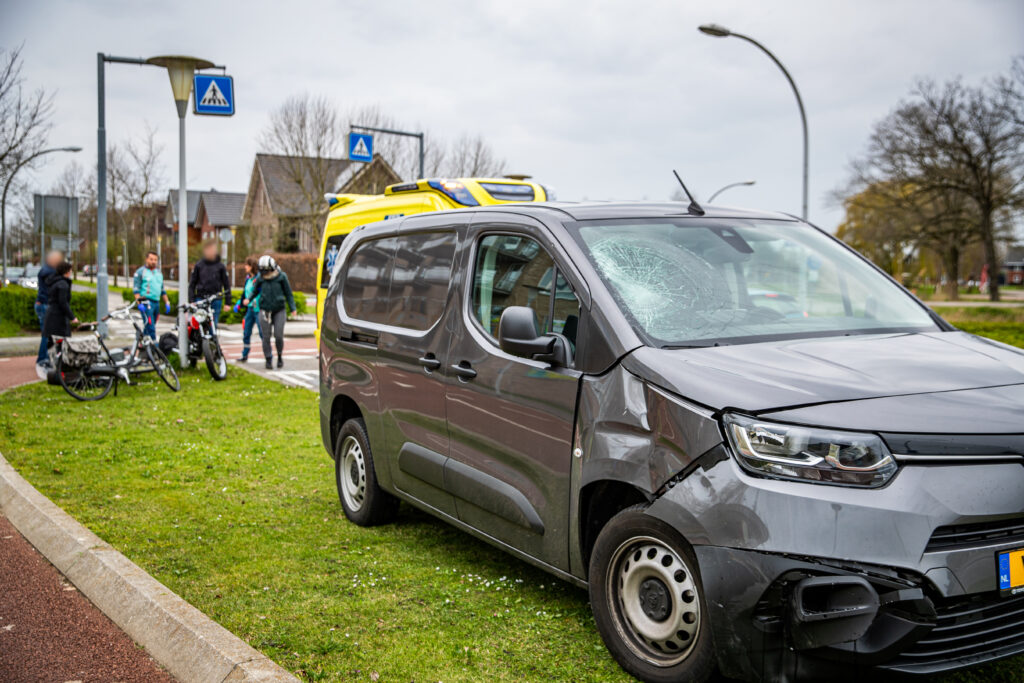Een mevrouw die achterop een bromfiets zat is nagekeken door ambulancepersoneel, nadat zij en de bestuurder aangereden werden door de bestuurder van een bestelbus. De man zag het tweetal over het hoofd, waarna hij de brommer aanreed. De vrouw kwam ten val, maar na controle bleek dat ze niet mee hoefde naar het ziekenhuis.