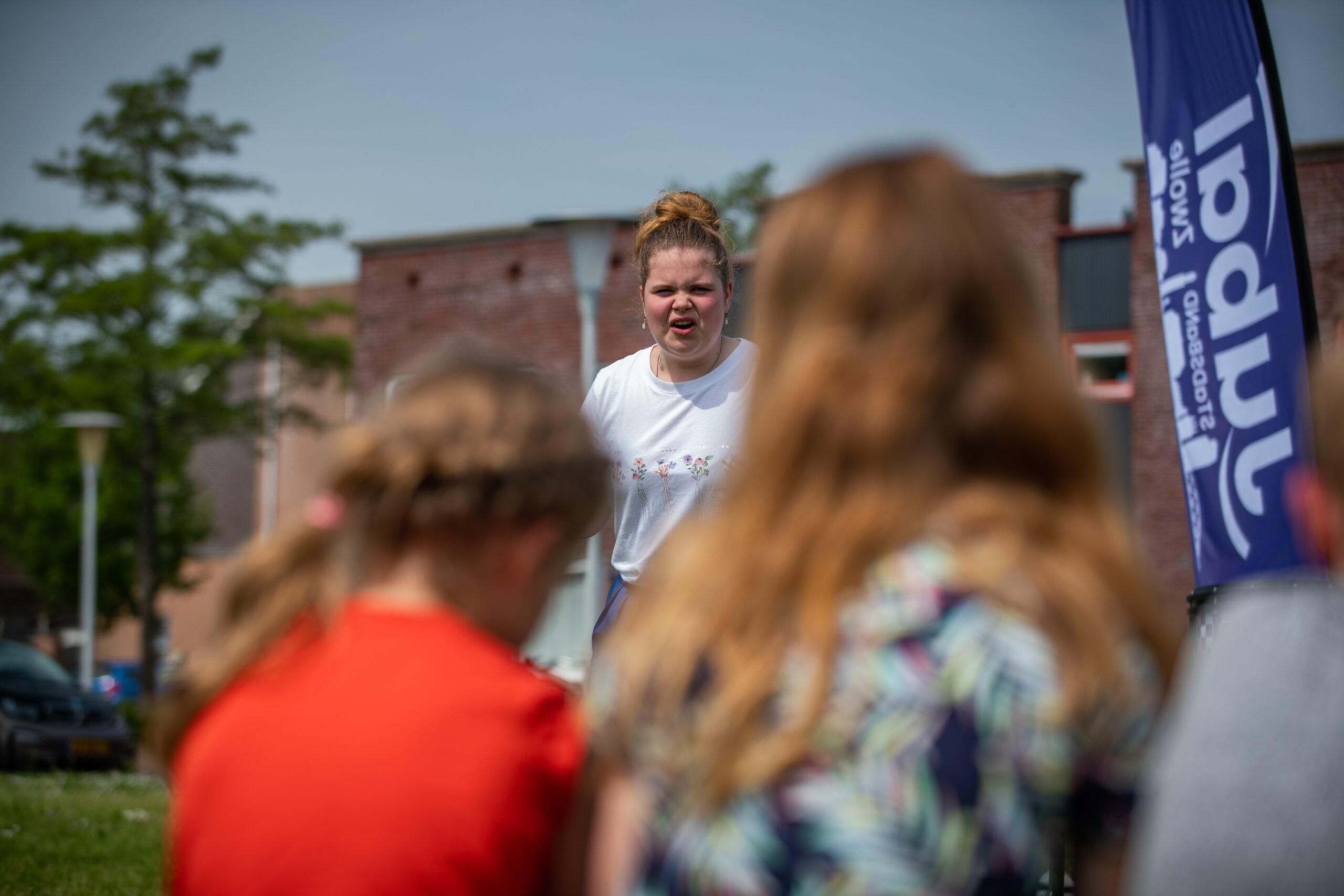Het reizende festival ‘Ik Toon op de stoep’ trok afgelopen weekend door Zwolle. Zondag werd Stadshagen aangedaan. Op vier locaties werden gratis optredens verzorgd met verhalen van Jonge Vertellers en muziek van Victory Drumline en Jubal Stadsband.