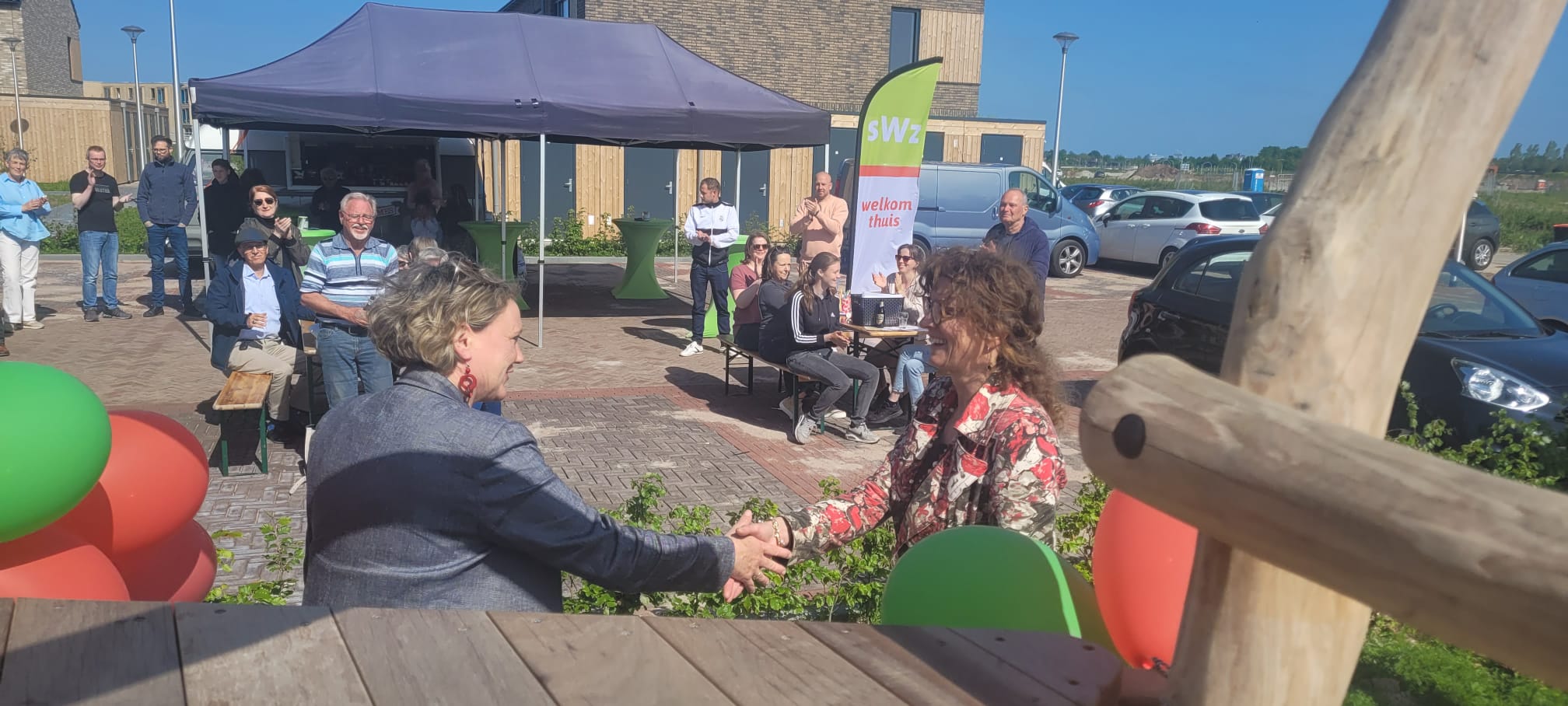 Wiepke van Erp Taalman Kip, directeur-bestuurder van SWZ, opende de middag samen met Jauke Klein, directeur van bouwer Plegt-Vos en wethouder Monique Schuttenbeld. Monique knipte als openingsmoment een lintje om het nieuwe speeltoestel door, bedoeld voor de kinderen in de wijk.