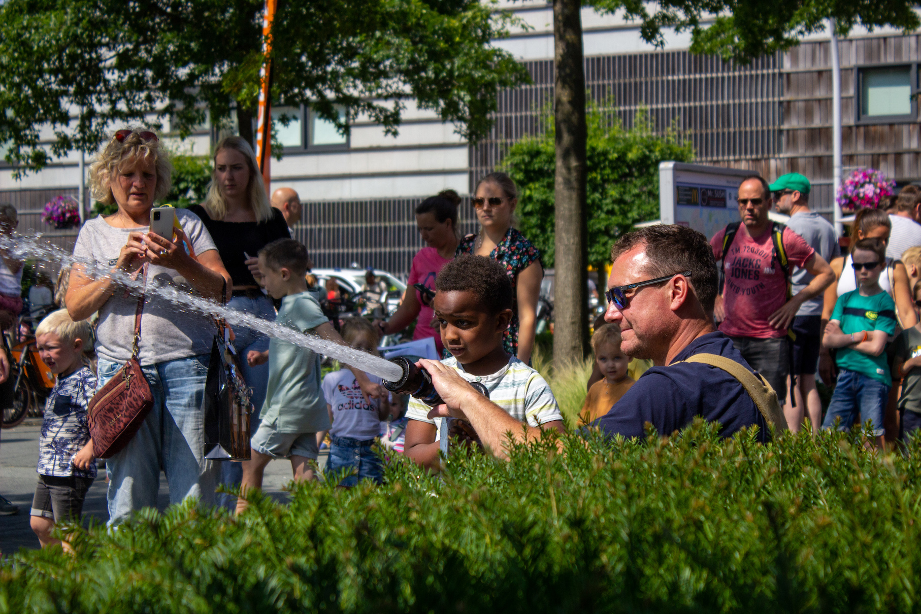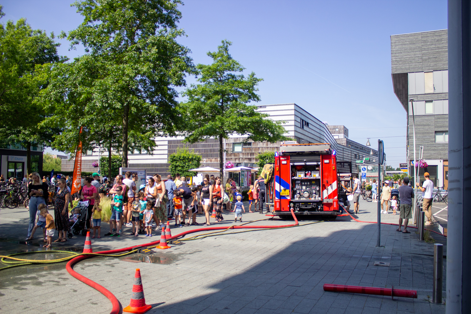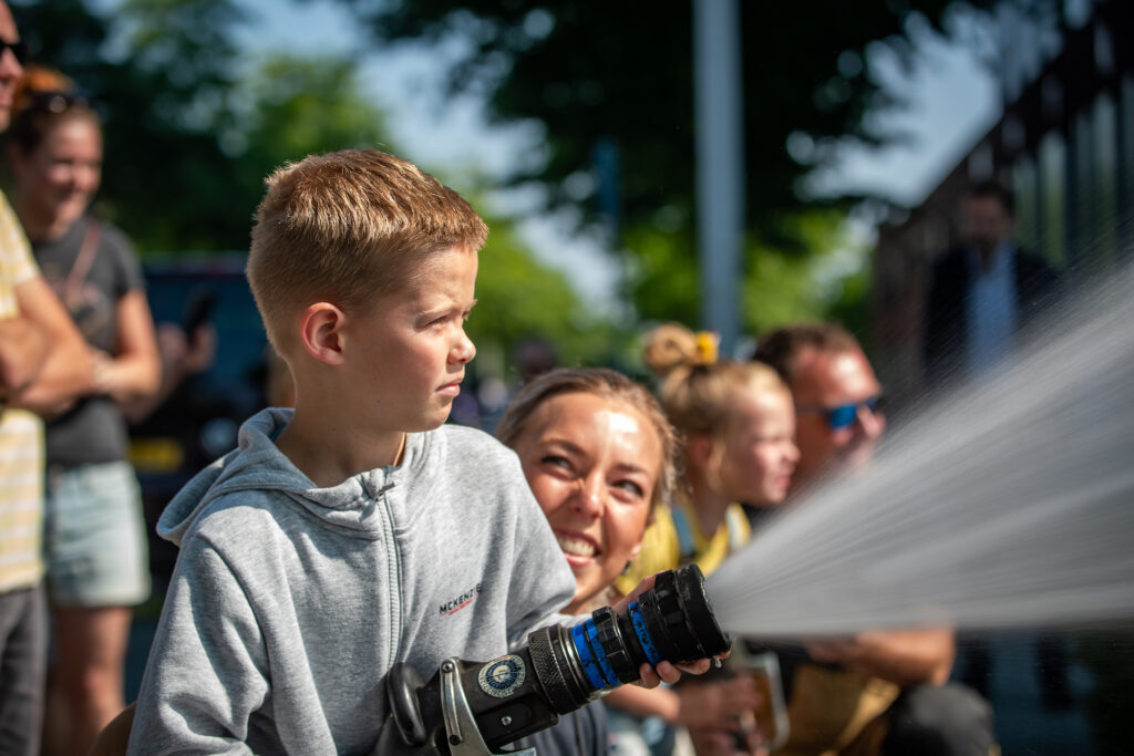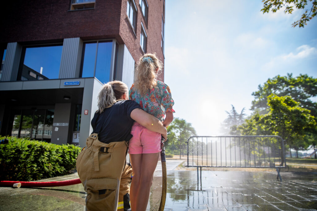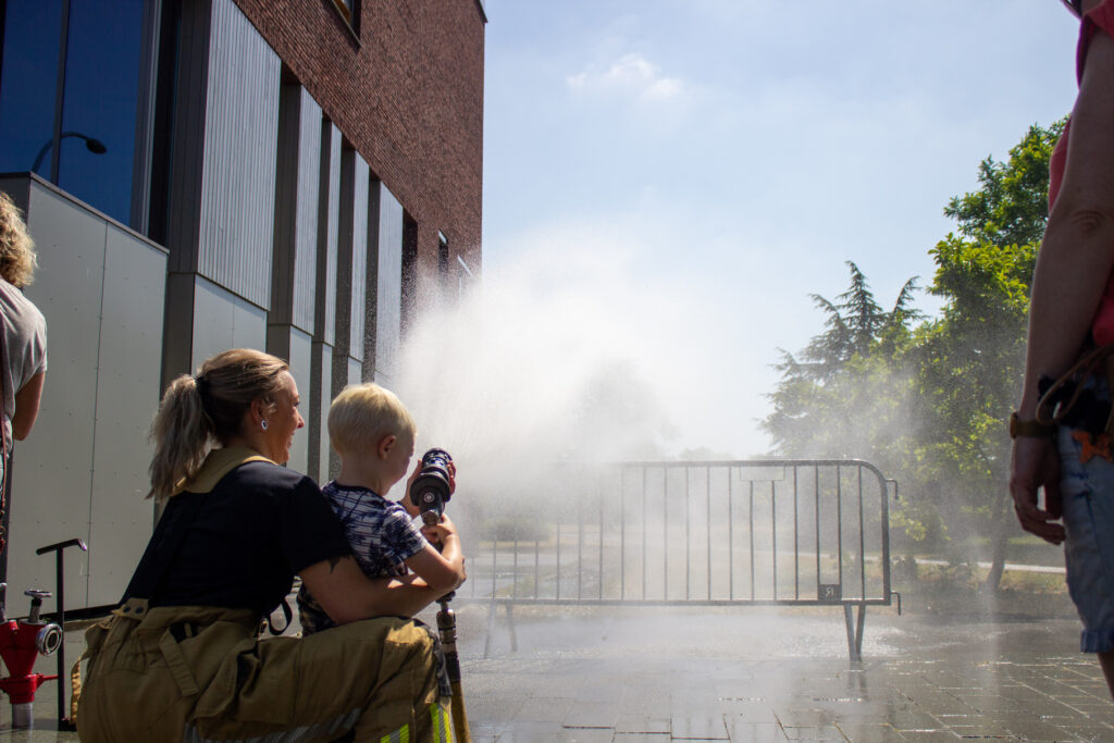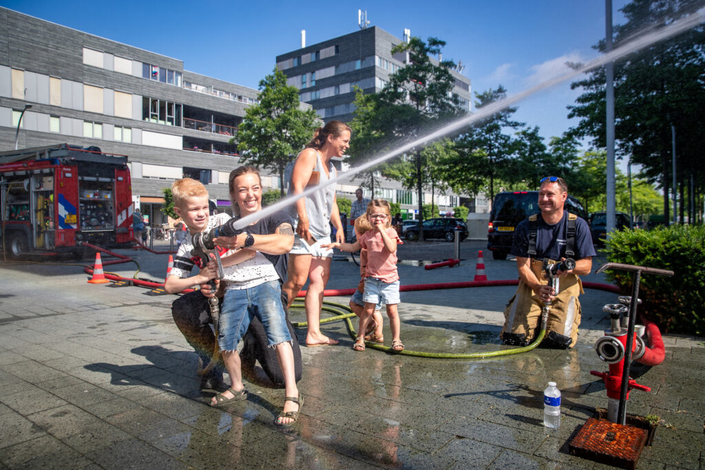 Het was helemaal geen straf om op zaterdag per ongeluk bluswater te ontvangen bij het winkelcentrum van Stadshagen. Met hoge temperaturen een een blauwe hemel was het zelfs een verkoelend. Niemand die er gelukkig last van had: bezoekers van de heldendag beleefden veel plezier aan de aanwezige hulp- en veiligheidsdiensten in de wijk.