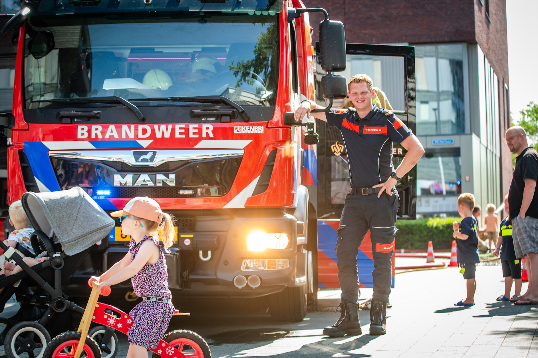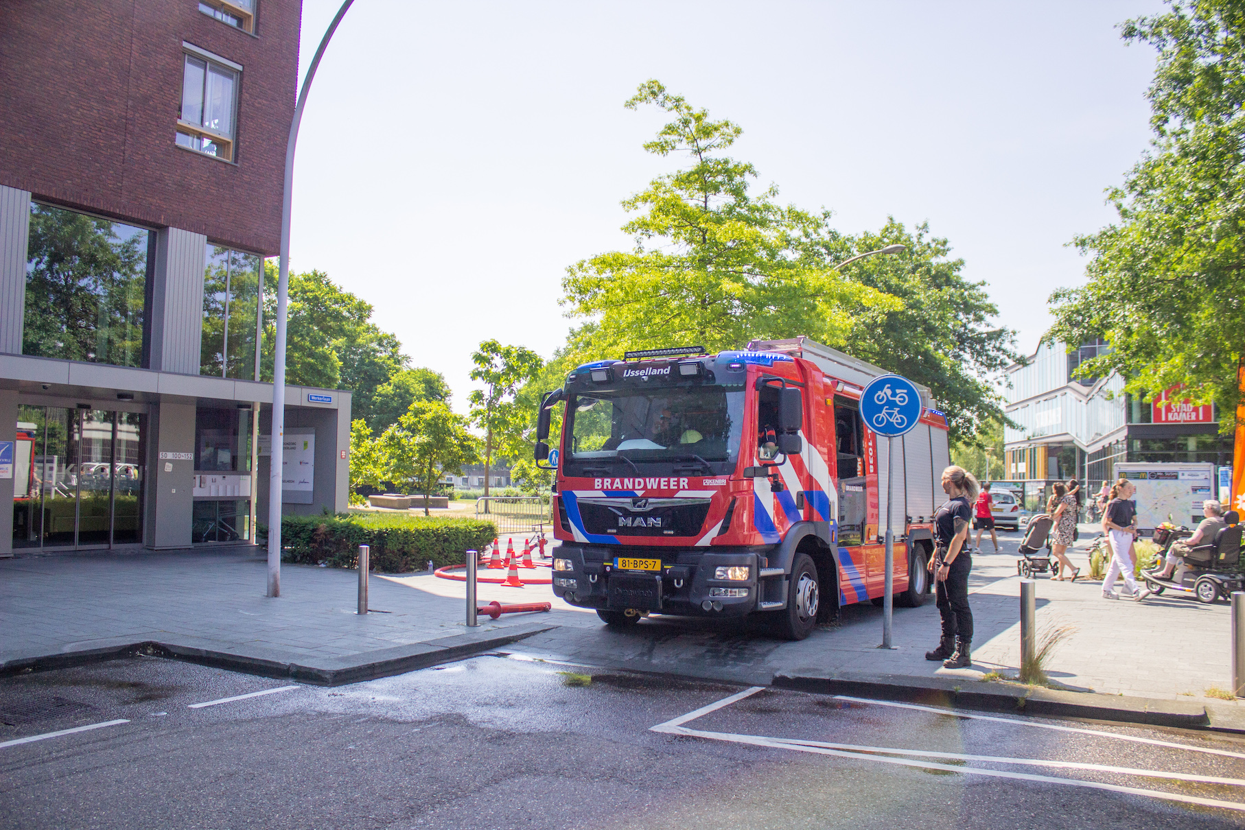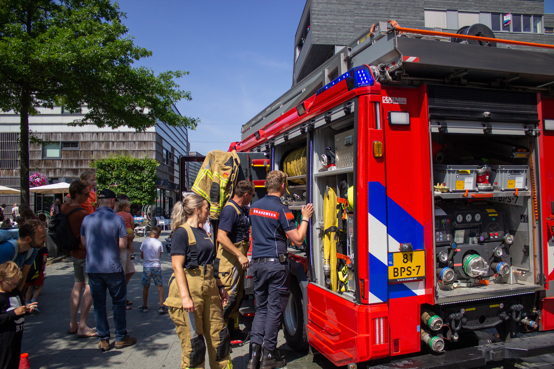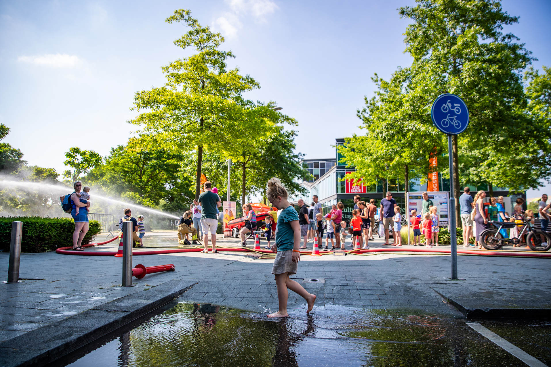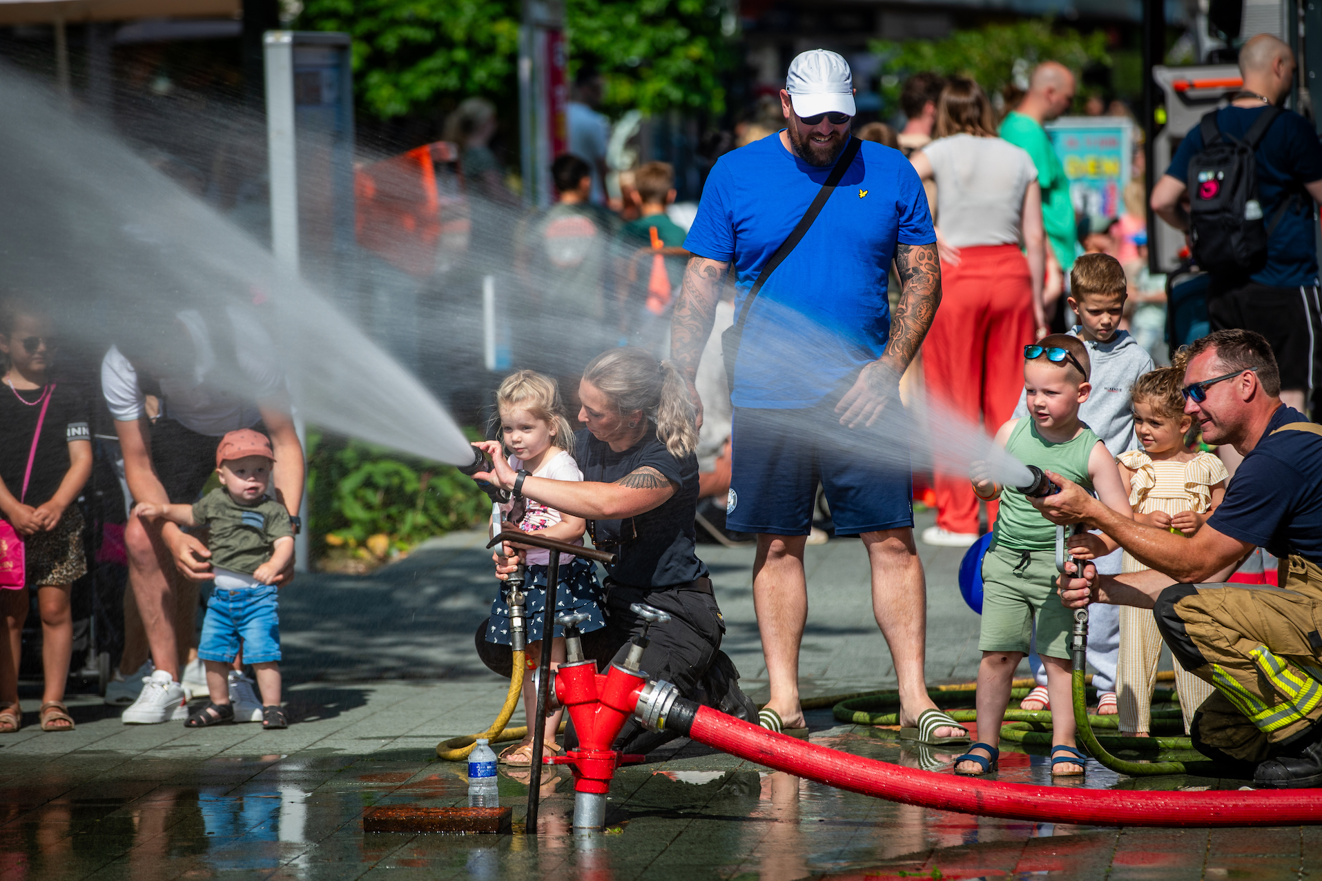 Het was helemaal geen straf om op zaterdag per ongeluk bluswater te ontvangen bij het winkelcentrum van Stadshagen. Met hoge temperaturen een een blauwe hemel was het zelfs een verkoelend. Niemand die er gelukkig last van had: bezoekers van de heldendag beleefden veel plezier aan de aanwezige hulp- en veiligheidsdiensten in de wijk.