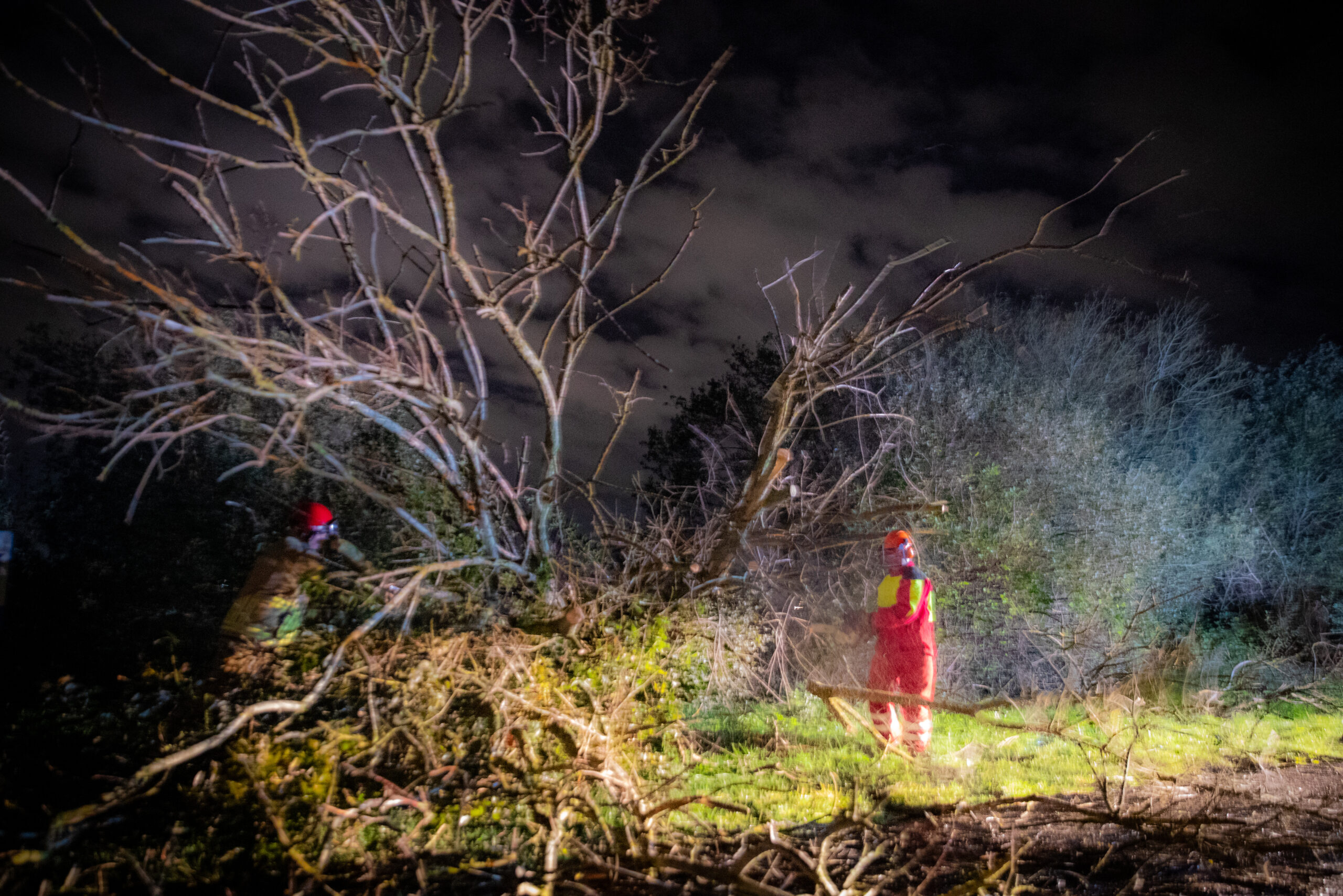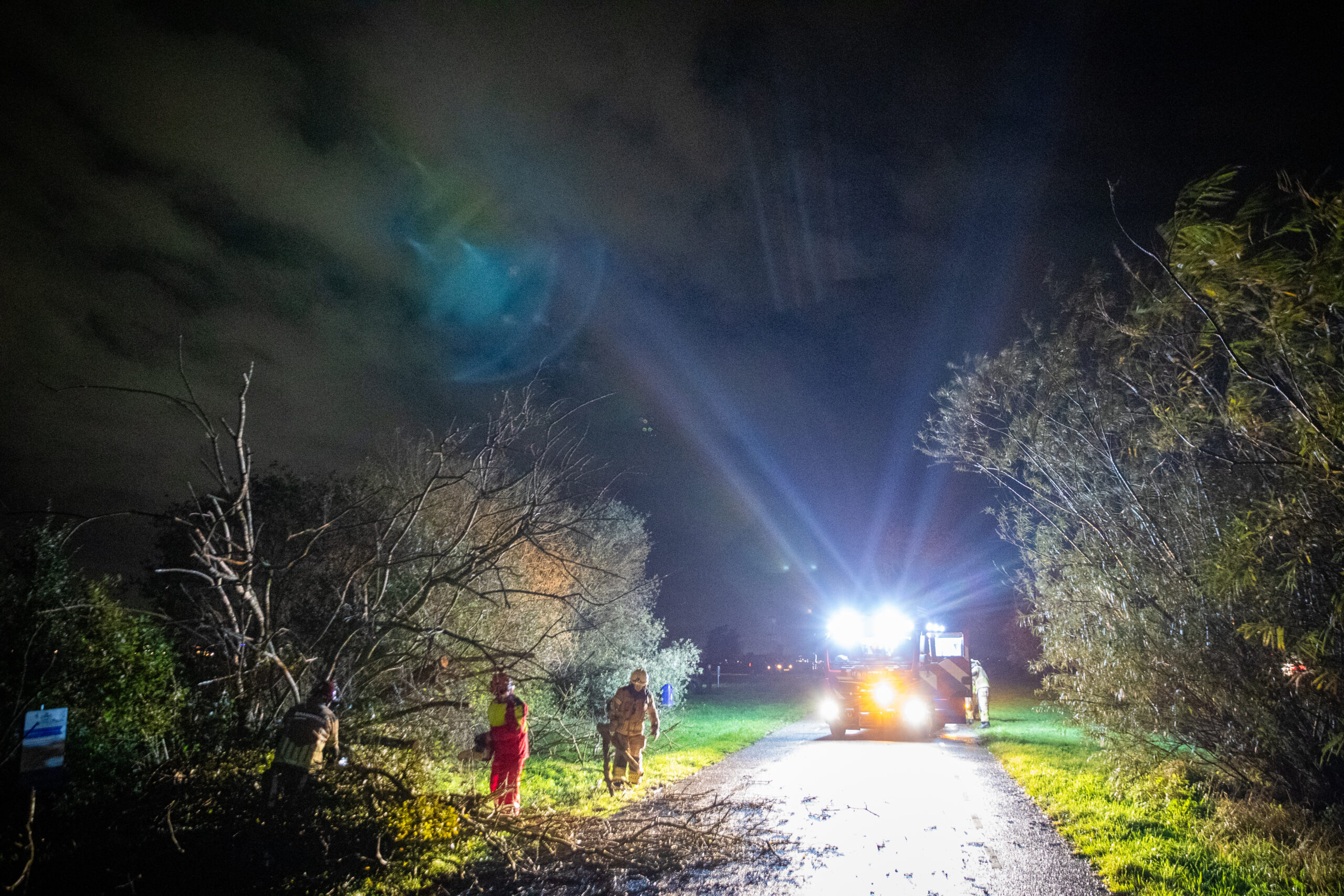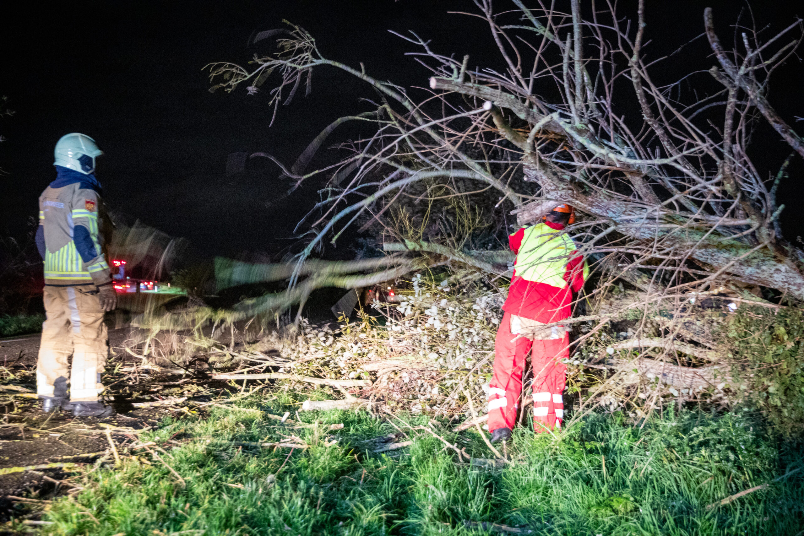 De boom lag dusdanig gevaarlijk op de weg dat het voor onoplettende weggebruikers zomaar tot een aanrijding had kunnen komen. Gelukkig werd dat voorkomen. Ter plaatse hadden de brandweerlieden nog geen 10 minuten nodig om de weg weer vrij te maken. De boom werd vakkundig in stukjes gezaagd, de stronken van de weg verwijderd en alle takken aan de kant geveegd. Het leverde een vrije rijbaan en mooie plaatjes op.