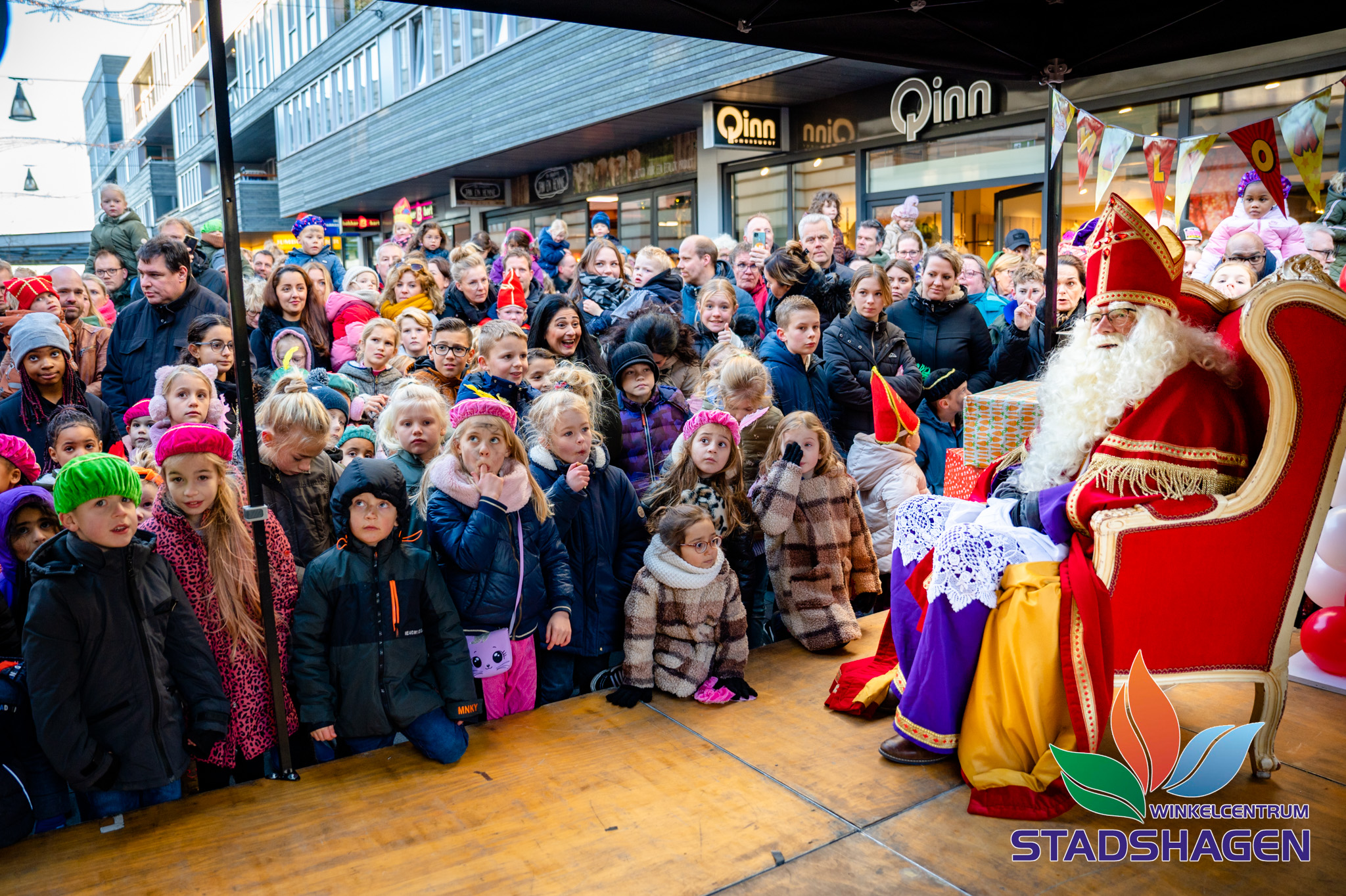De Sint komt rond 13:15 uur aan in het winkelcentrum van Stadshagen, waar hij door wethouder Michiel van Willigen feestelijk wordt onthaald en men met zijn allen liedjes kan zingen voor de Sint.