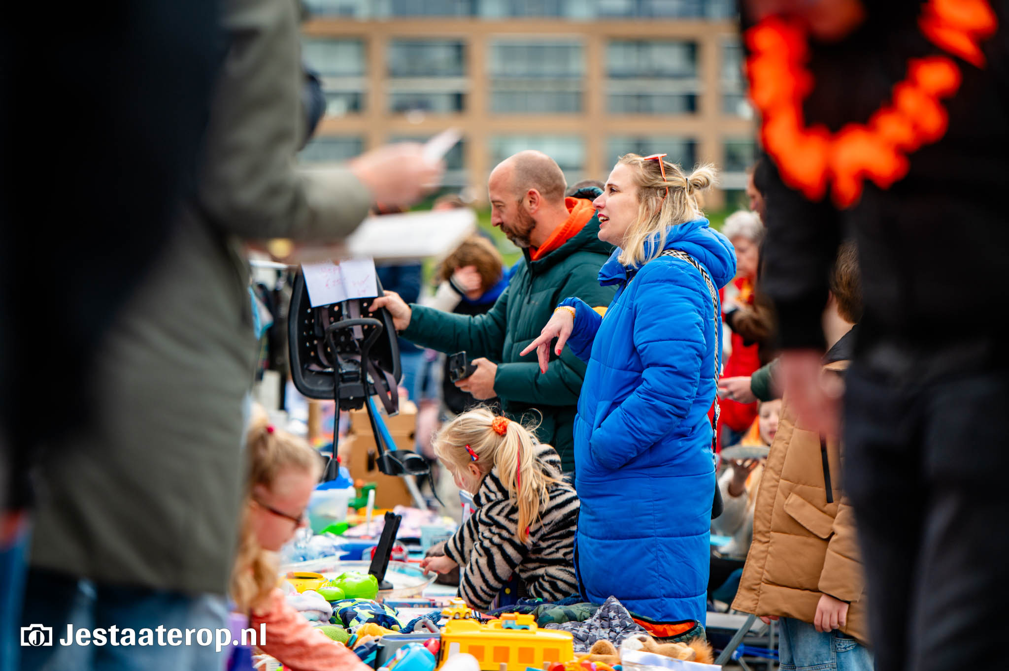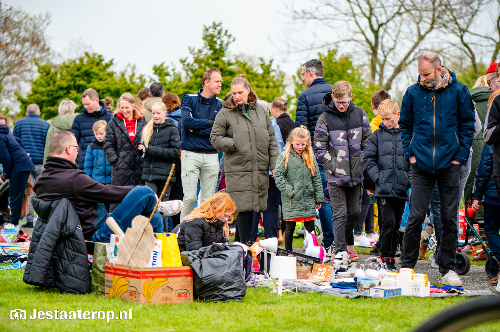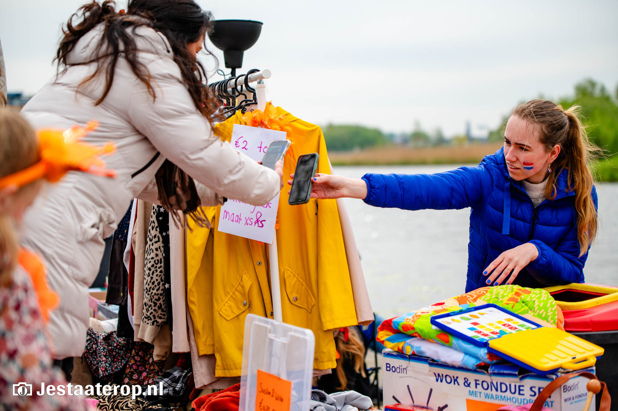 De kleedjesmarkt kende goeddeels een droge dag, met een enkel spettertje als spelbreker. Dat kon het publiek en de verkopers echter weinig deren. De vele honderden verkopers gooiden handig een zeiltje over hun waren, om het even later weer uit te stallen. En het publiek, dat bleef wandelen, kijken en kopen. Kortom: een prachtige Koningsdag in Stadshagen.