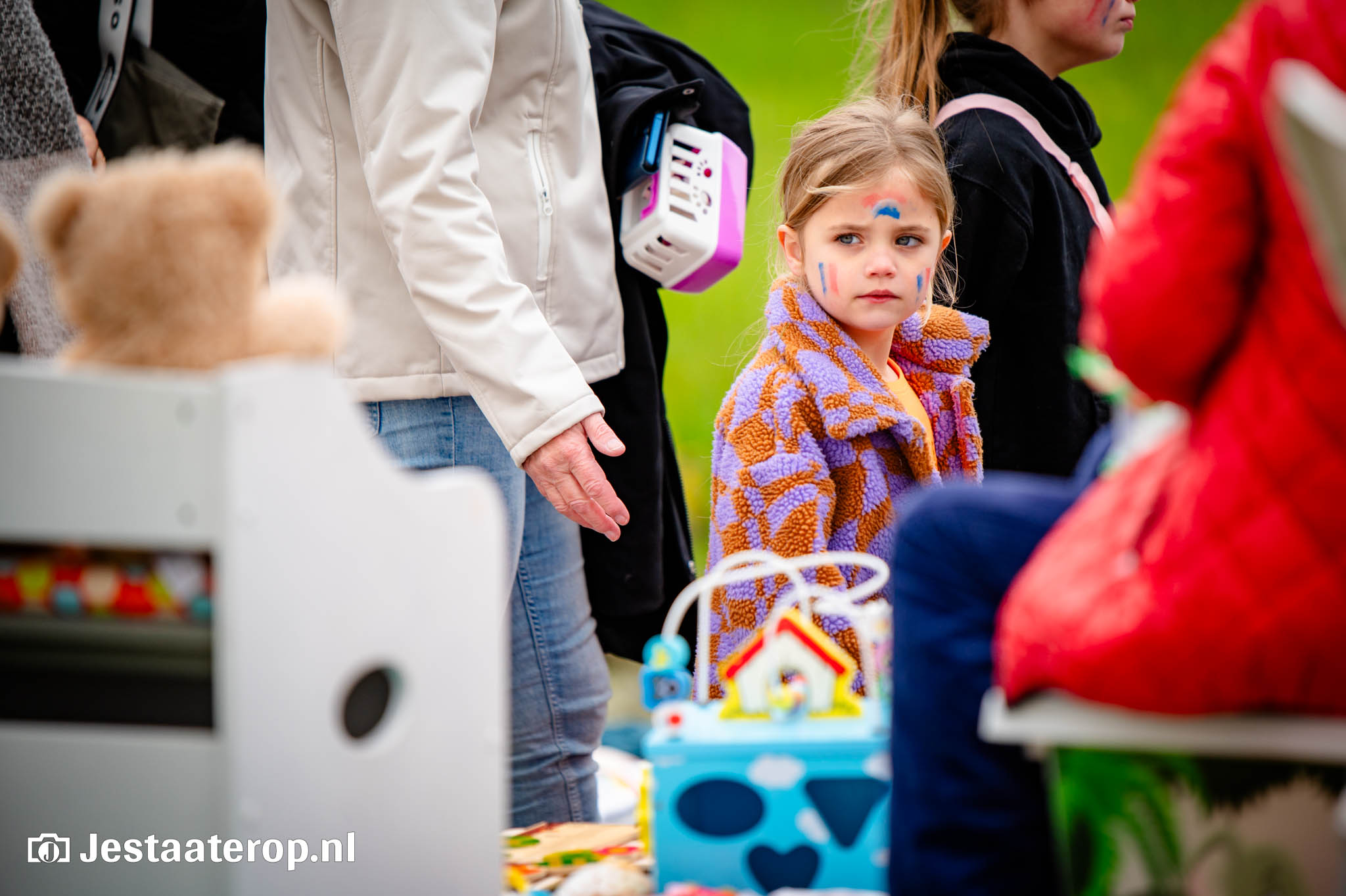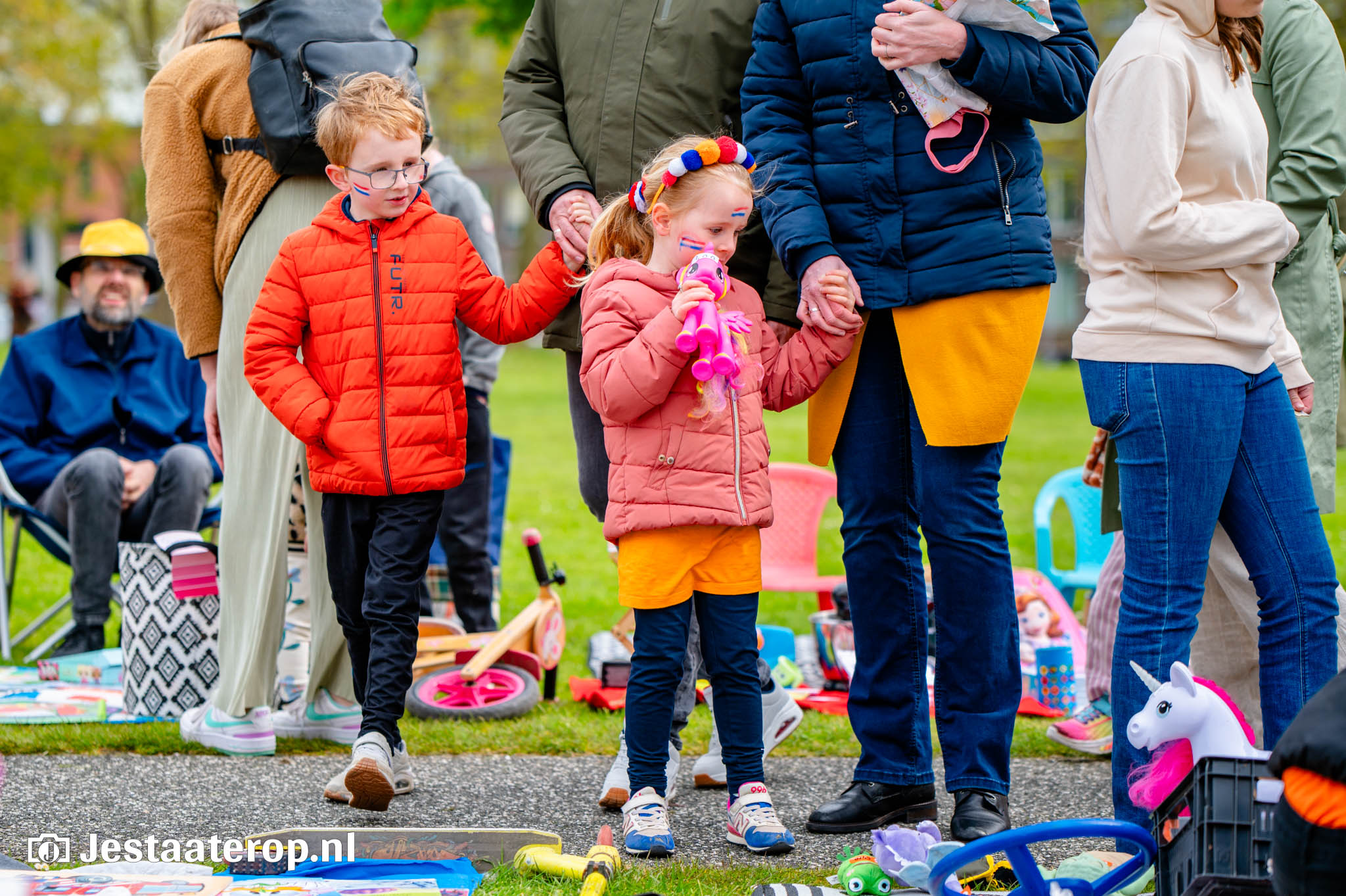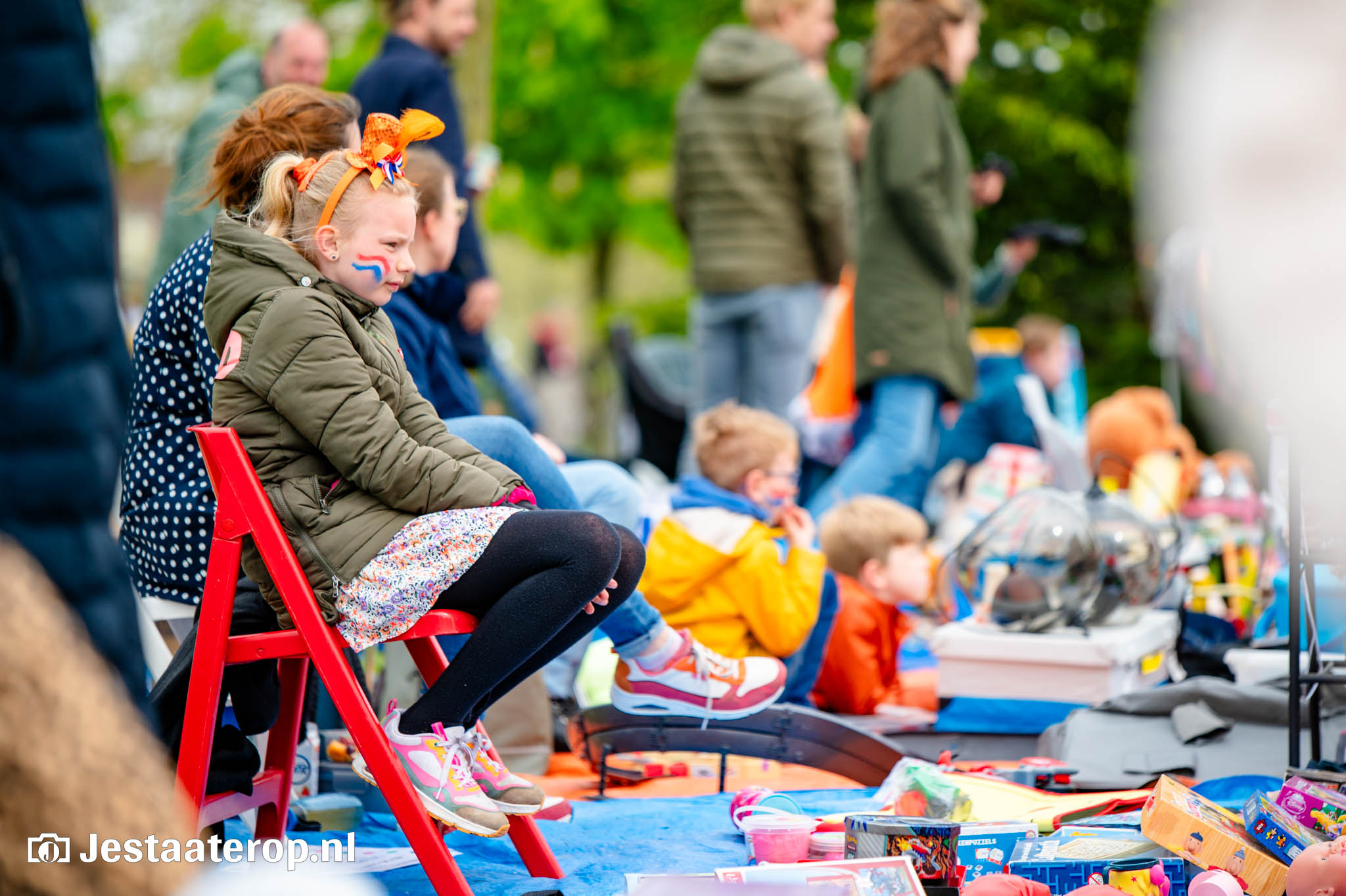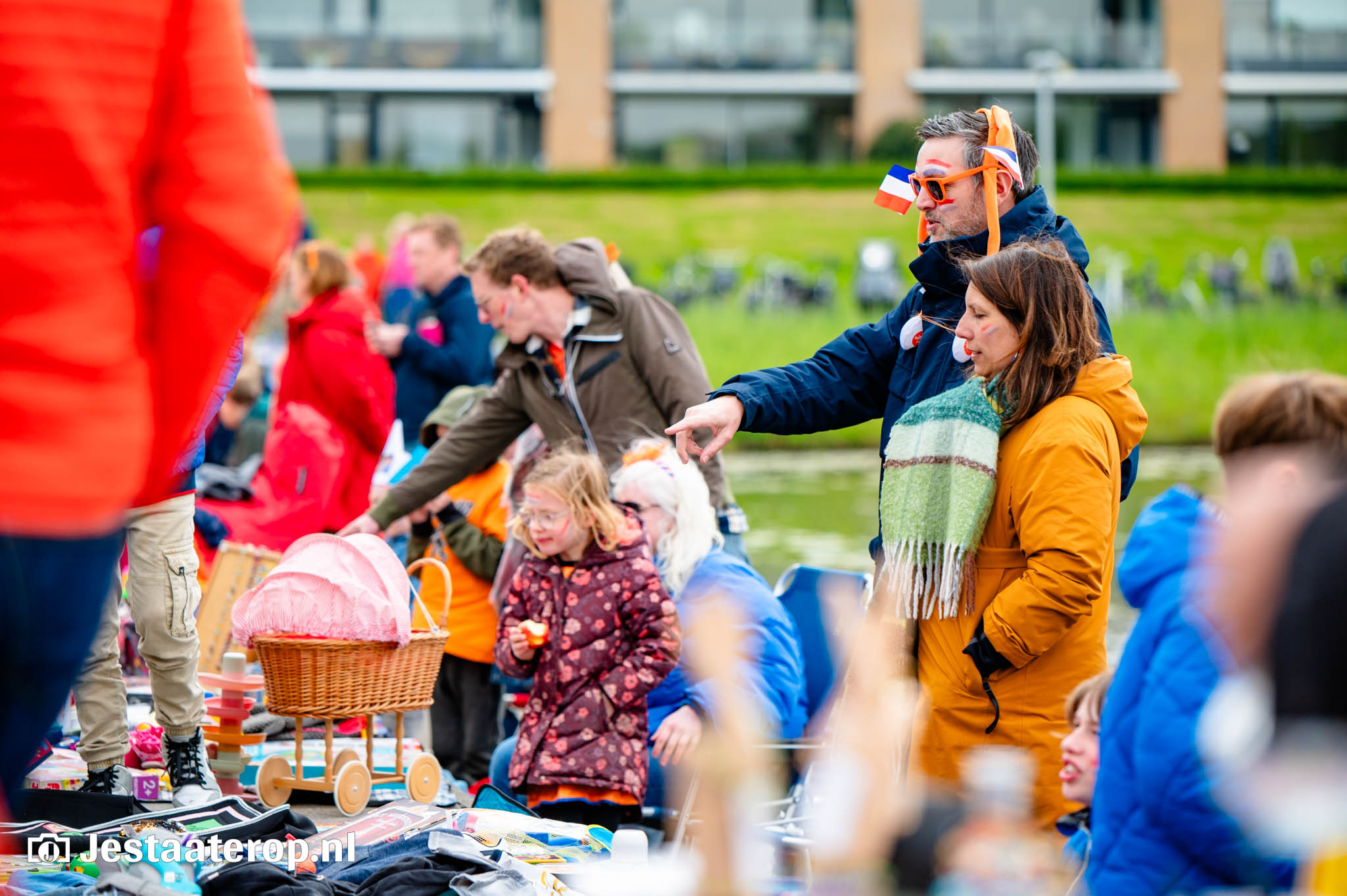 De kleedjesmarkt kende goeddeels een droge dag, met een enkel spettertje als spelbreker. Dat kon het publiek en de verkopers echter weinig deren. De vele honderden verkopers gooiden handig een zeiltje over hun waren, om het even later weer uit te stallen. En het publiek, dat bleef wandelen, kijken en kopen. Kortom: een prachtige Koningsdag in Stadshagen.
