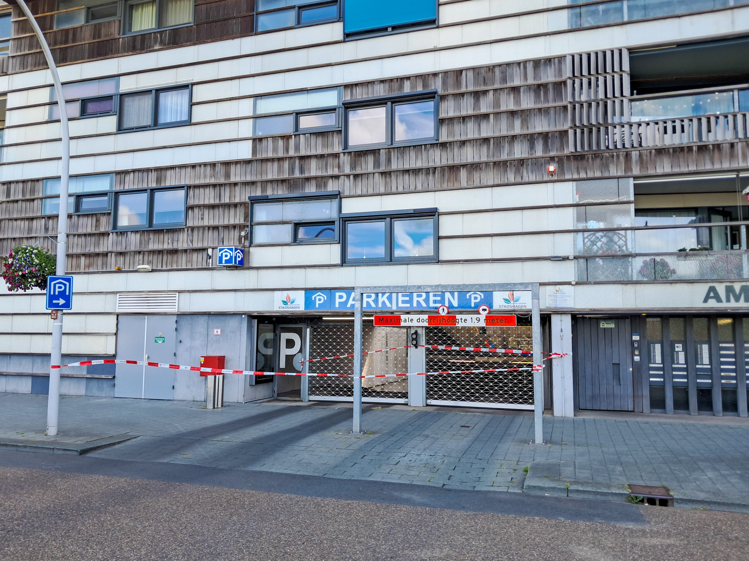 De ingang van de parkeergarage onder het winkelcentrum is niet toegankelijk vanaf de kant van de Belvédèrelaan. Deze toegang is afgesloten na het forse ongeval dat zaterdagavond plaatsvond in het winkelcentrum. Daarbij ontstond grote ravage en moest er voor de berging een speciaal voertuig komen.