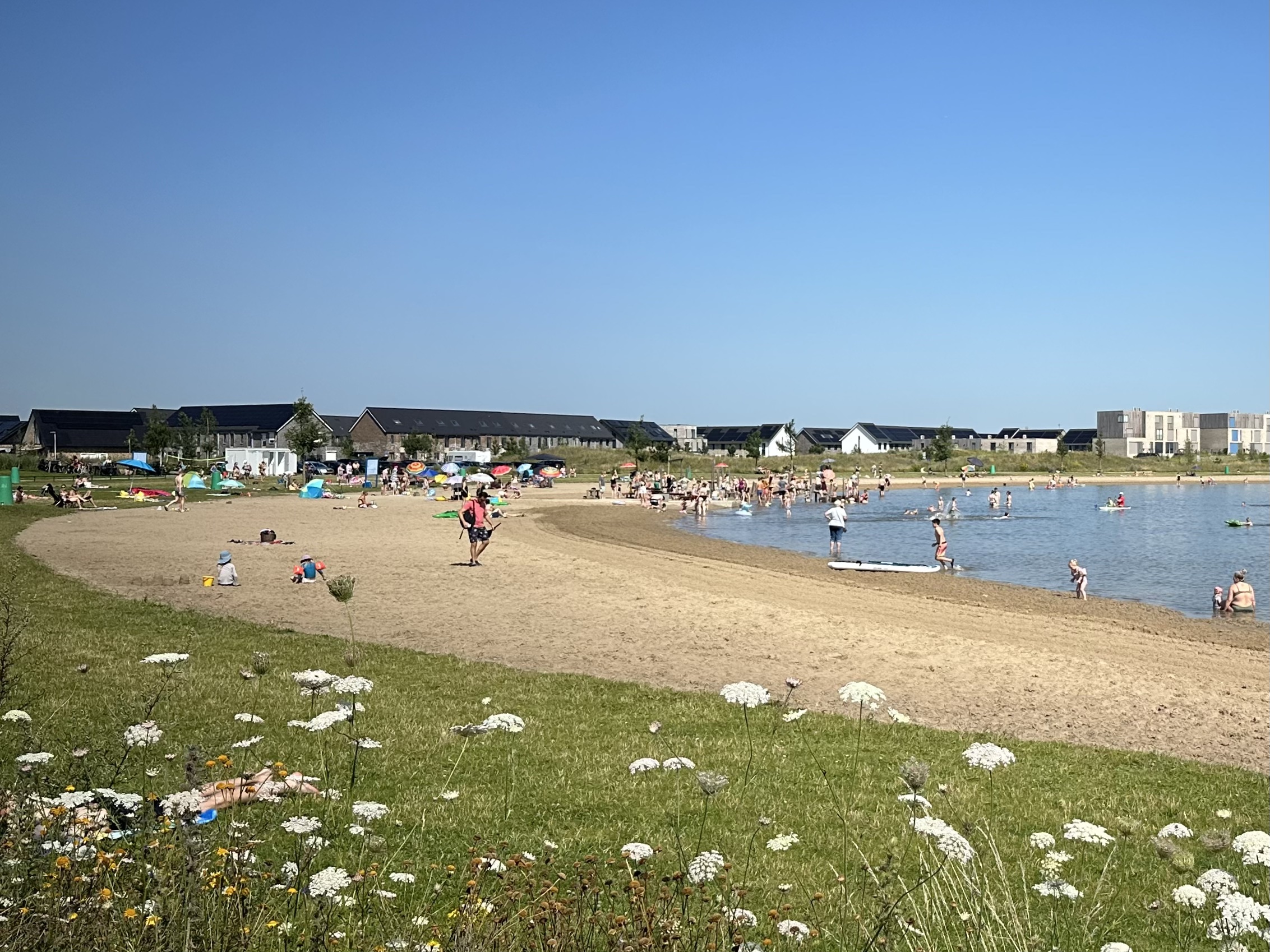 Wie zaterdagochtend bij de Milligerplas staat ziet een mooi maar gezien de temperaturen ook heel logisch tafereel: uit alle hoeken van de wijk komen stellen, gezinnen en groepen vrienden en vriendinnen gewandeld. De één met opgeblazen zwembanden, de andere met handen vol koeltassen en badhanddoeken. Op deze tropische dag is er in Stadshagen geen betere plek om te zijn dan de verkoelende Milligerplas.