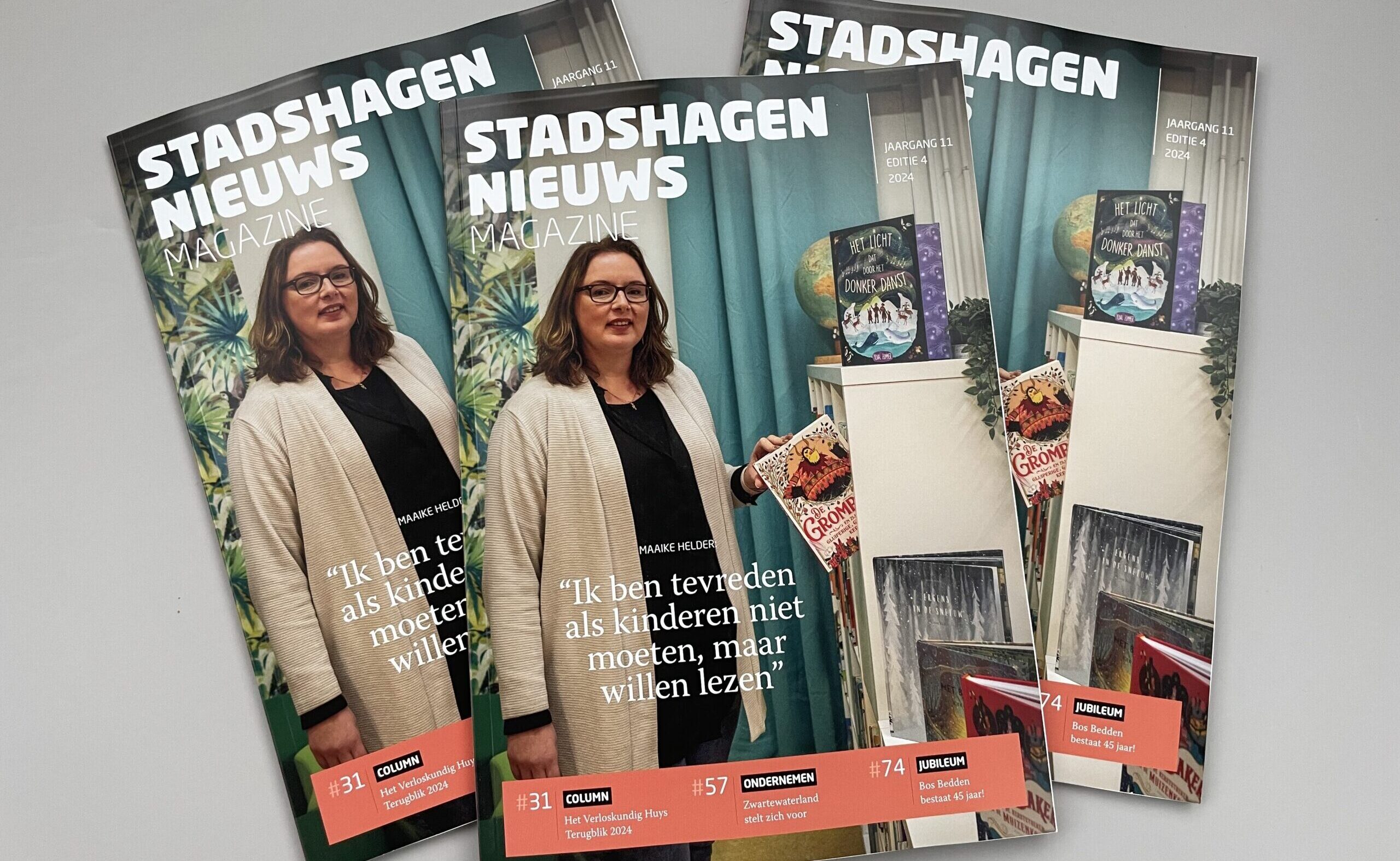 Deze week wordt in heel Stadshagen de decembereditie van ons magazine bezorgd. In het magazine brengen we achtergrondverhalen uit onze wijk. Zoals de leuke kennismaking met leesbevorderaar Maaike Helder, met allerlei tips voor de leukste kinderboeken. Wethouder Van Willigen over onderwijs, en Kindergarden Stadshoeve over de groeispurt.