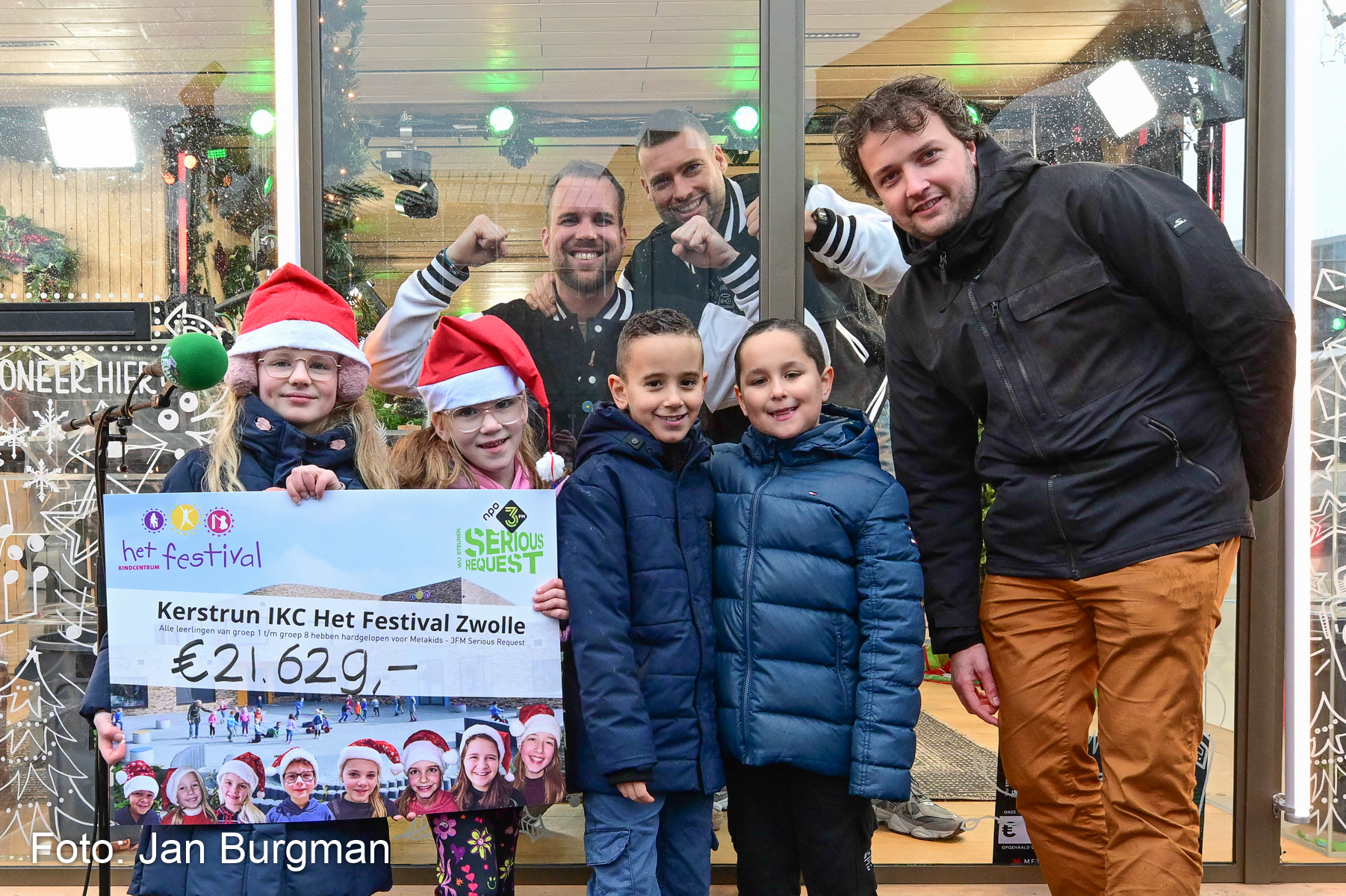 Leerlingen van basisschool Het Festival in Stadshagen hebben zich dinsdag en woensdag de benen uit het lijf gerend voor Metakids, dit jaar het goede doel van Serious Request. Donderdagochtend gingen ze naar het Glazen Huis op het Rodetorenplein om de cheque met het ingezamelde bedrag van maar liefst 21.629 euro aan te bieden.